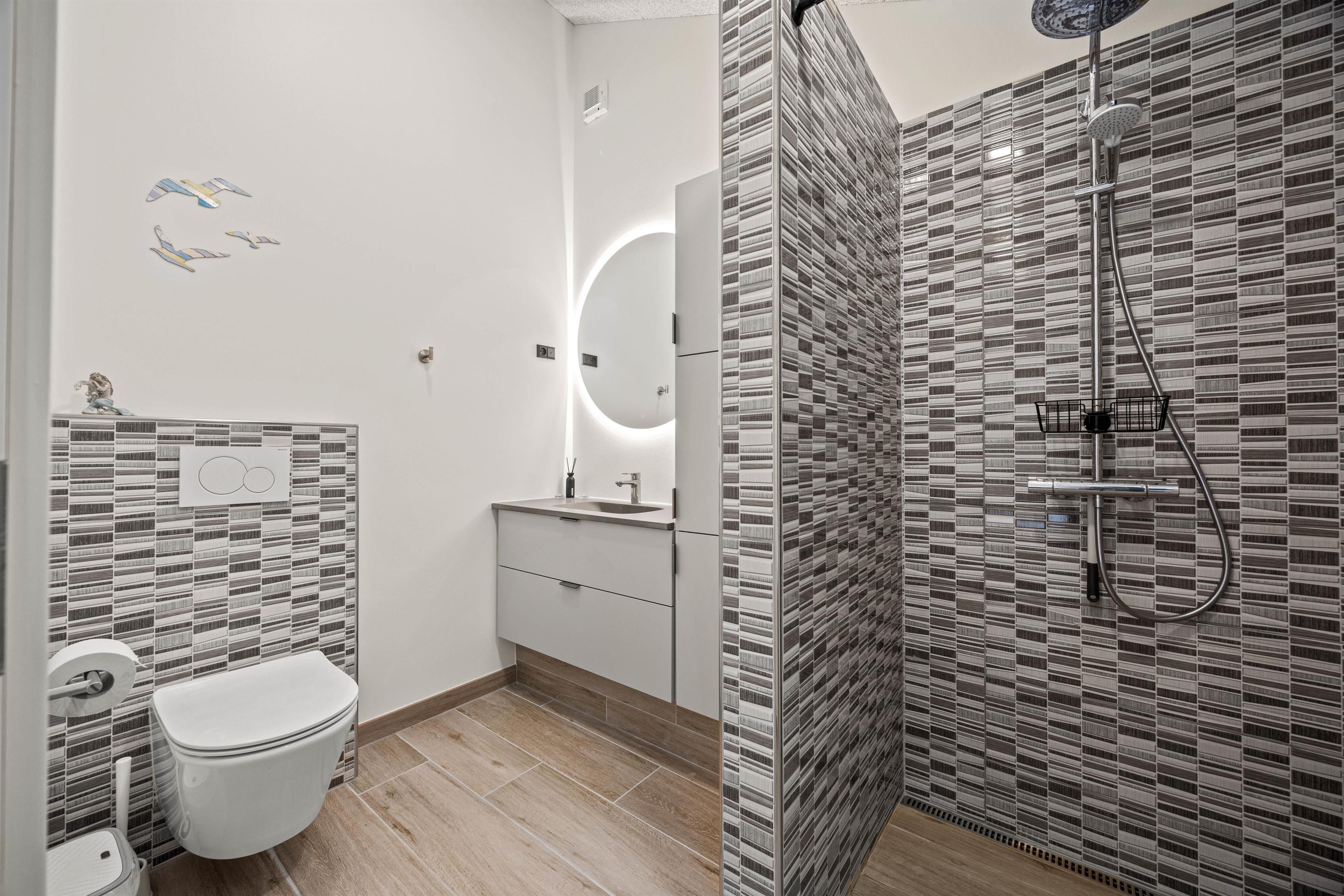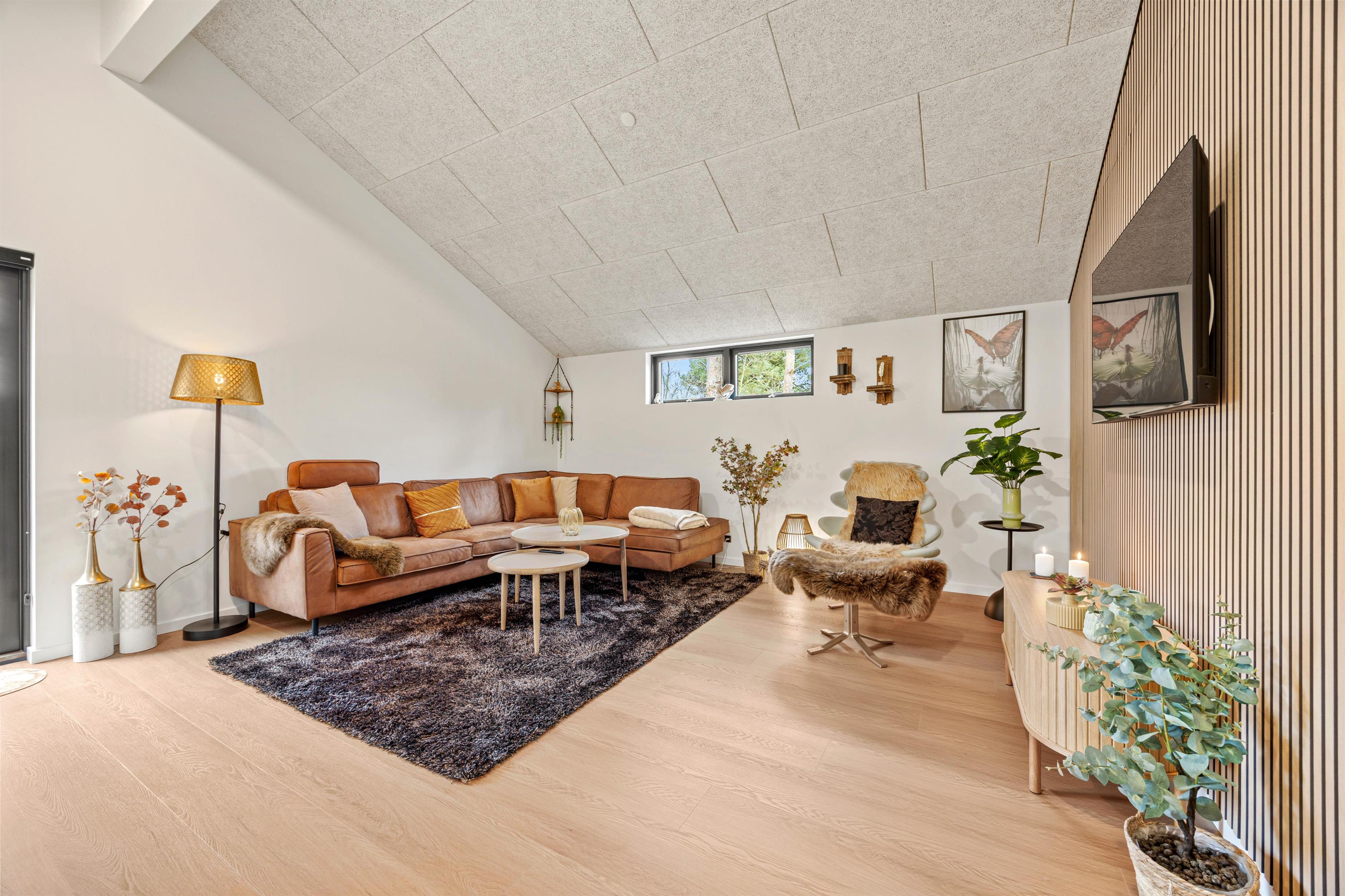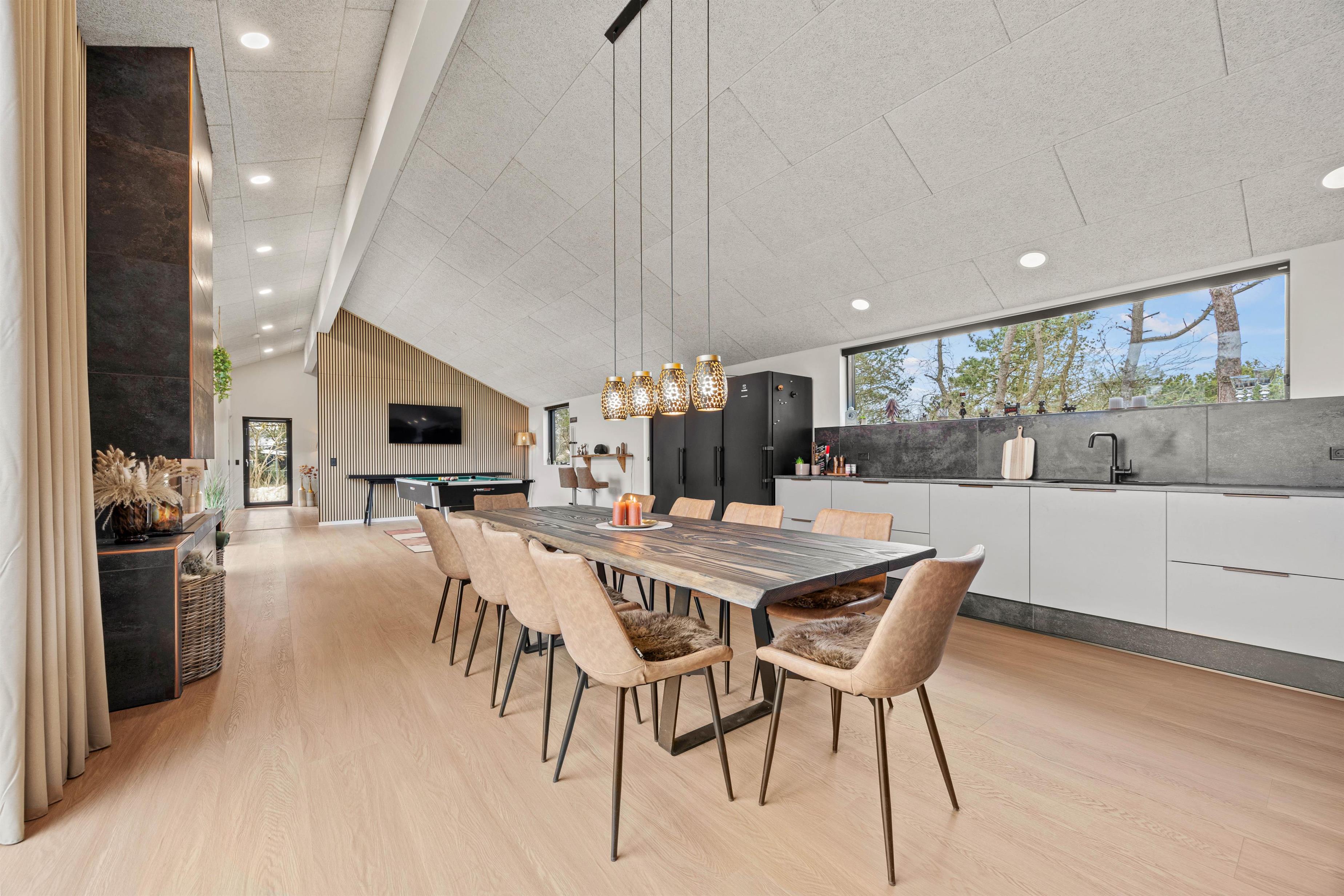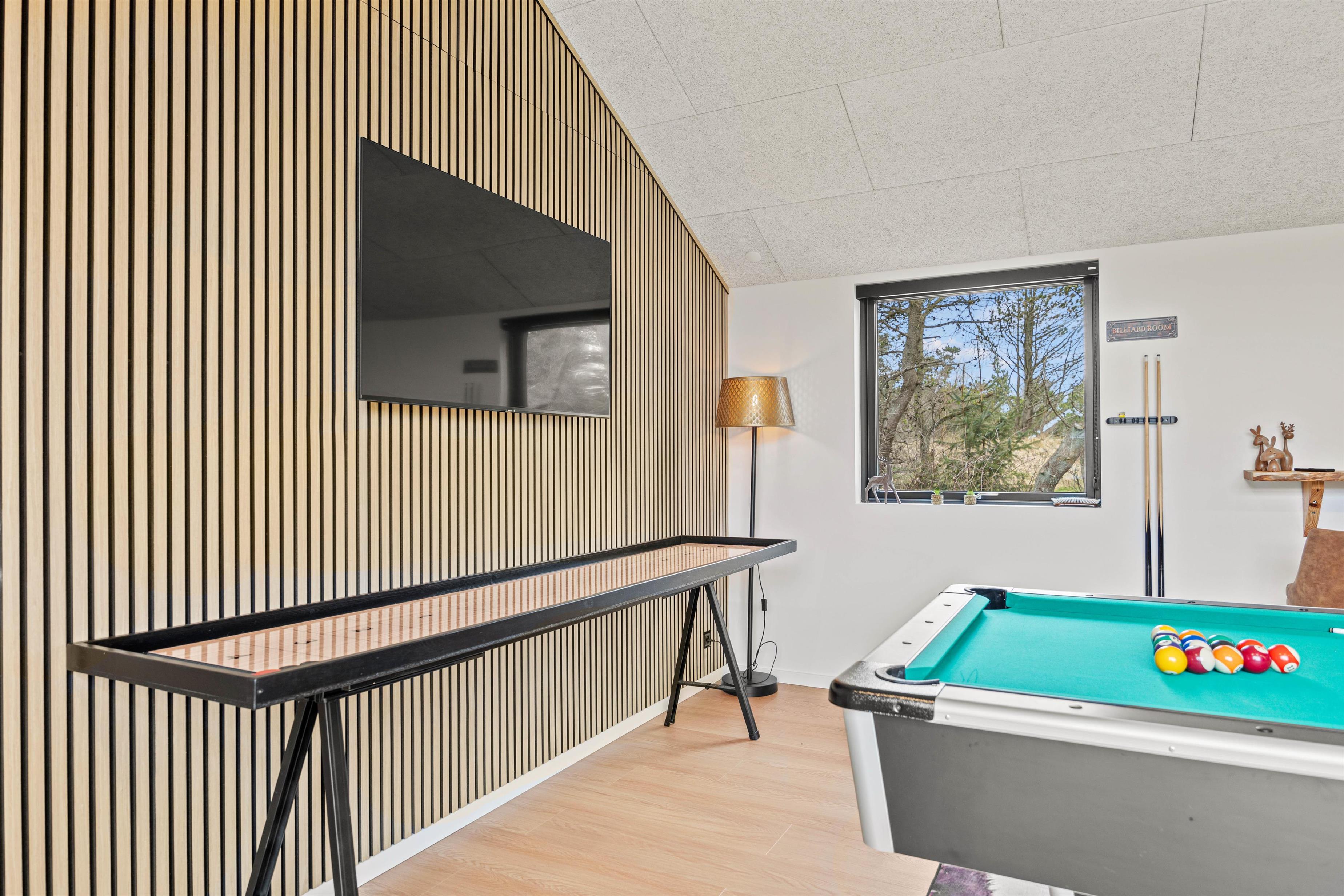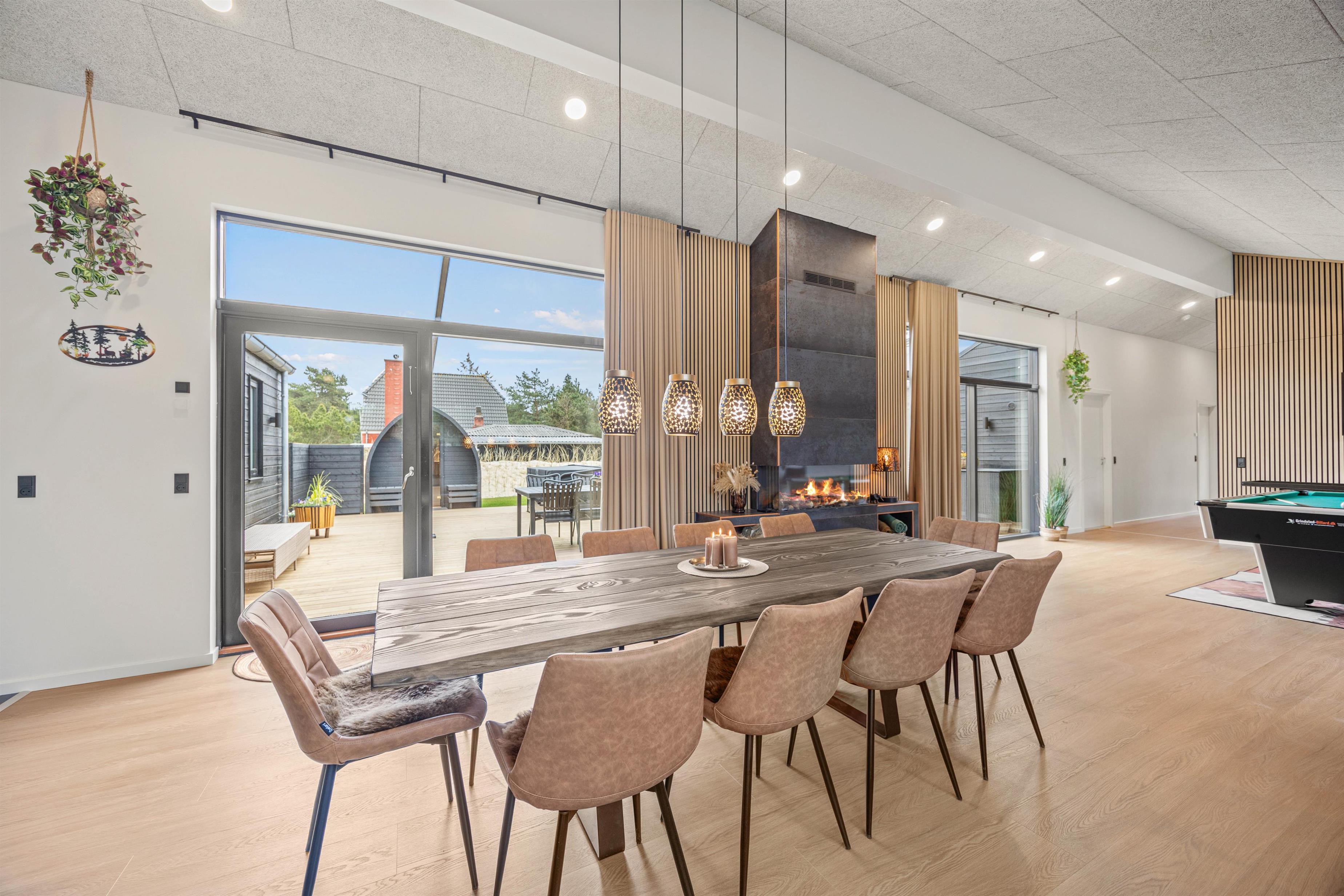 Det høje loft og den lyse indretning skaber en indbydende atmosfære, perfekt til afslappende stunder. Imens nogle af jer konkurrerer om point ved shuffle- eller billardbordet, kan andre hygge sig med madlavning i det rummelige køkken.