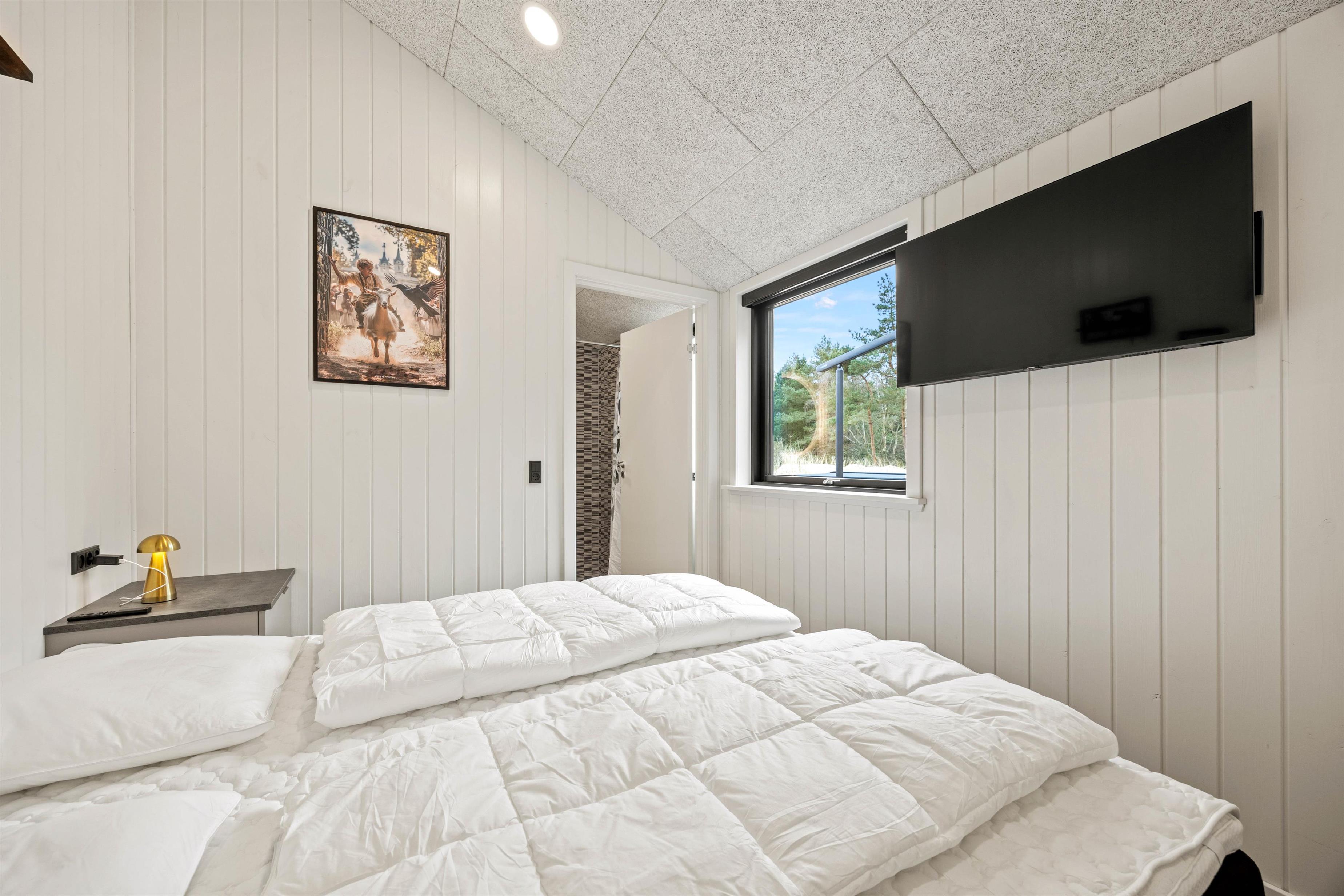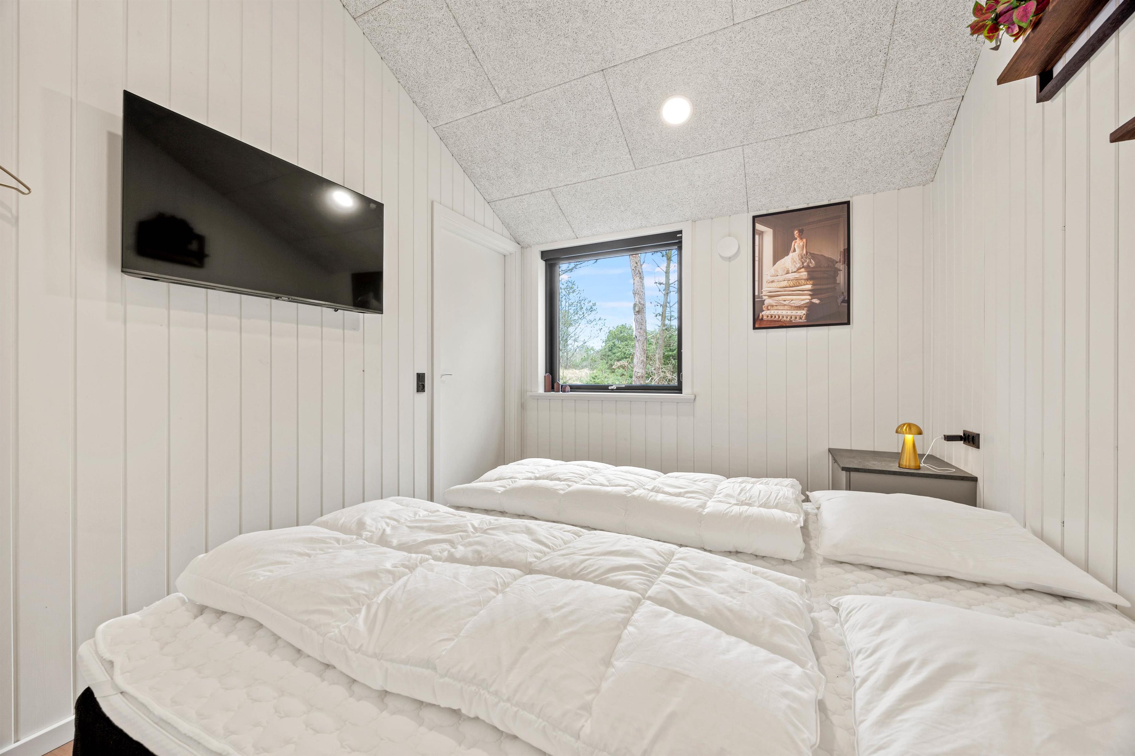 Sommerhuset har fem lyse og charmerende soveværelser, der alle er udstyret med dobbeltsenge, fjernsyn og hvert sit private badeværelse.