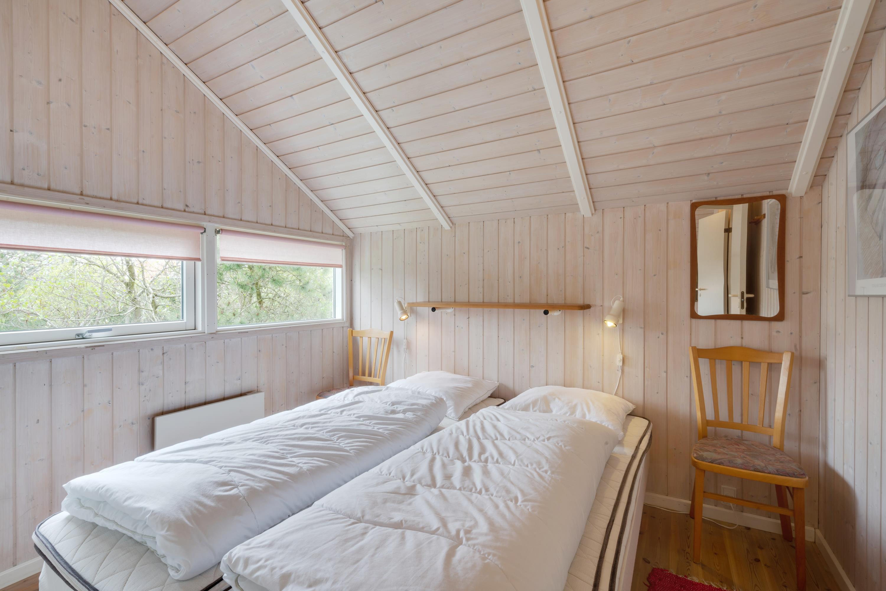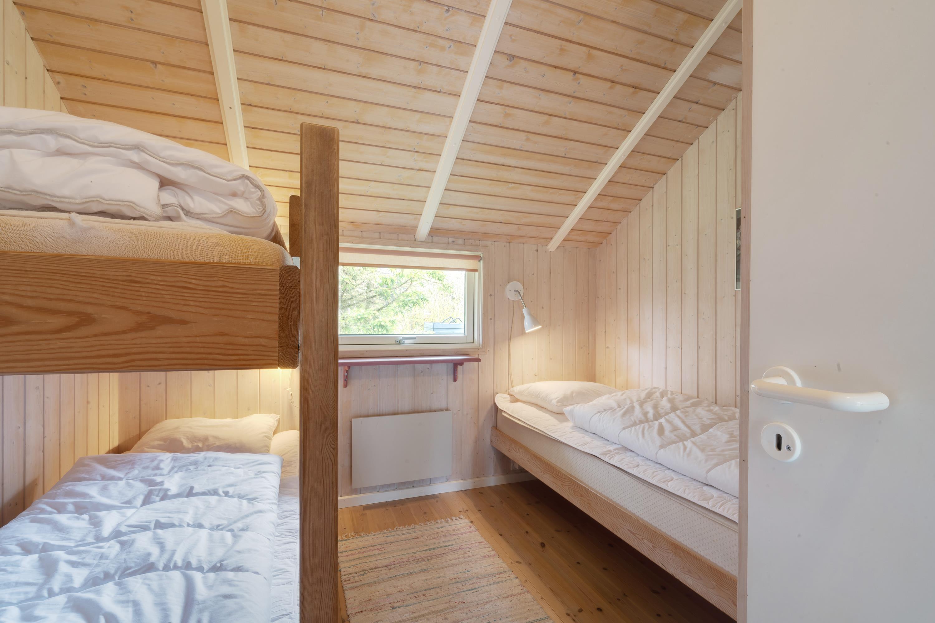 I feriehuset finder I 3 gode soveværelser, hvor 2 er med dobbeltseng, og det tredje har både en køjeseng og en enkeltseng – helt perfekt til børnene. Sommerhuset bliver opvarmet af en energivenlig varmepumpe, der sørger for gode temperaturer til lave omkostninger. På badeværelset kan I desuden nyde godt af gulvvarmen.