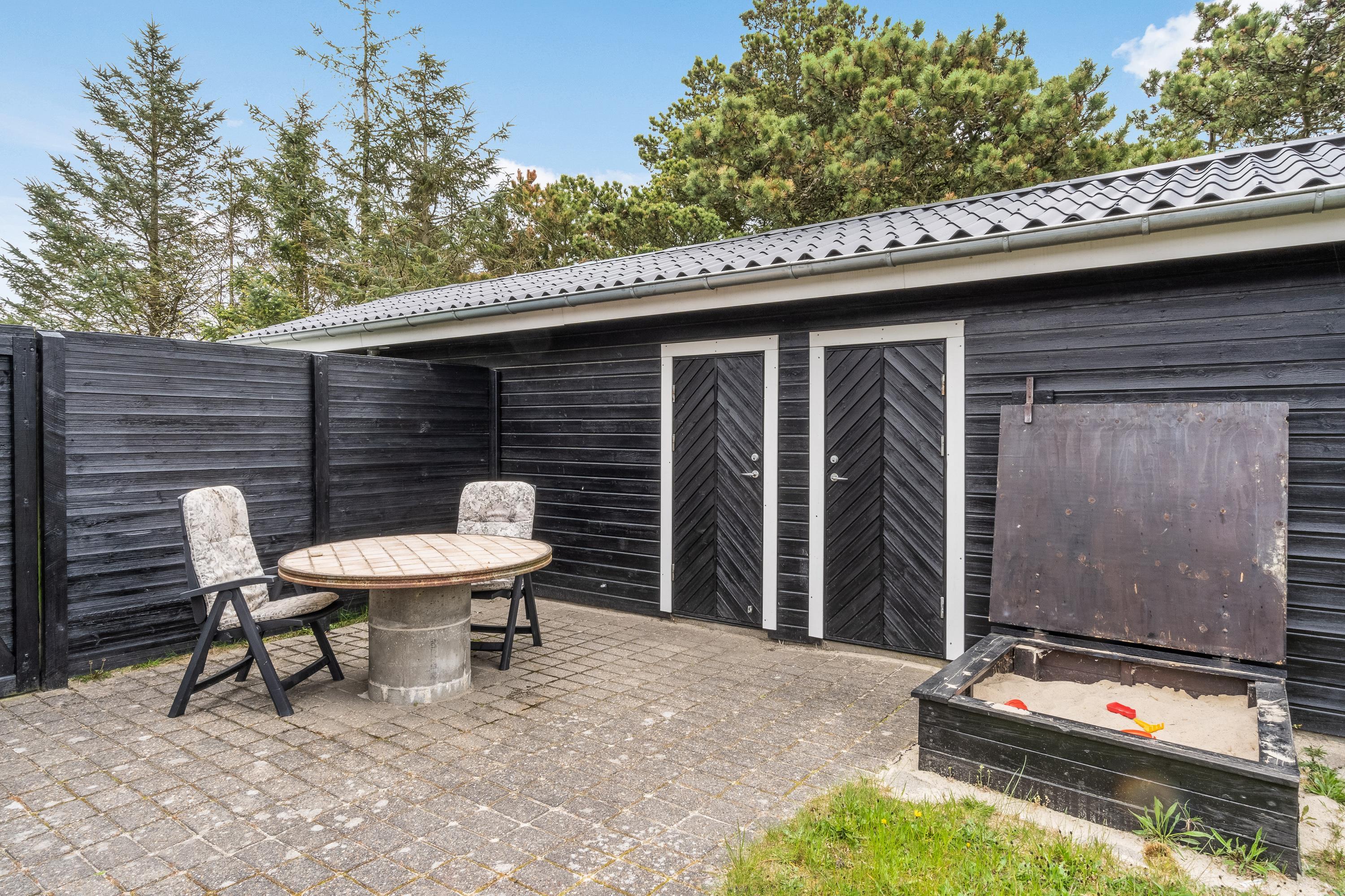 Den store have bliver et sikkert hit blandt børnene. I haven er der både et gyngestativ og en sandkasse, så de har masser at give sig til i løbet af feriedagene. Mens børnene hygger sig i haven, kan forældrene slappe af og se til fra terrassen.