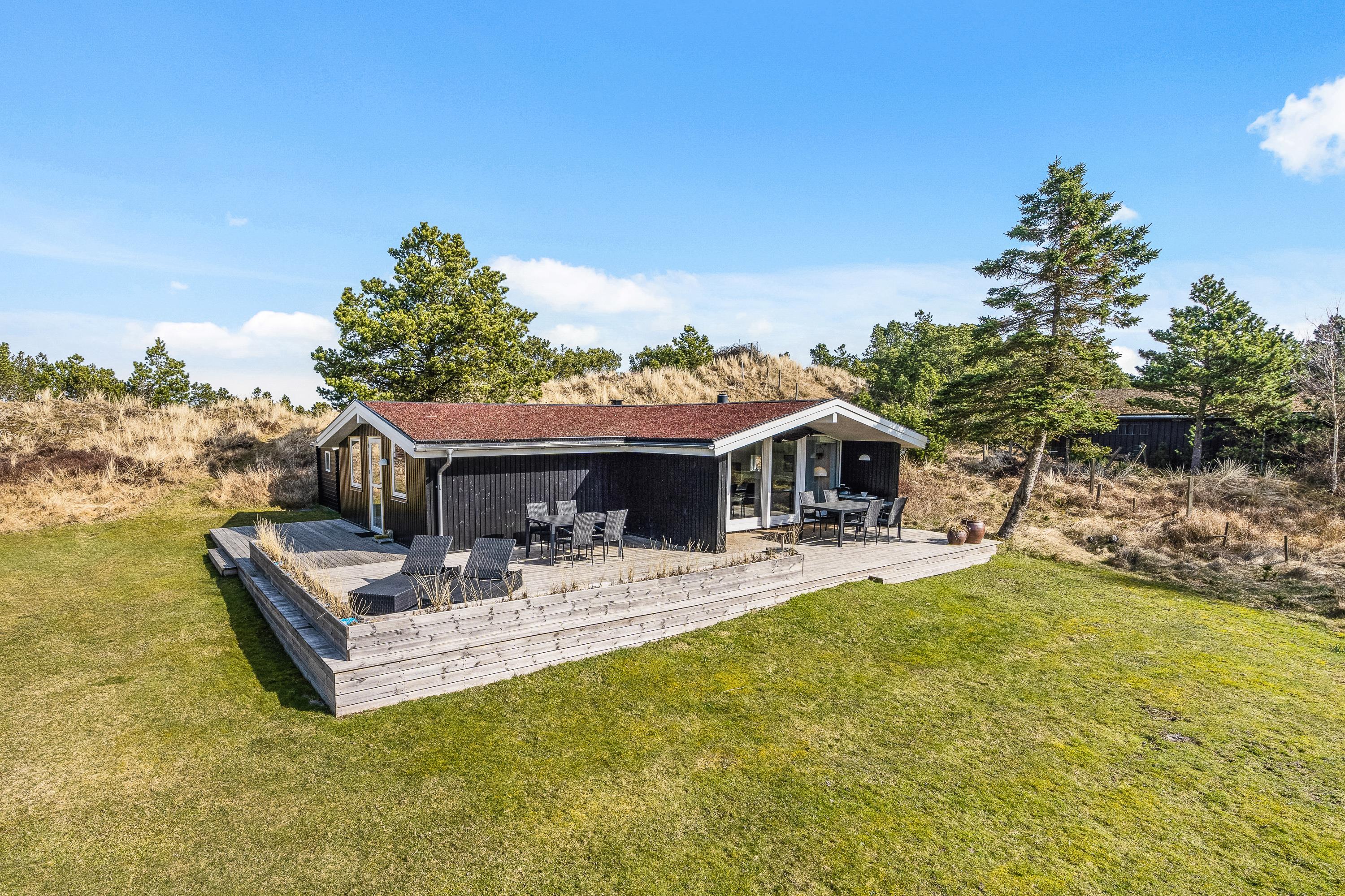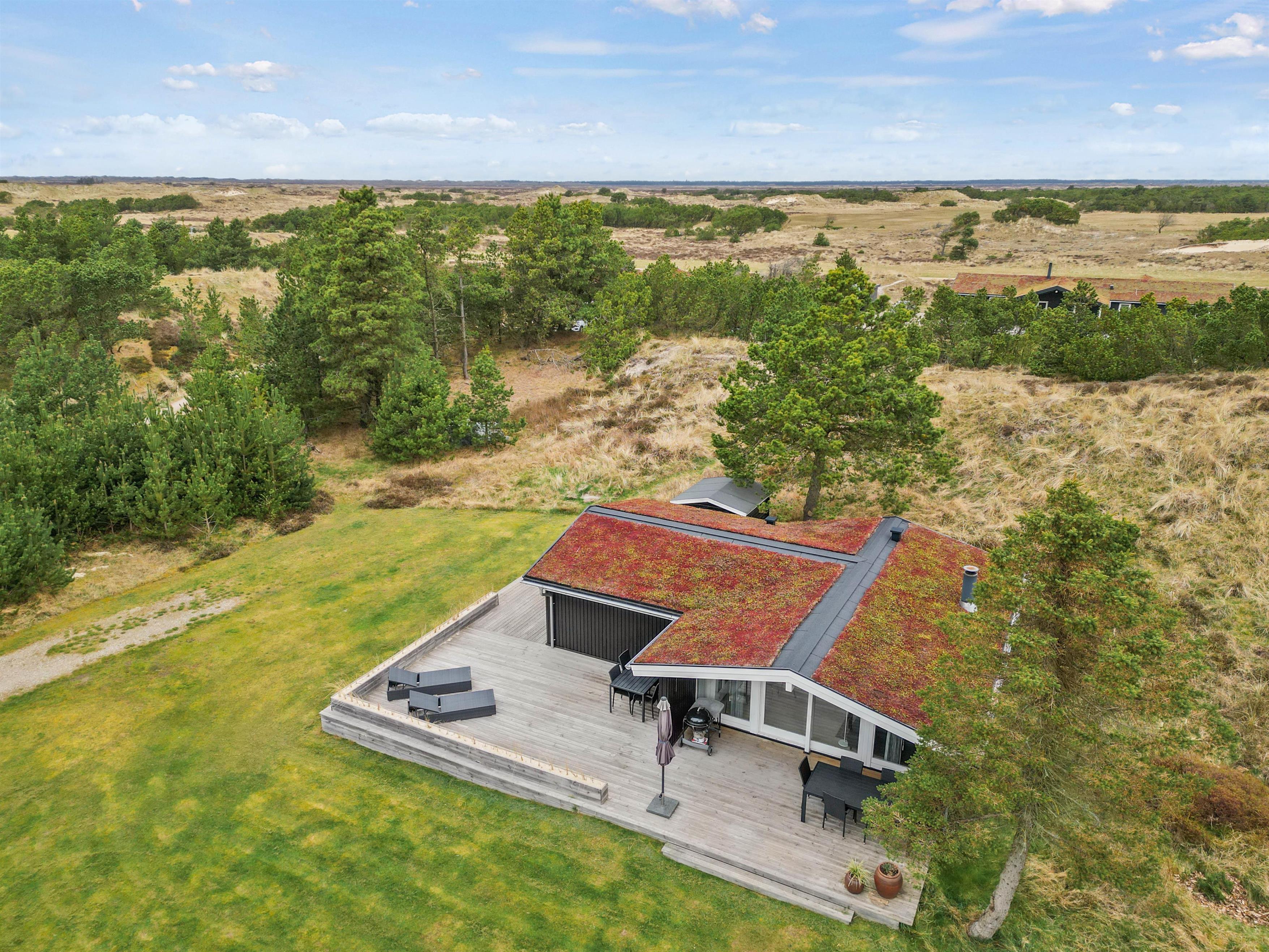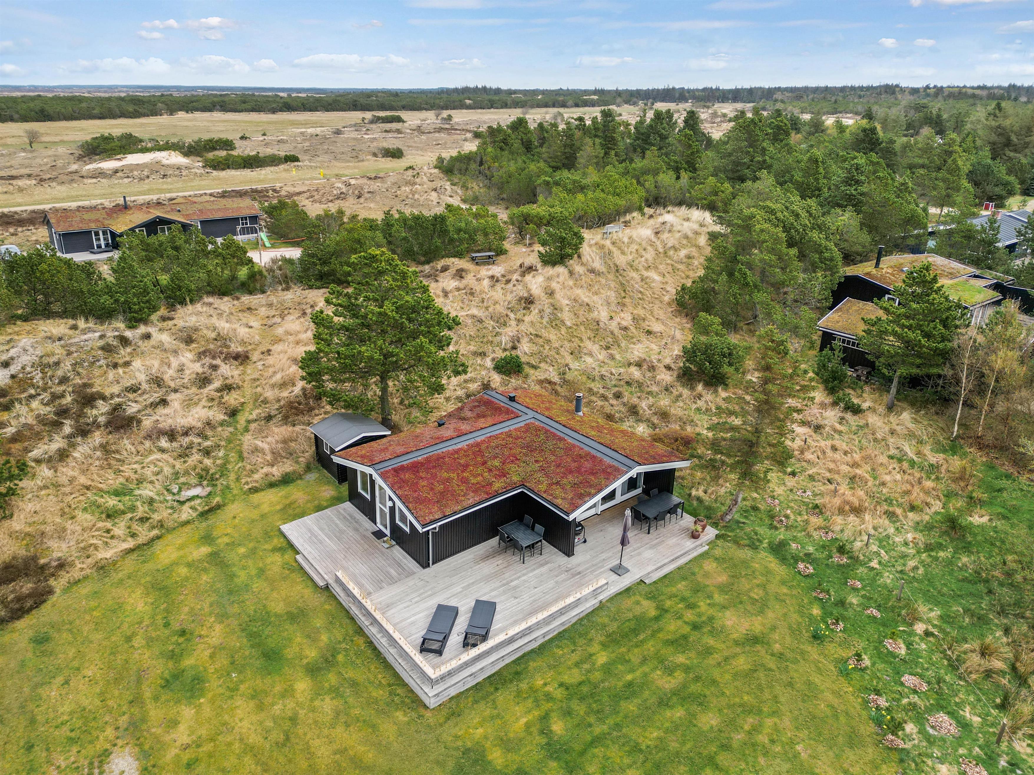 På sommerhusets fantastiske grund kommer I til at kunne nyde den flotteste, vestjyske natur. Nord for huset er der lavet en hyggelig lille plet, hvor I har udsigt til et flot hedelandskab.