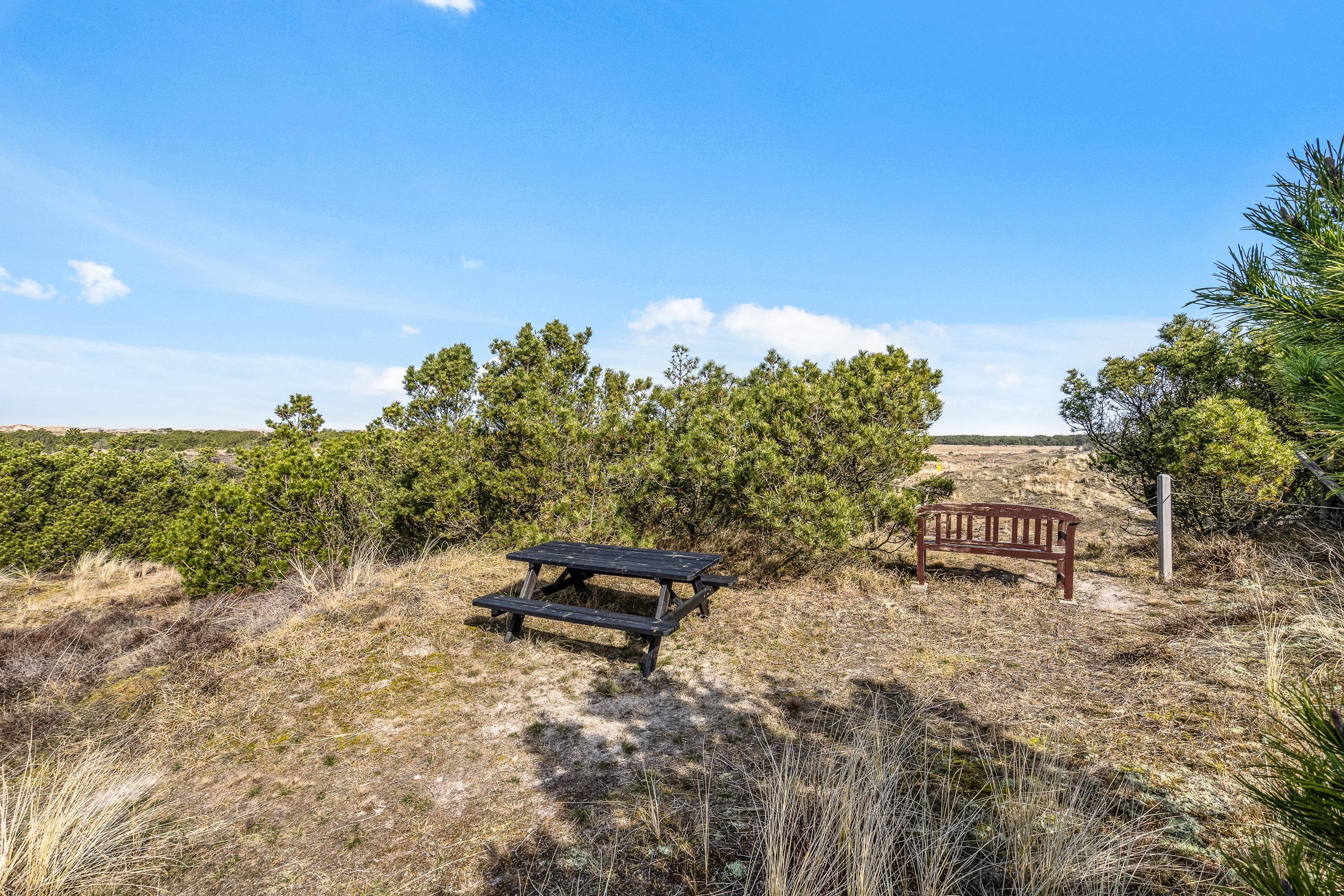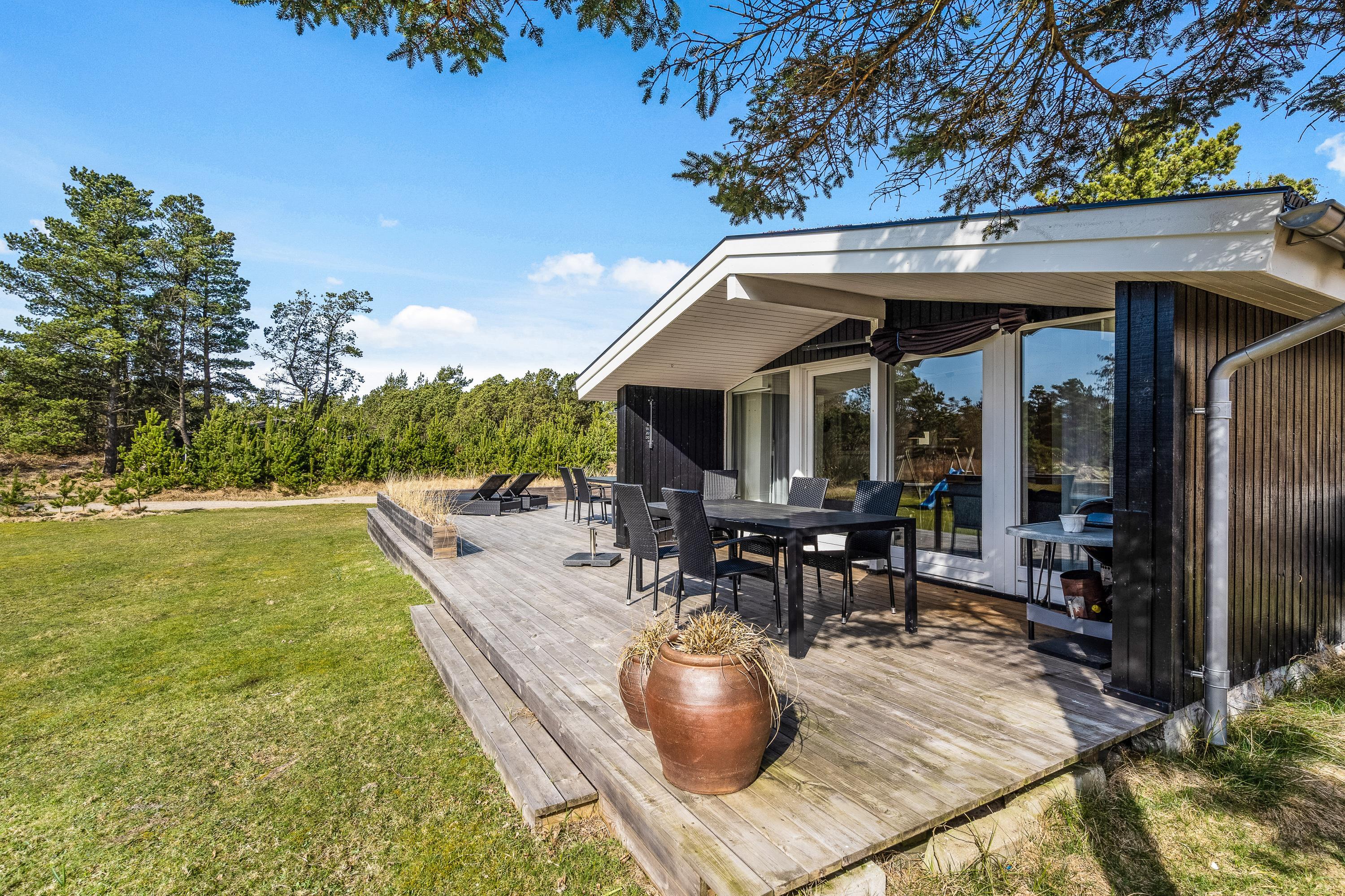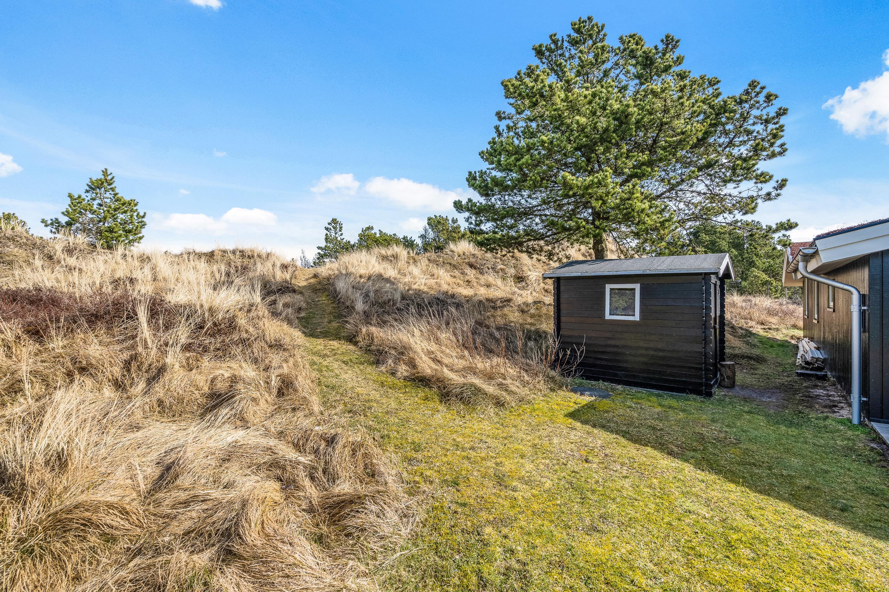På sommerhusets fantastiske grund kommer I til at kunne nyde den flotteste, vestjyske natur. Nord for huset er der lavet en hyggelig lille plet, hvor I har udsigt til et flot hedelandskab.
