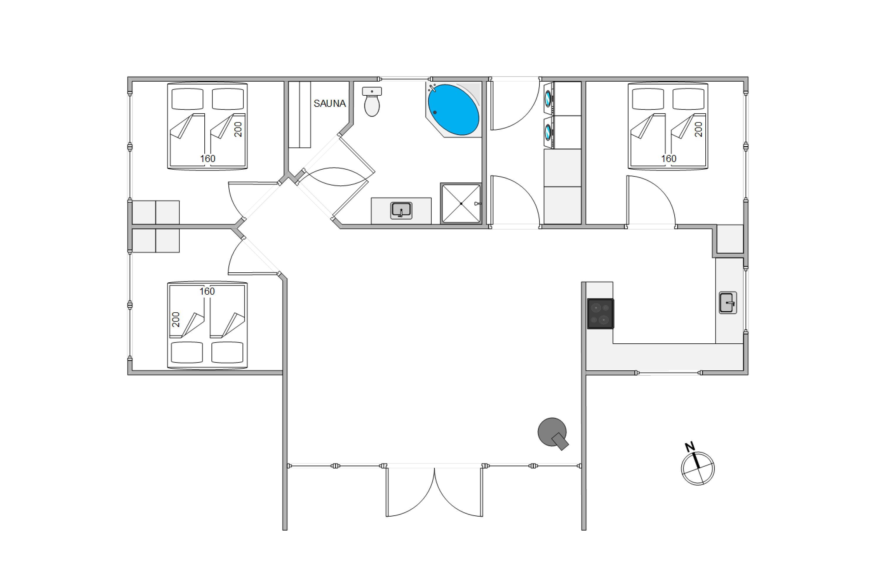 På sommerhusets badeværelse venter jer flere højdepunkter. Badeværelset byder nemlig på et wellnessområde, hvor I kan blive forkælet med masser af afslapning på ferien. Sæt jer til rette i det skønne spabad eller den varme sauna – eller begge dele – og slap fuldstændig af, mens I får ladt jeres batterier op igen.
