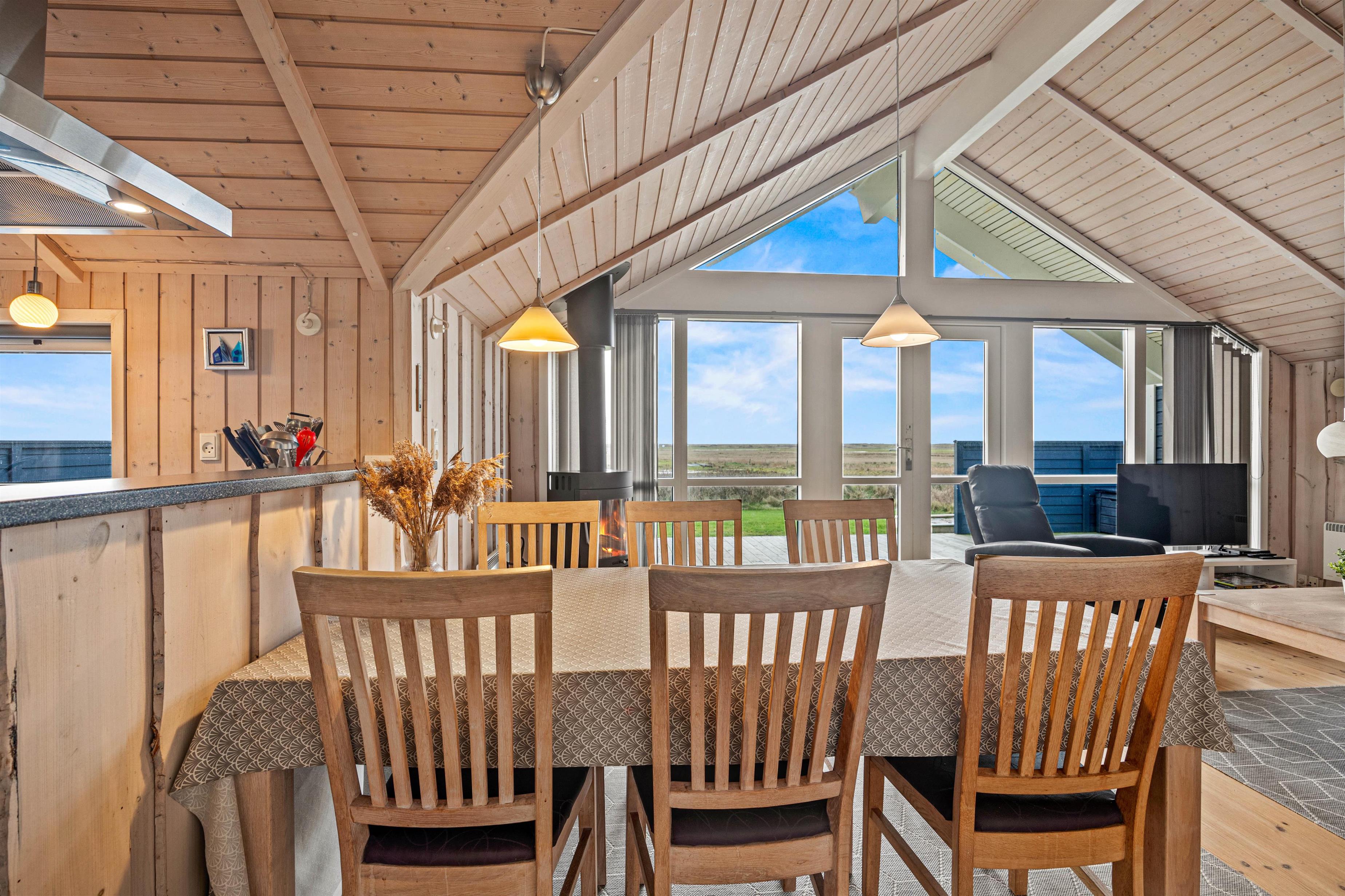 Til hyggelige feriestunder for hele familien er det alrummet, I skal søge mod. I det store opholdsrum kan I samles om madlavningen i køkkenet, sjove spil omkring bordet og gode film i tv’et – takket være Chromecasten kan I også streame jeres favoritfilm. I alrummet sørger brændeovnens knitrende flammer for, at feriestemningen bliver fuldendt.