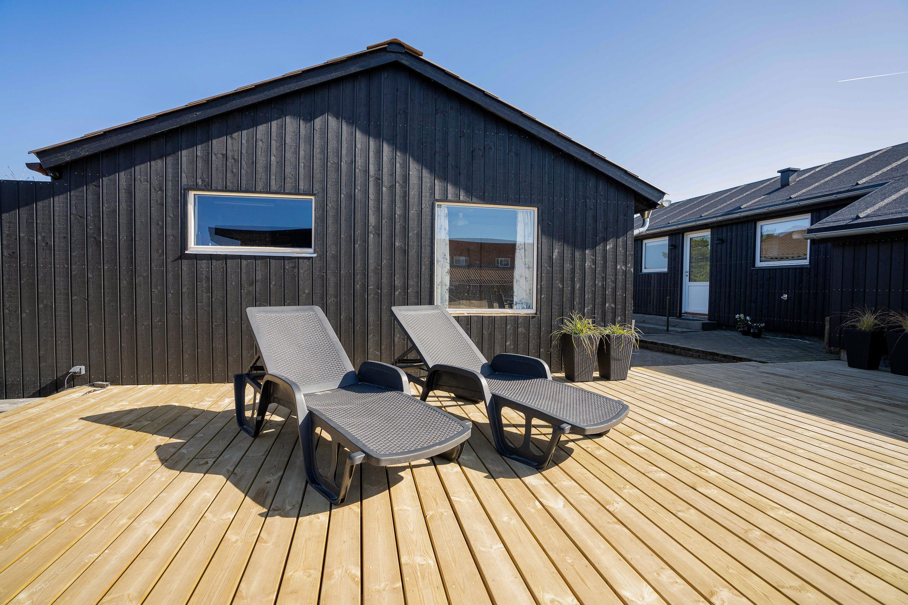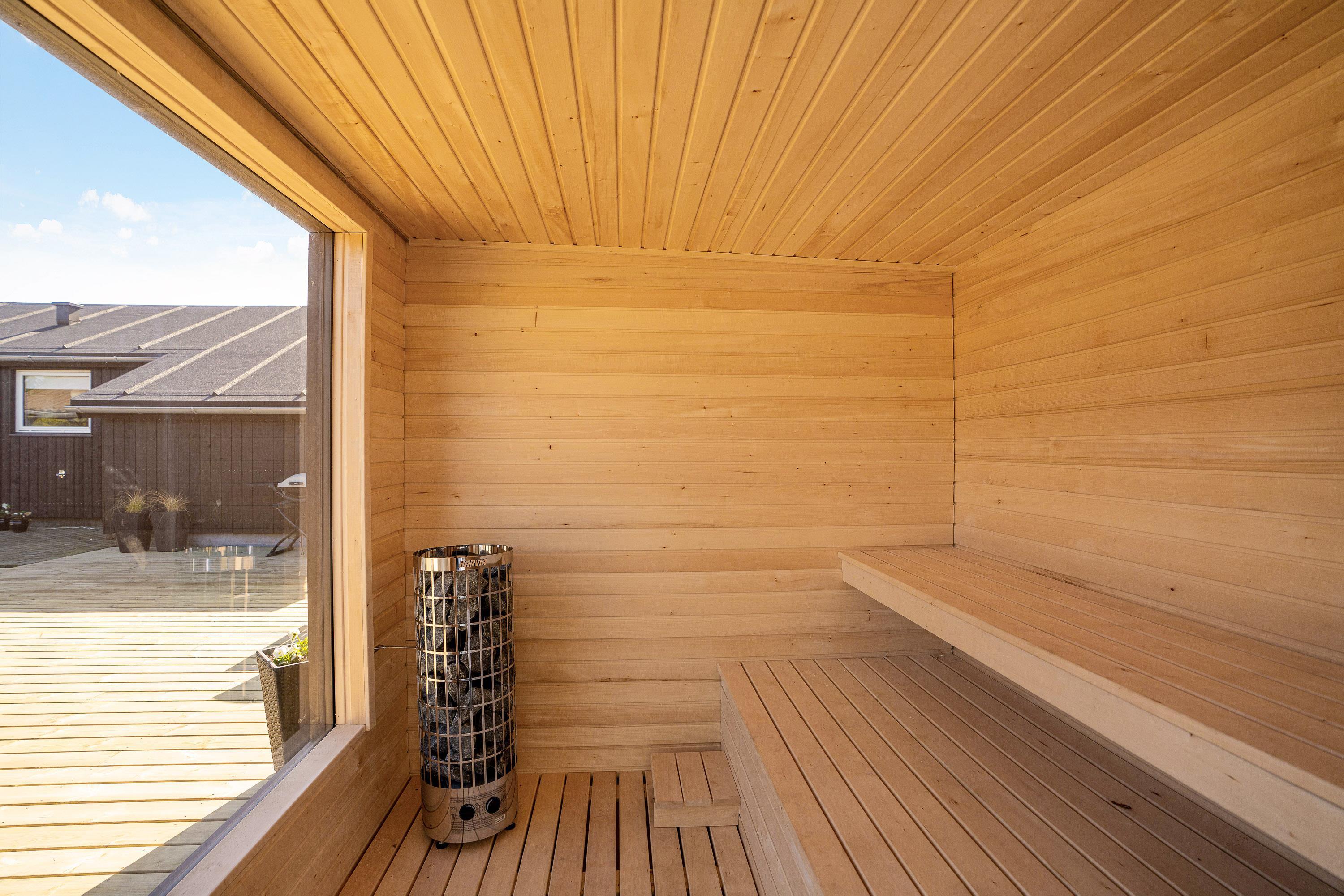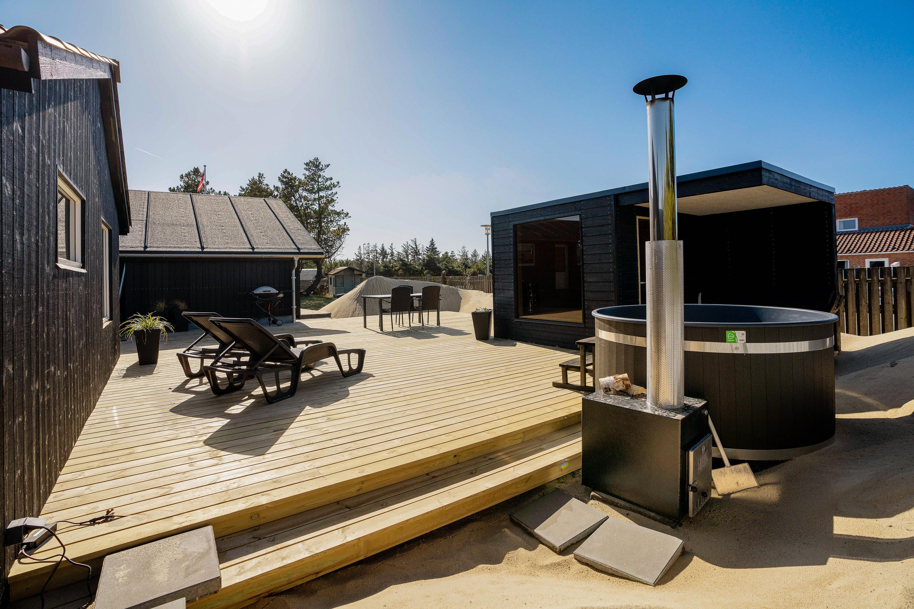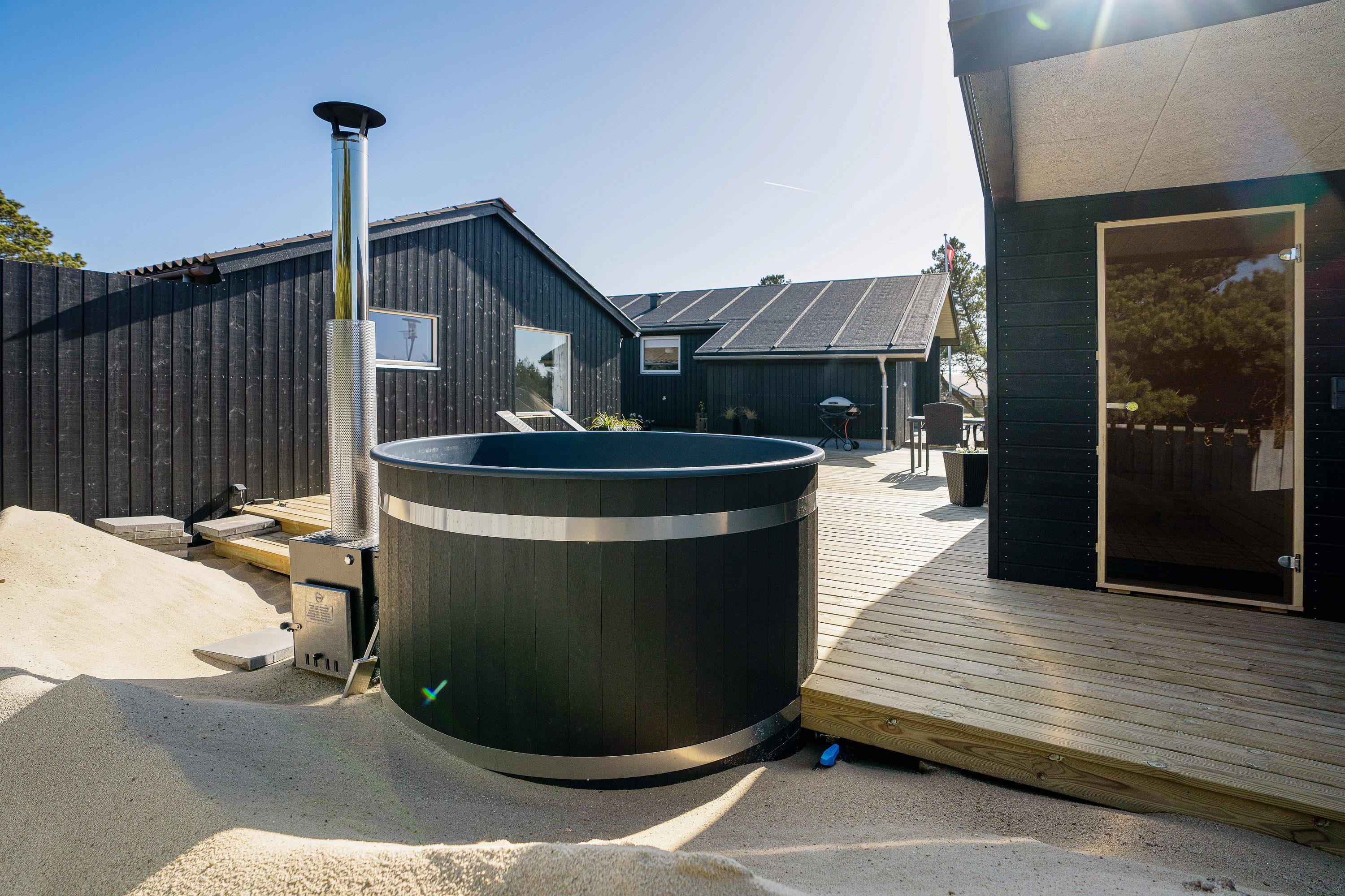 Sommerhuset på Fyrvej 24 i Blåvand har en indhegnet grund, hvor jeres hunde frit kan blive luftet, uden at de stikker af. Her står der også et vilmarksbad og en udesauna, hvor i kan slappe af og nyde varmen. Fra 1. april til 31. oktober er der også en udebruser til rådighed, hvor I kan blive skyllet af efter badeturen.