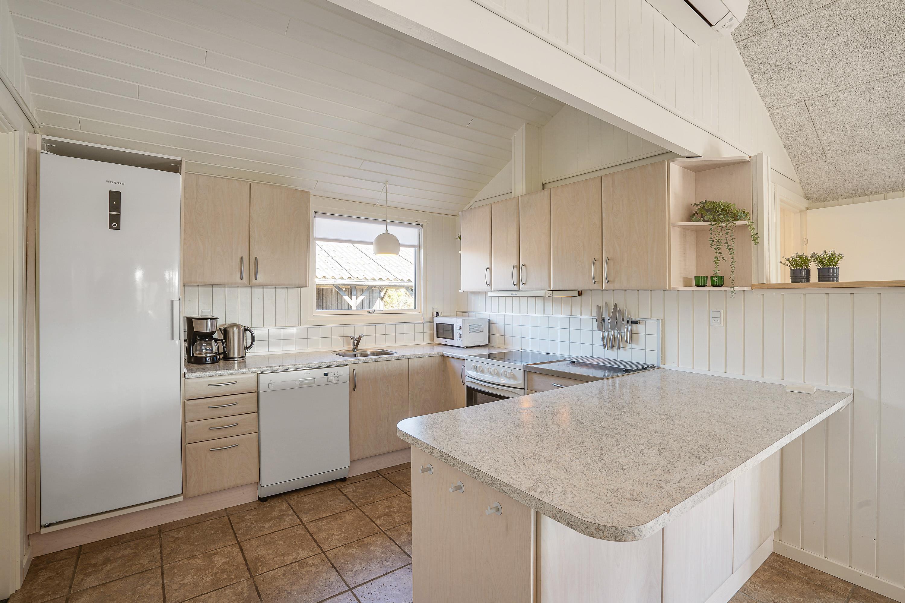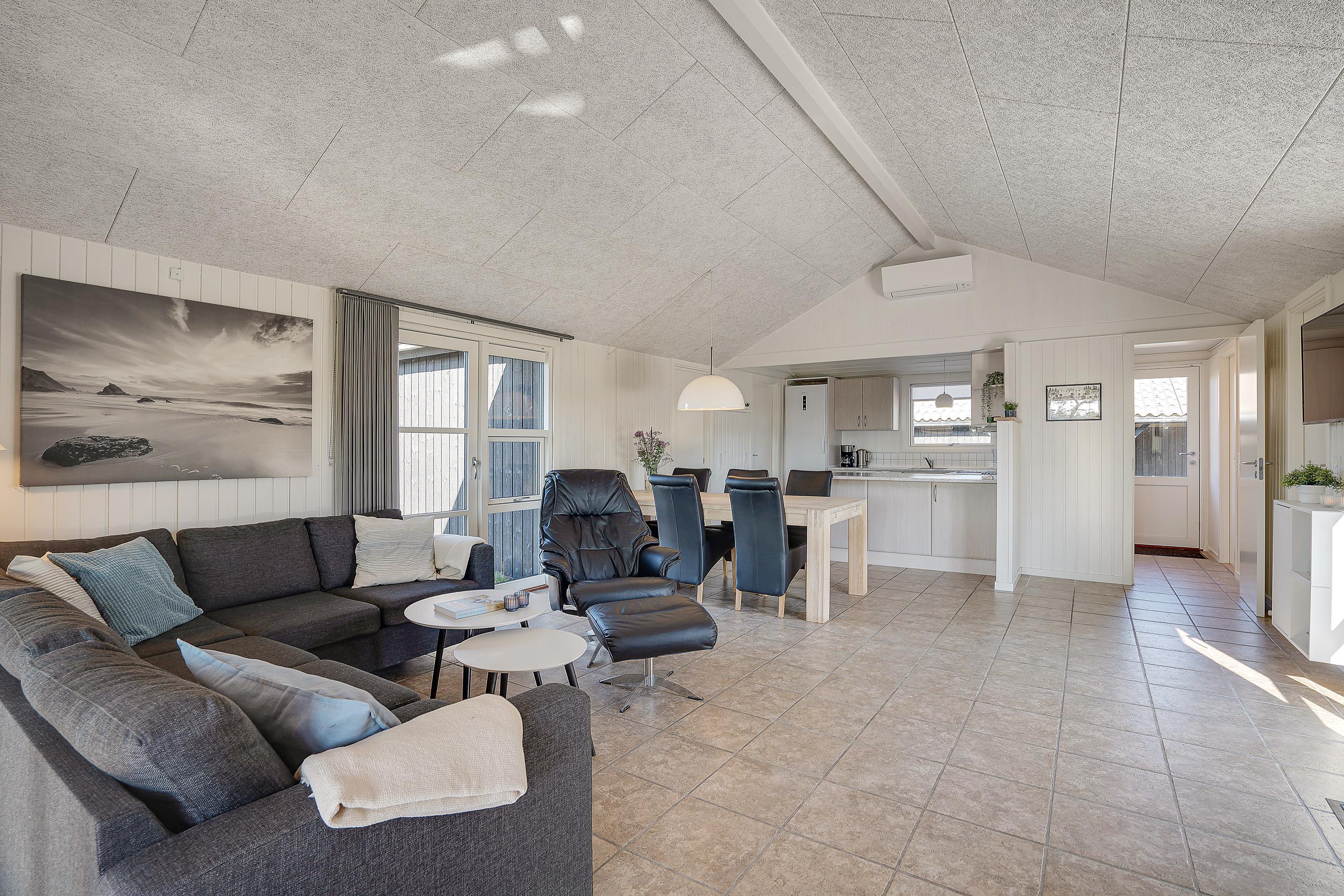 Dette sommerhus har en central beliggenhed i Blåvand, så der er ikke langt fra tanke til handling, hvis et dyb i Vesterhavet pludselig frister. Det kræver kun en kort gåtur, og her kan hele familien være med.