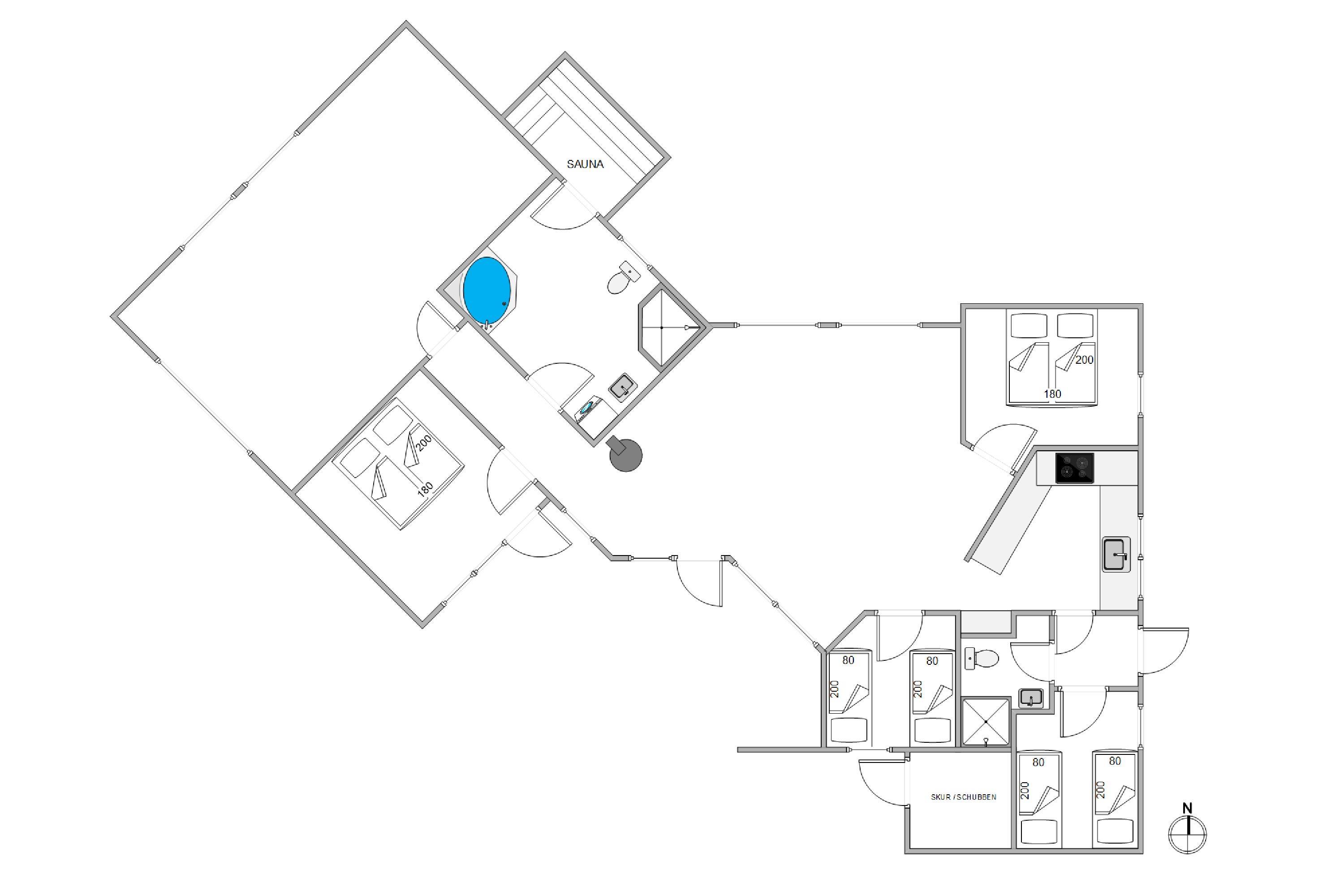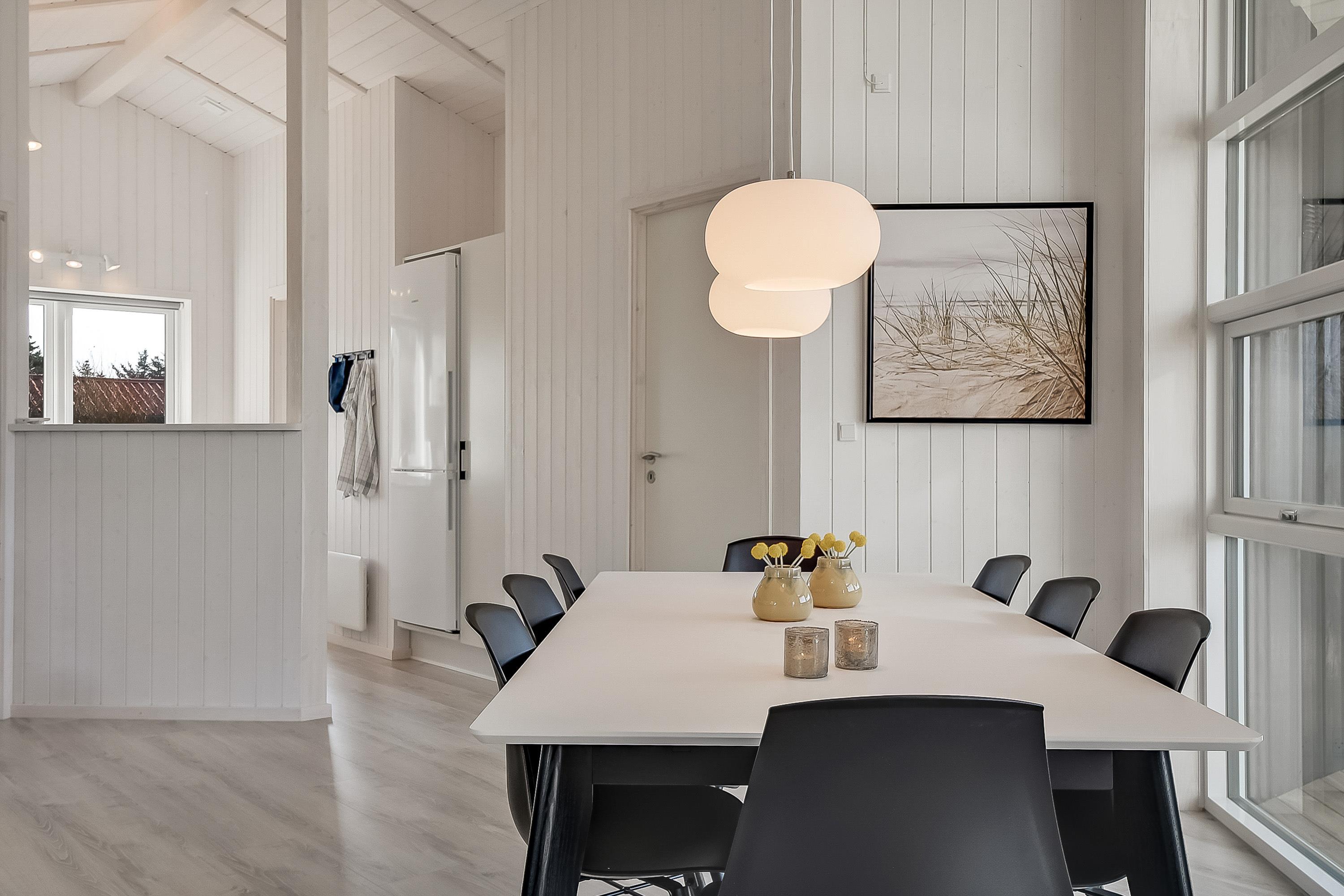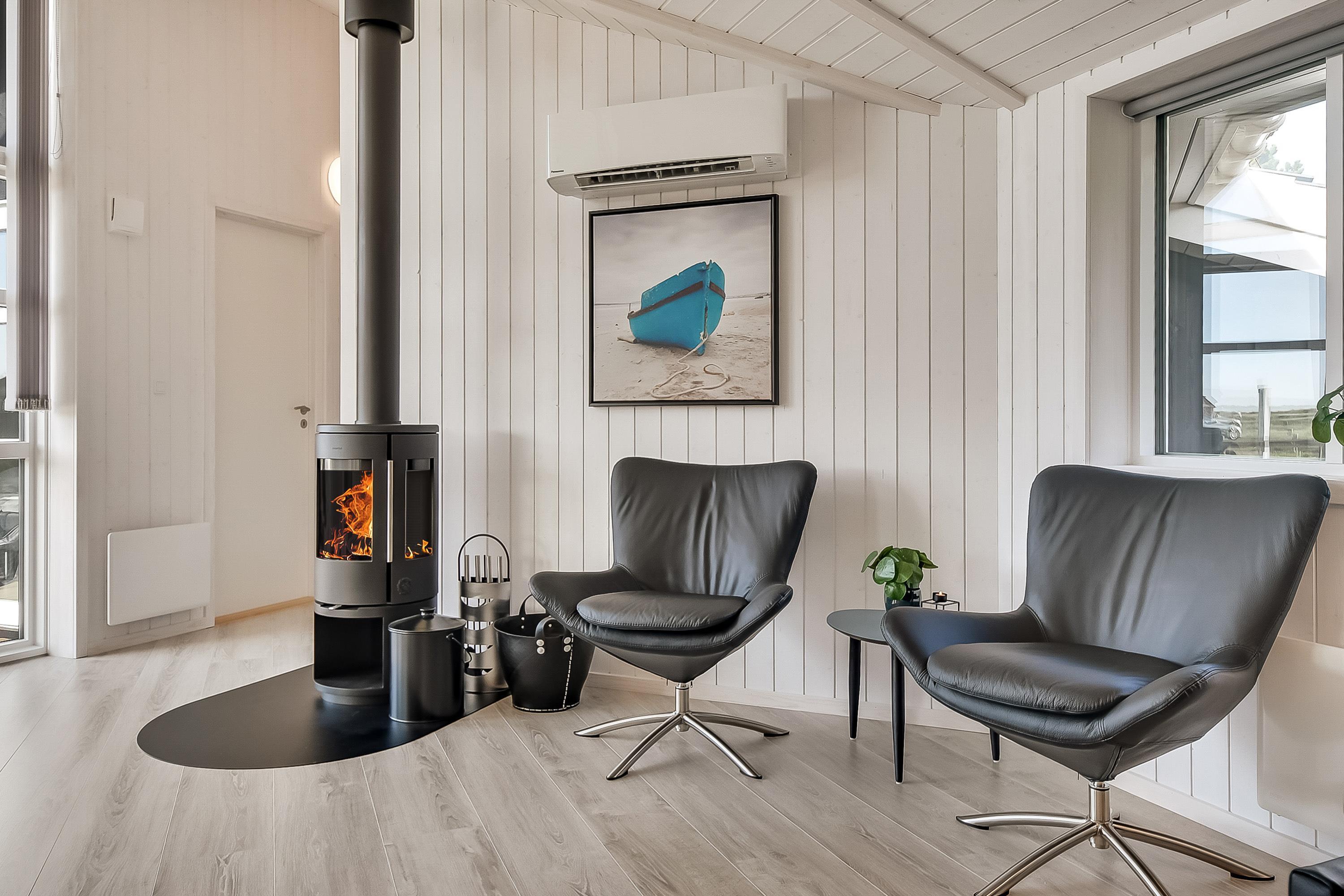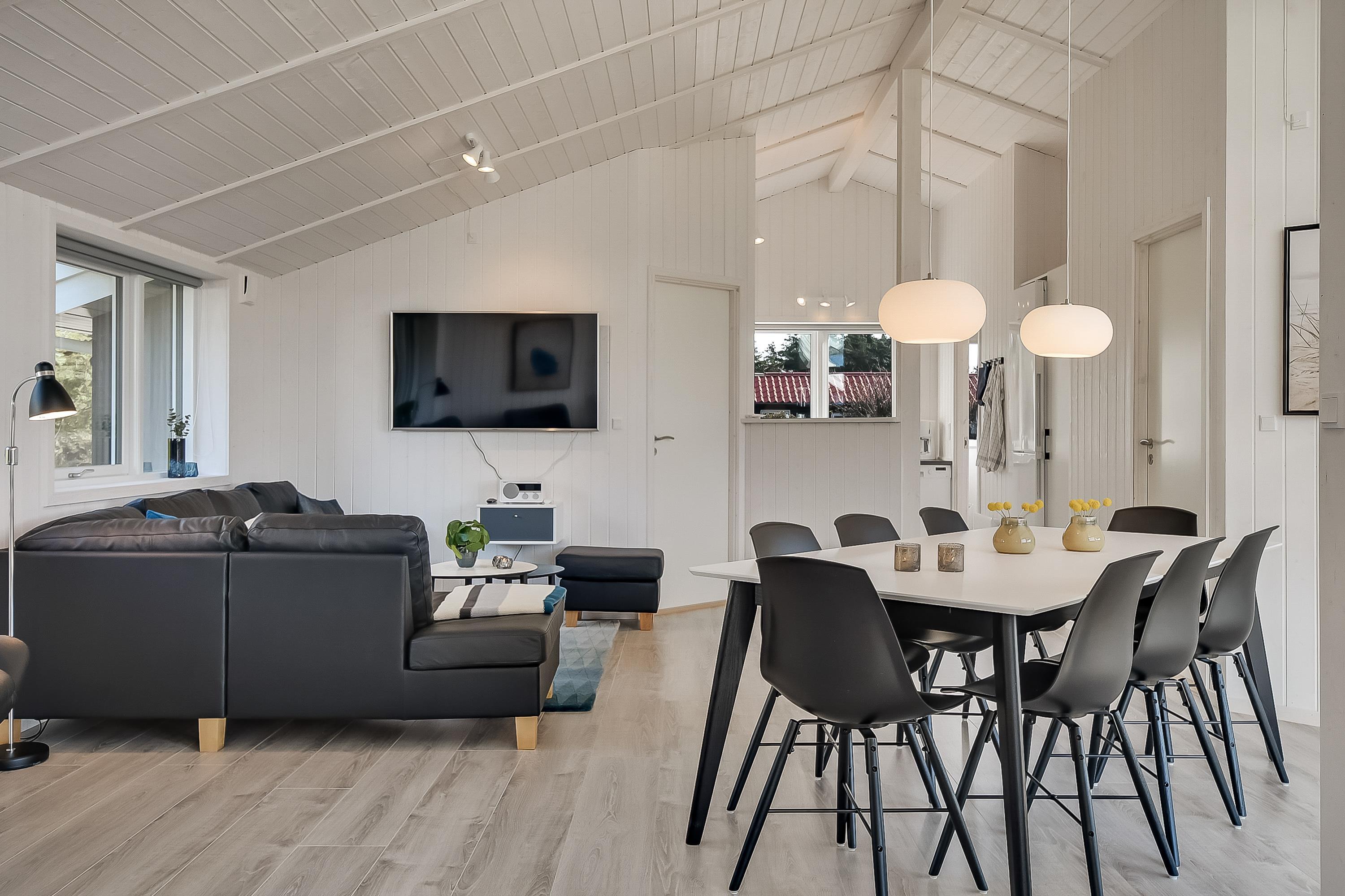 I det moderne køkken kan I nemt trylle lækre feriemåltider, som kan nydes ved det store spisebord. For ekstra hyggestemning sørger den uundværlige brændeovn. Der er masser af plads til leg og hygge i det store aktivitetsrum, og med 2 fladskærm-fjernsyn er familiefreden sikret. Når vinden suser udenfor og havet viser tænder, så er det tid til rigtigt at forkæle sig selv inden døre. Tænd op i husets spa og den store sauna og nyd jeres helt private wellness-oase.