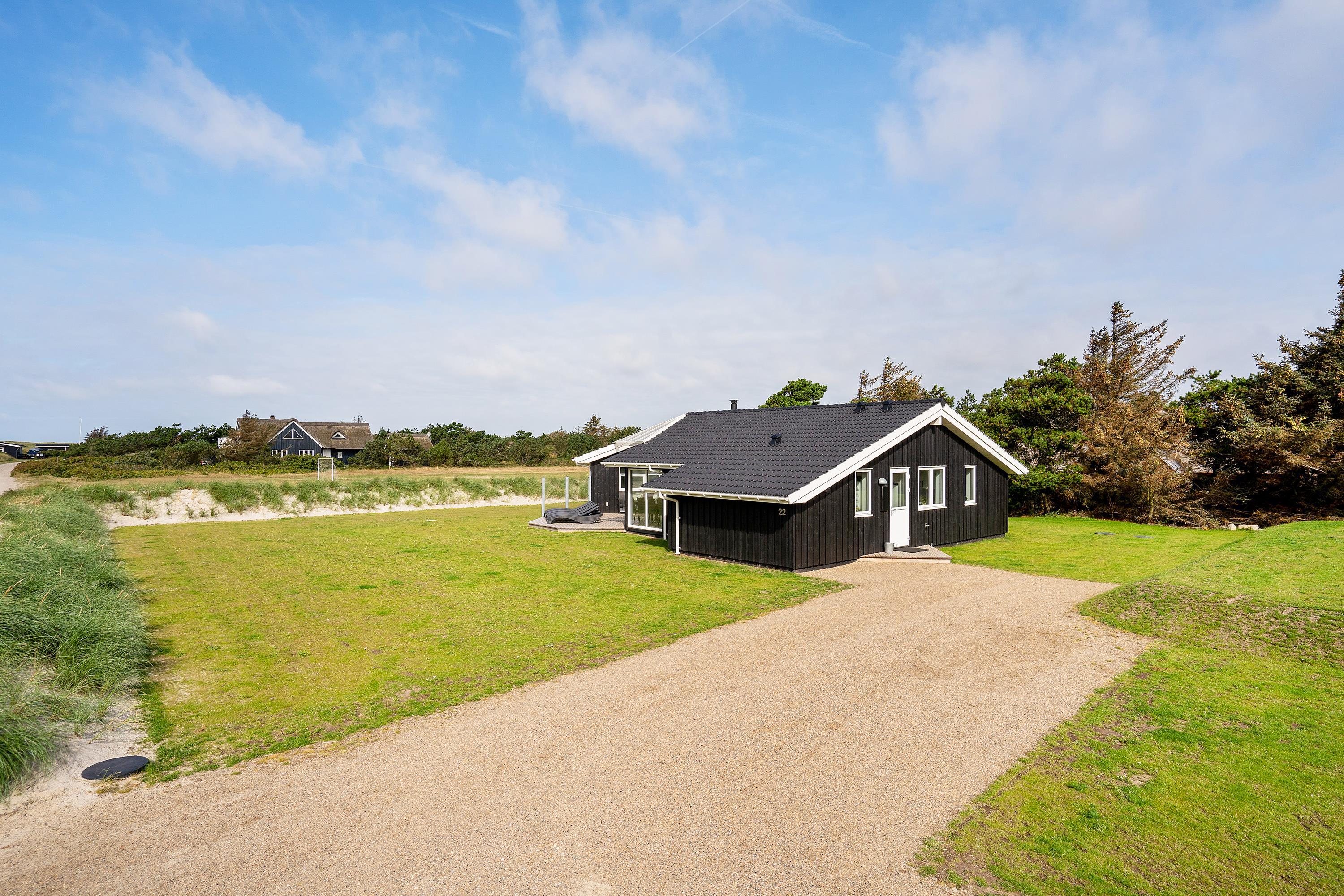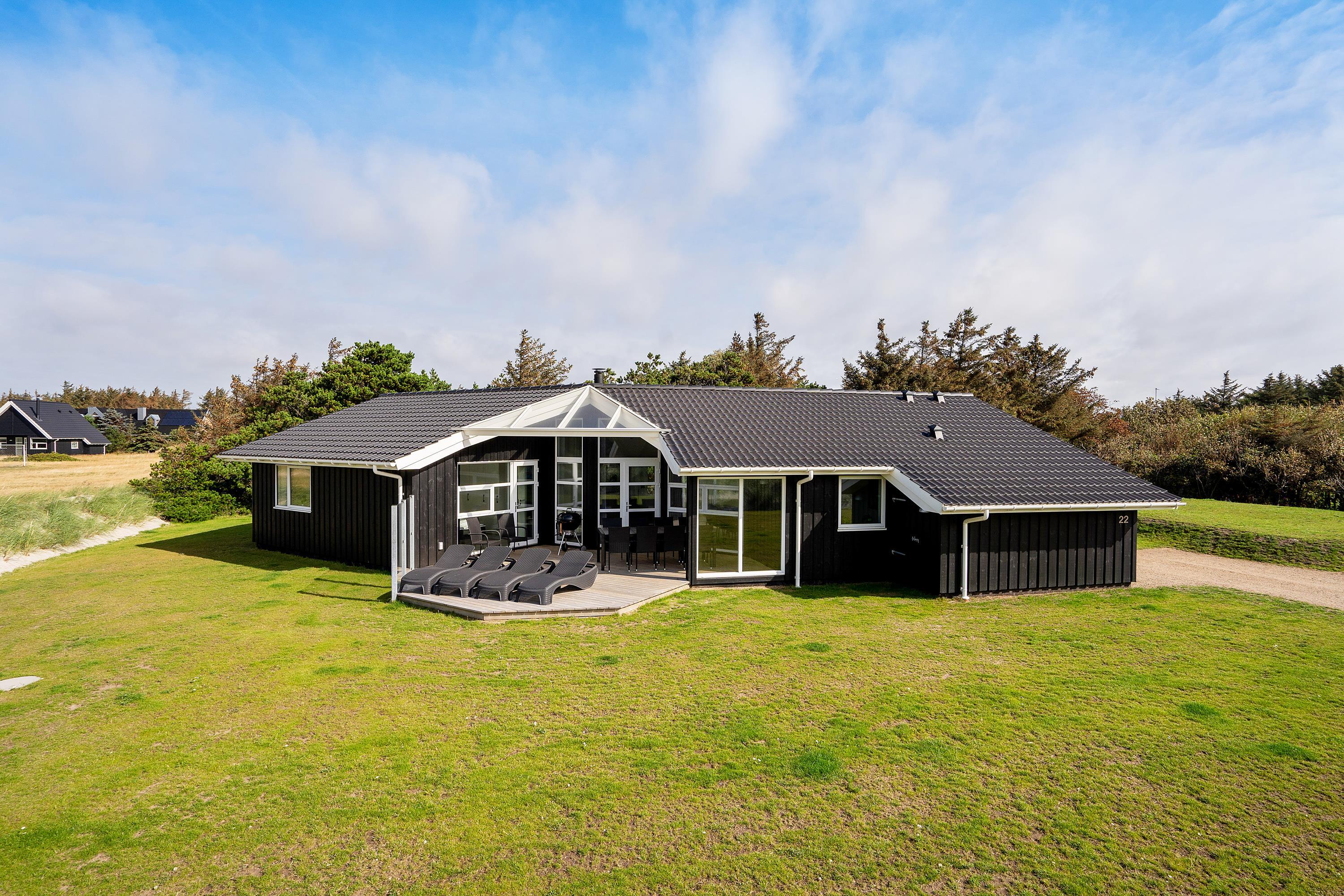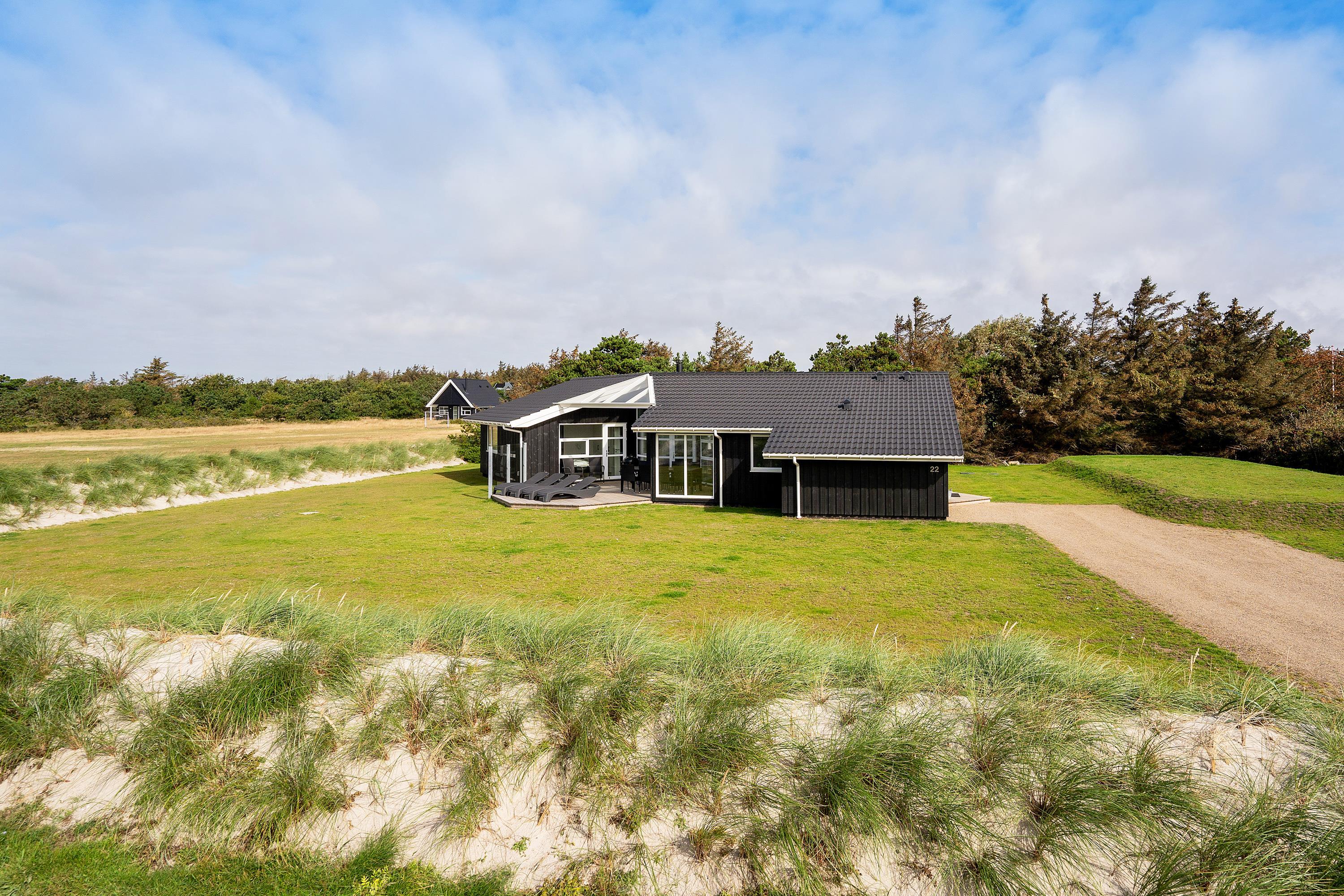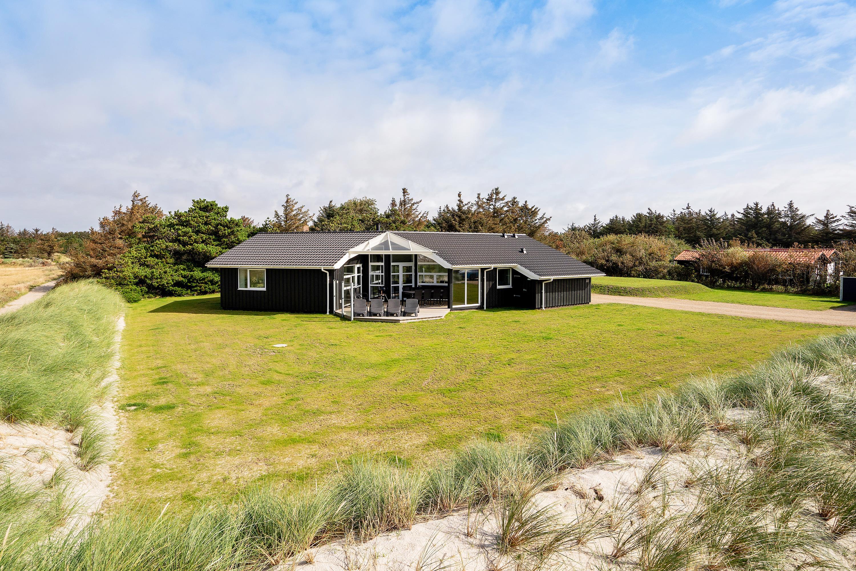 Den perfekte ramme om jeres ferie ved Vesterhavet - her er den. I dette smukke feriehus i Blåvand har I muligheden for med op til 8 personer at holde en skøn ferie i et veludstyret hus med kun 150 m til den skønneste badestrand. Indenfor på Strandparken 22 er der masser af plads til sjov og hygge med både aktivitetsrum og stort wellnessbadeværelse, og familiens hund må også være med.
