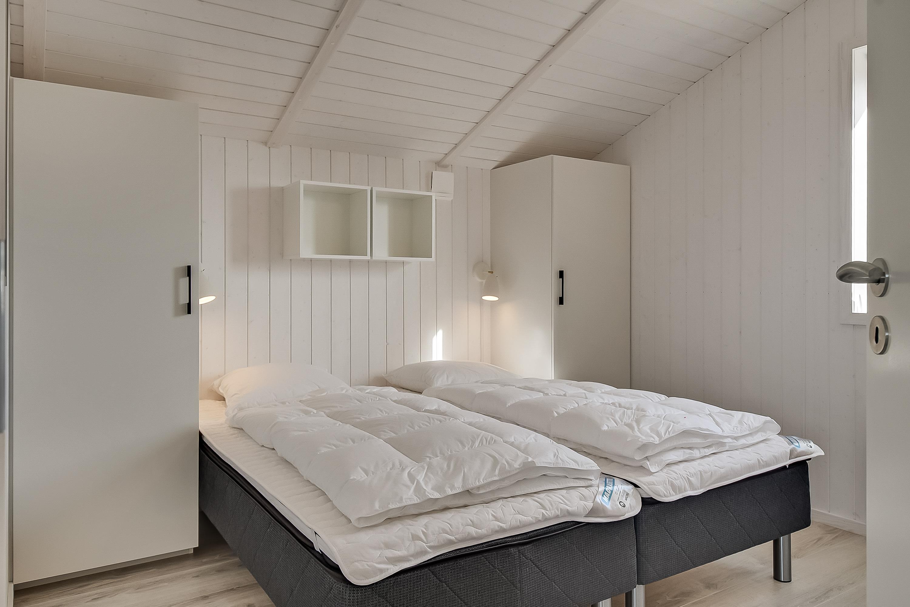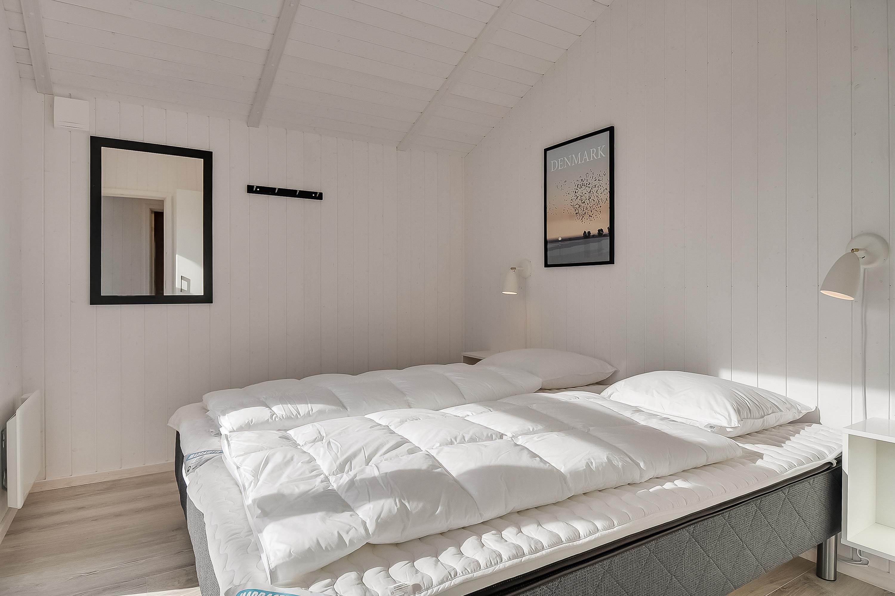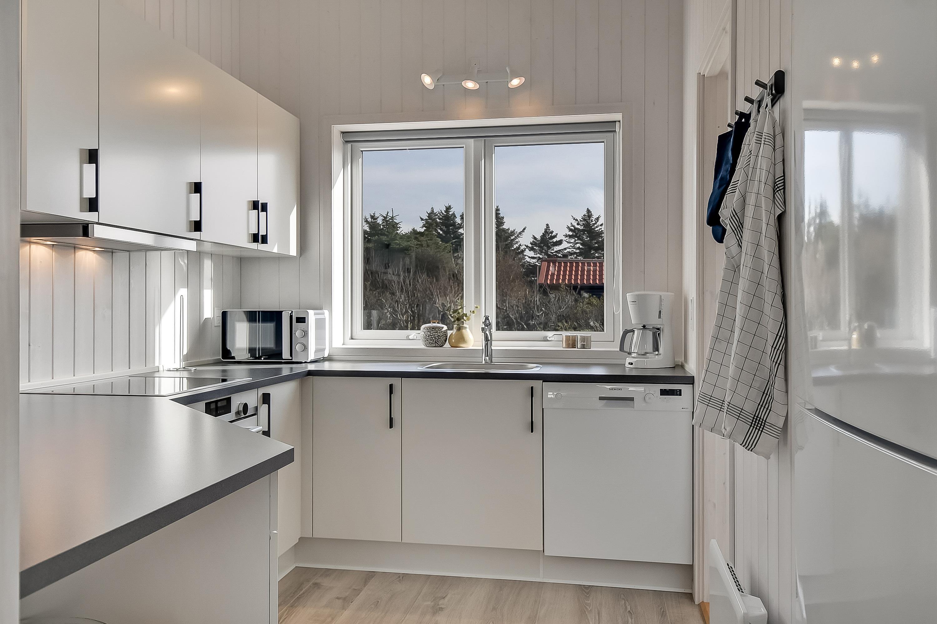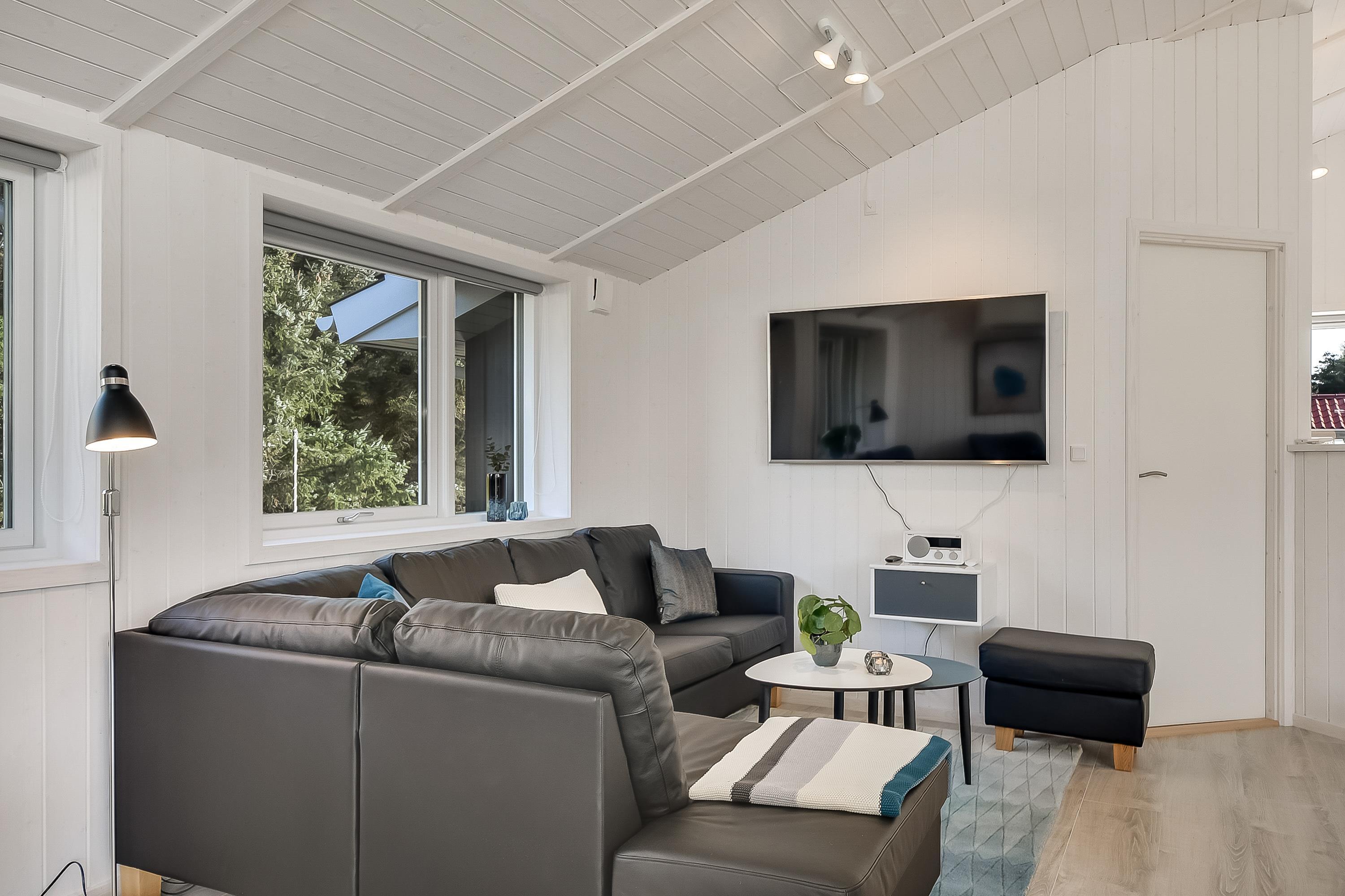 Huser, der er opført i 2018, er smart og moderne indrettet med store panoramaruder fra spisestuen og masser af dejligt lysindfald. De 4 soveværelser, 2 med dobbeltsenge og 2 med enkeltsenge, åbner op for muligheden for at holde familieferie med hele flokken eller ferie sammen med vennefamilien eller bedsteforældrene. Med 2 badeværelser, vaskemaskine og tørretumbler er ferien altid afslappet.