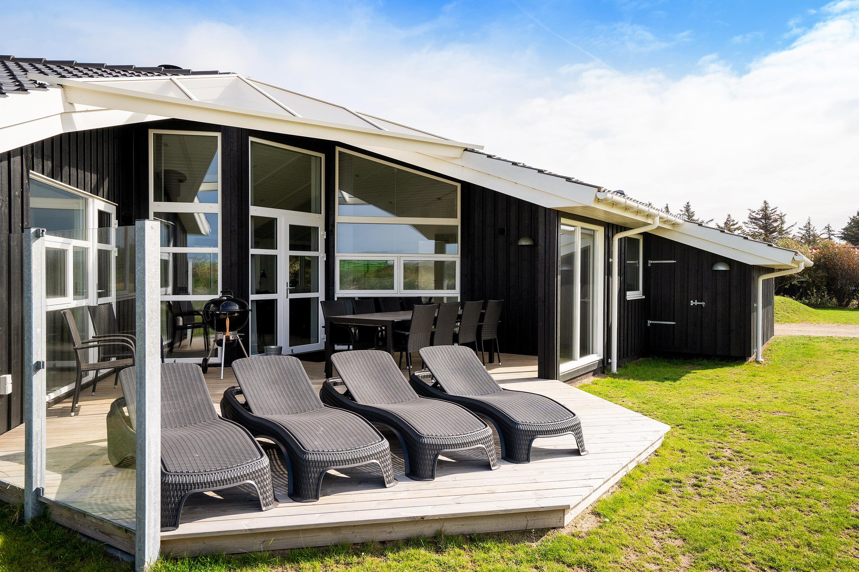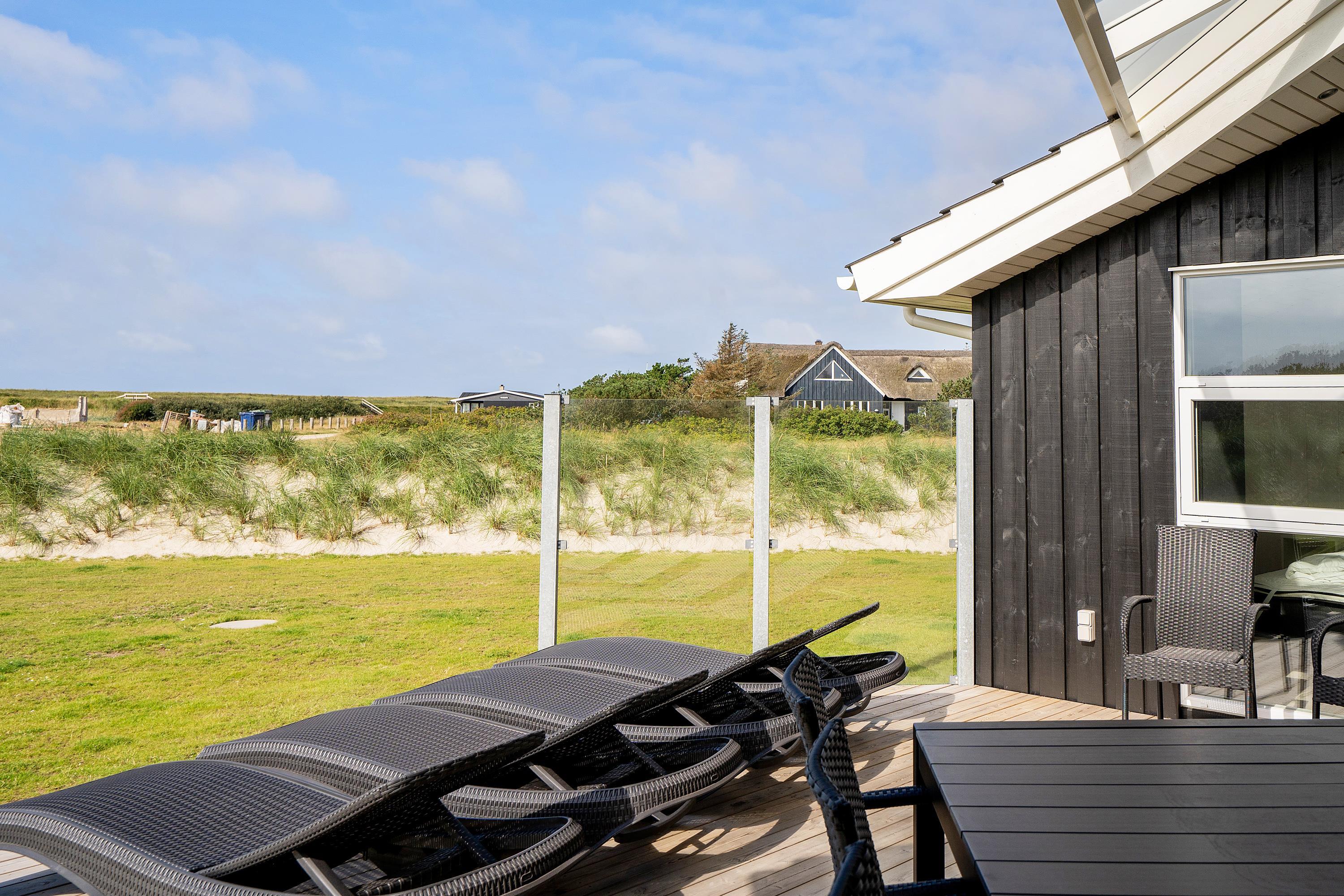 En dejlig overdækket og afskærmet terrasse lokker jer udenfor, så snart solen titter frem. Så er det tid til at slappe af på de bekvemme liggestole og tanke masser af lys, imens I nyder lyden og duften af Vesterhav. Skulle det blive for varmt, så er det bare at gribe håndklædet og løbe ned og tage en forfriskende dukkert i det blågrønne vand.
