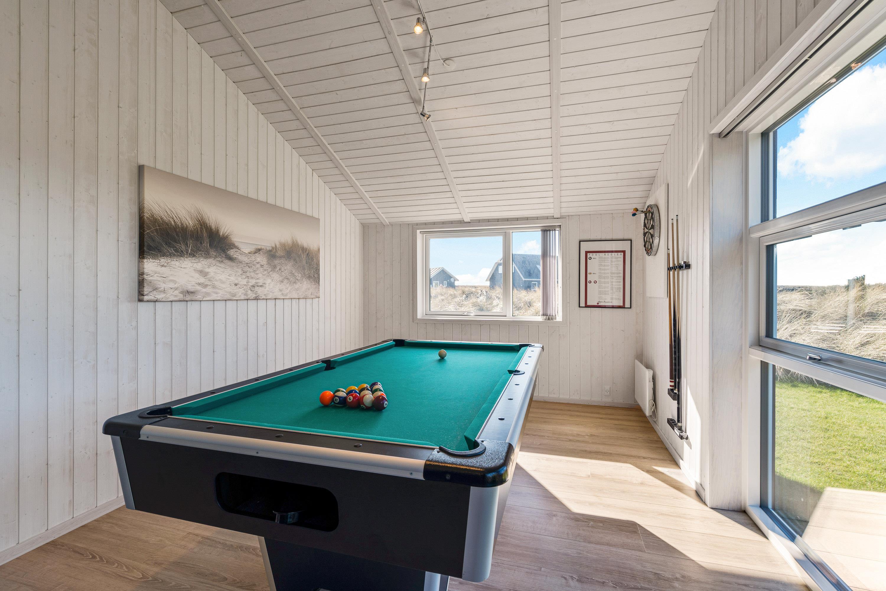 Billard i aktivitetsrum og 2 badeværelser, sauna og spa