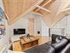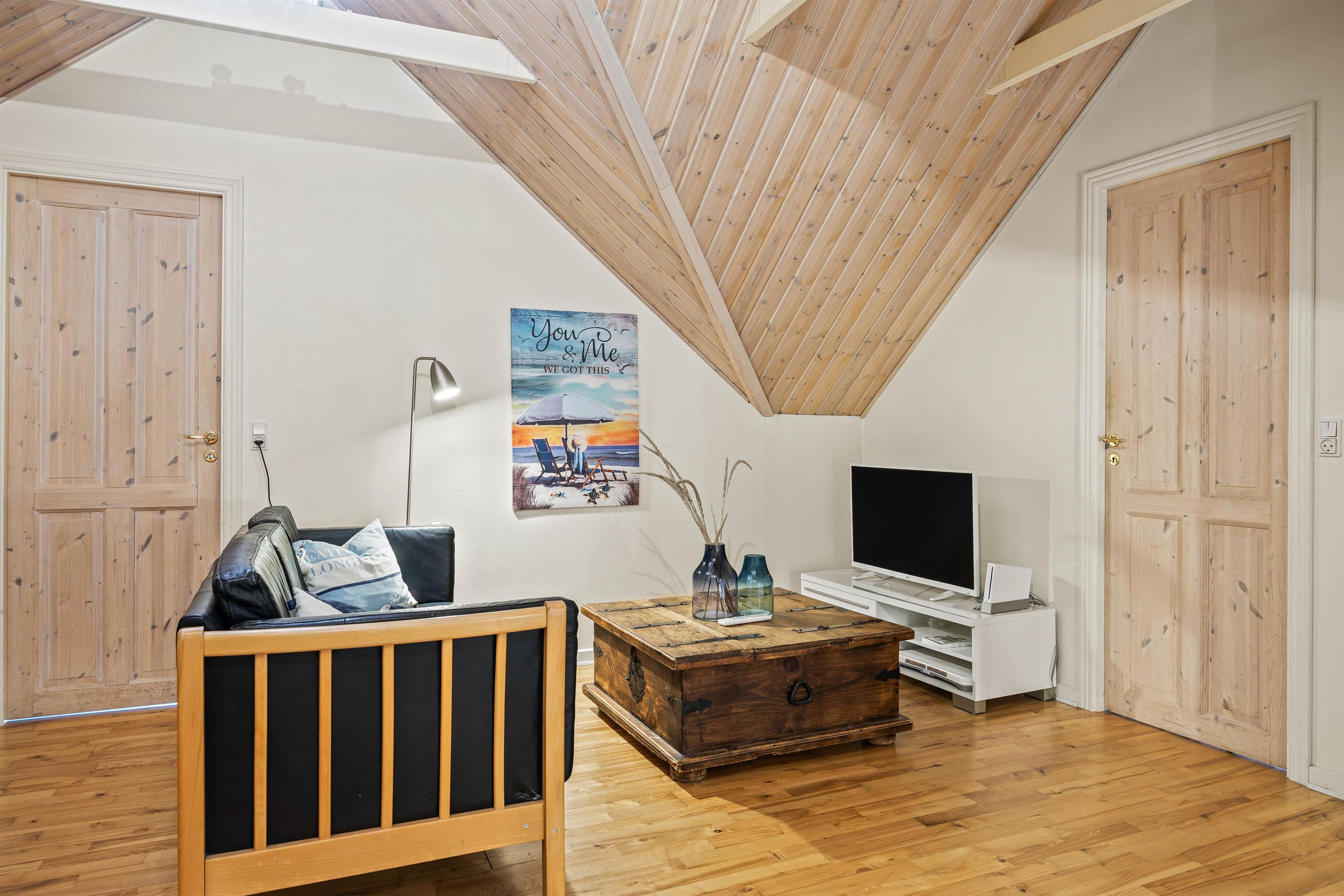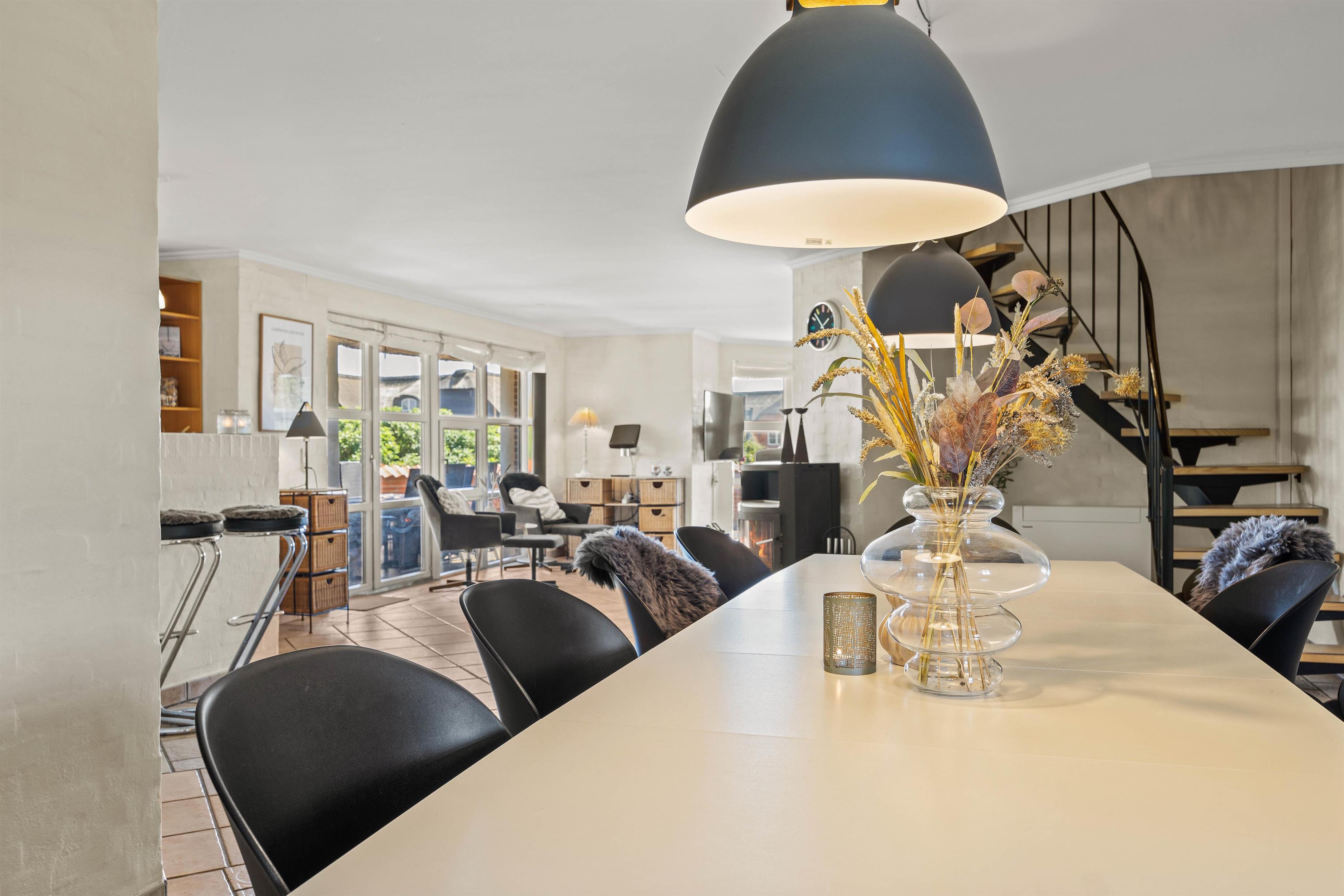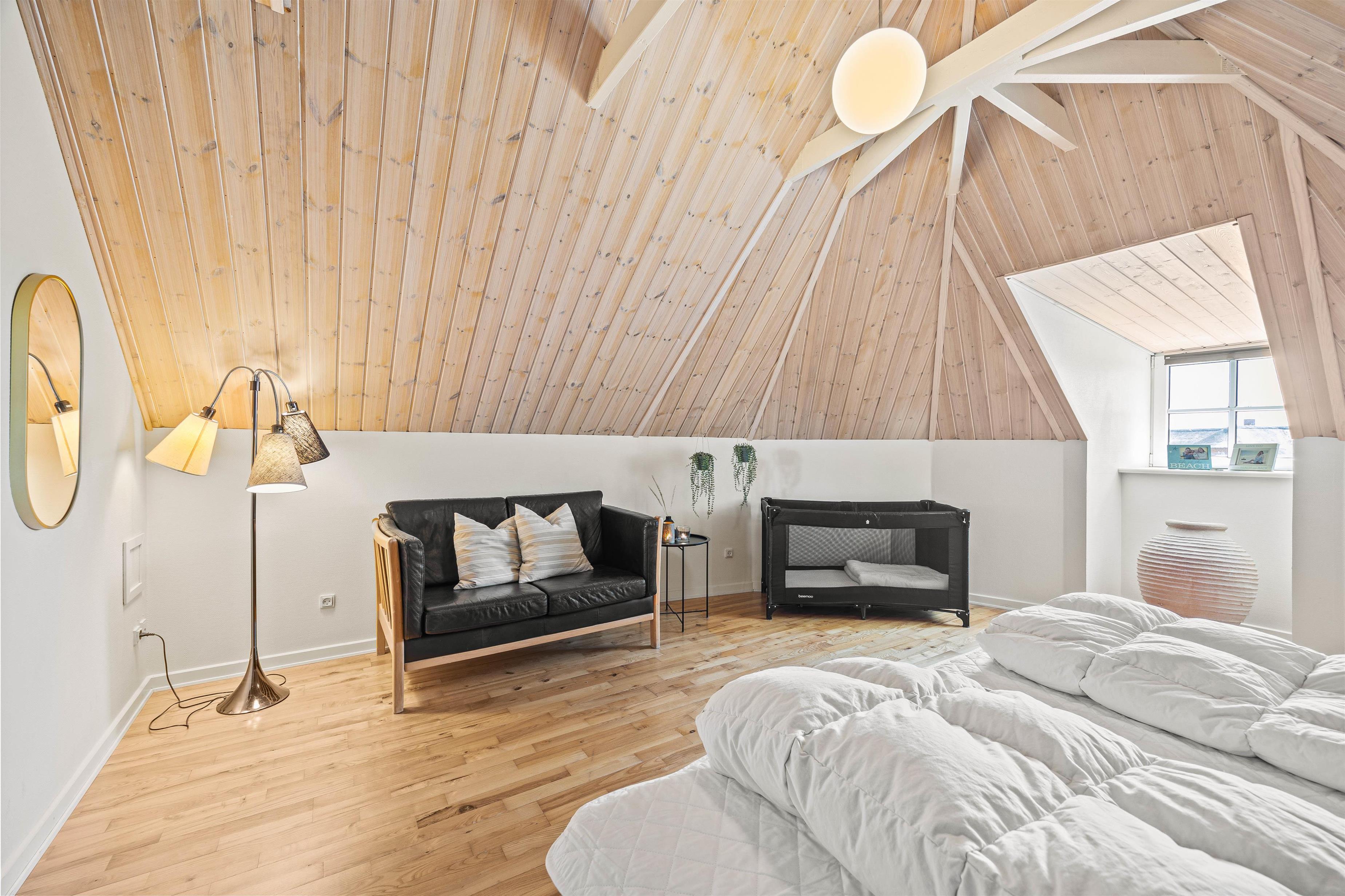 Højdepunkterne i sommerhuset er det åbne alrum, der forener stue og køkken, eller poolafdelingen. Alrummet er hyggeligt og venligt indrettet - her er plads til hele flokken og en hyggelig brændeovn er prikken over iét. Her er der plads til fællesskabet, afslapning, fælles madlavning og hyggelige spilleaftner. I poolrummet står den både på leg og afslapning med spa og sauna. I den lange pool er I, uanset vejret, sikret mange gode stunder med alverdens lege og vandplaskeri!