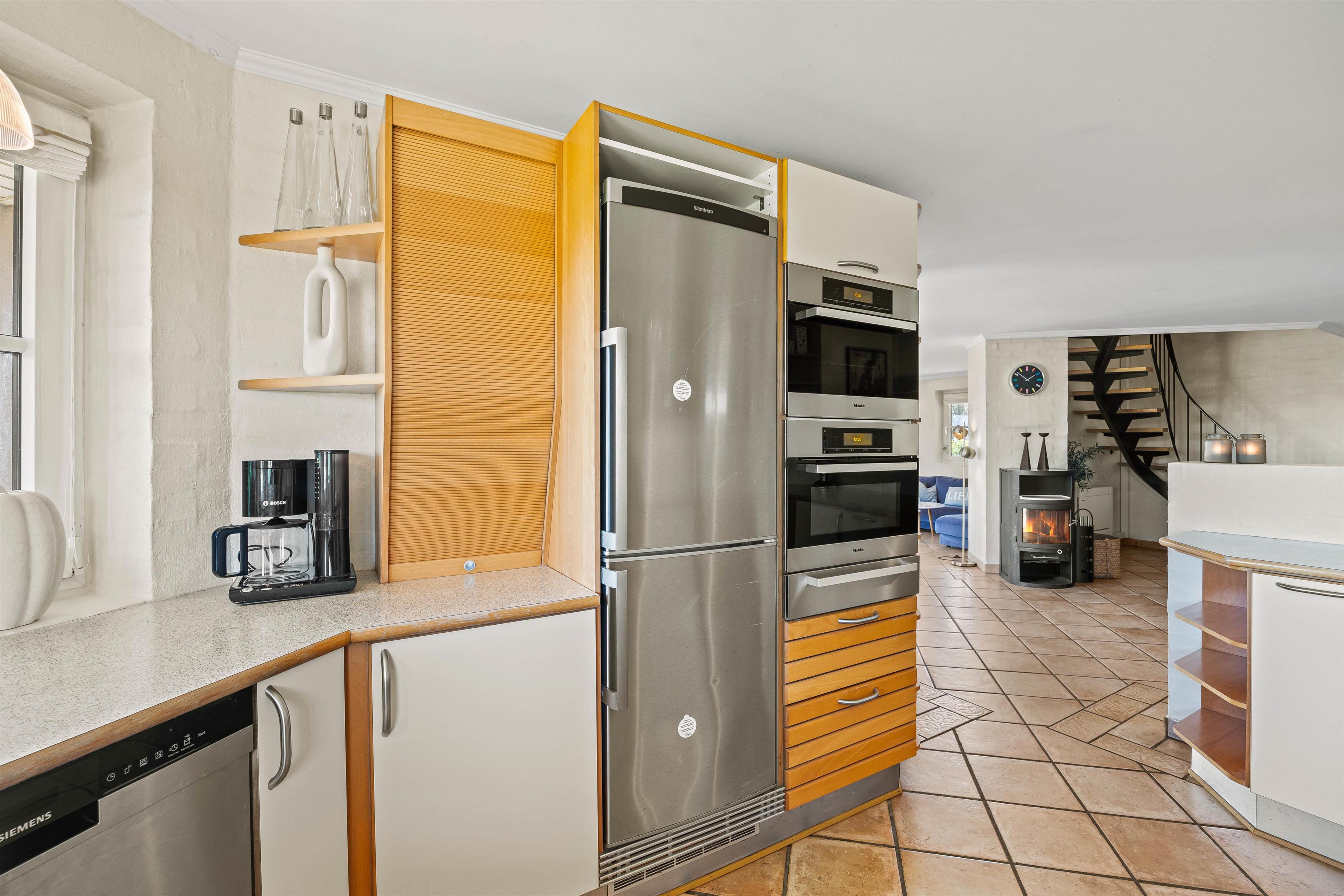 Her er alt, hvad I behøver, for at gøre jeres ophold behageligt. Sommerhuset er udstyret med både opvaskemaskine og vaskemaskine, og på kølige dage kan I hygge foran den knitrende brændeovn samt gøre brug af den energibesparende varmepumpe.
