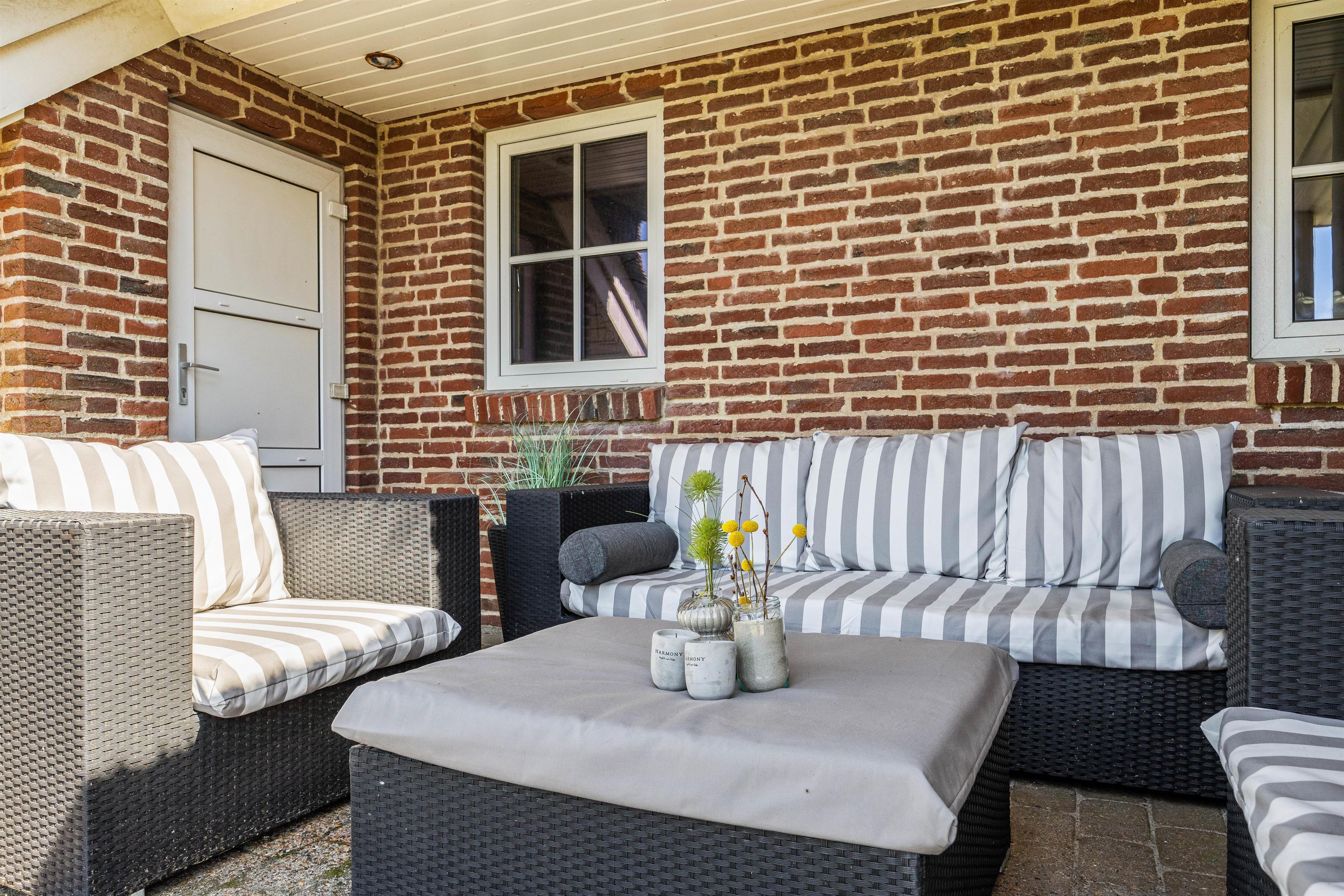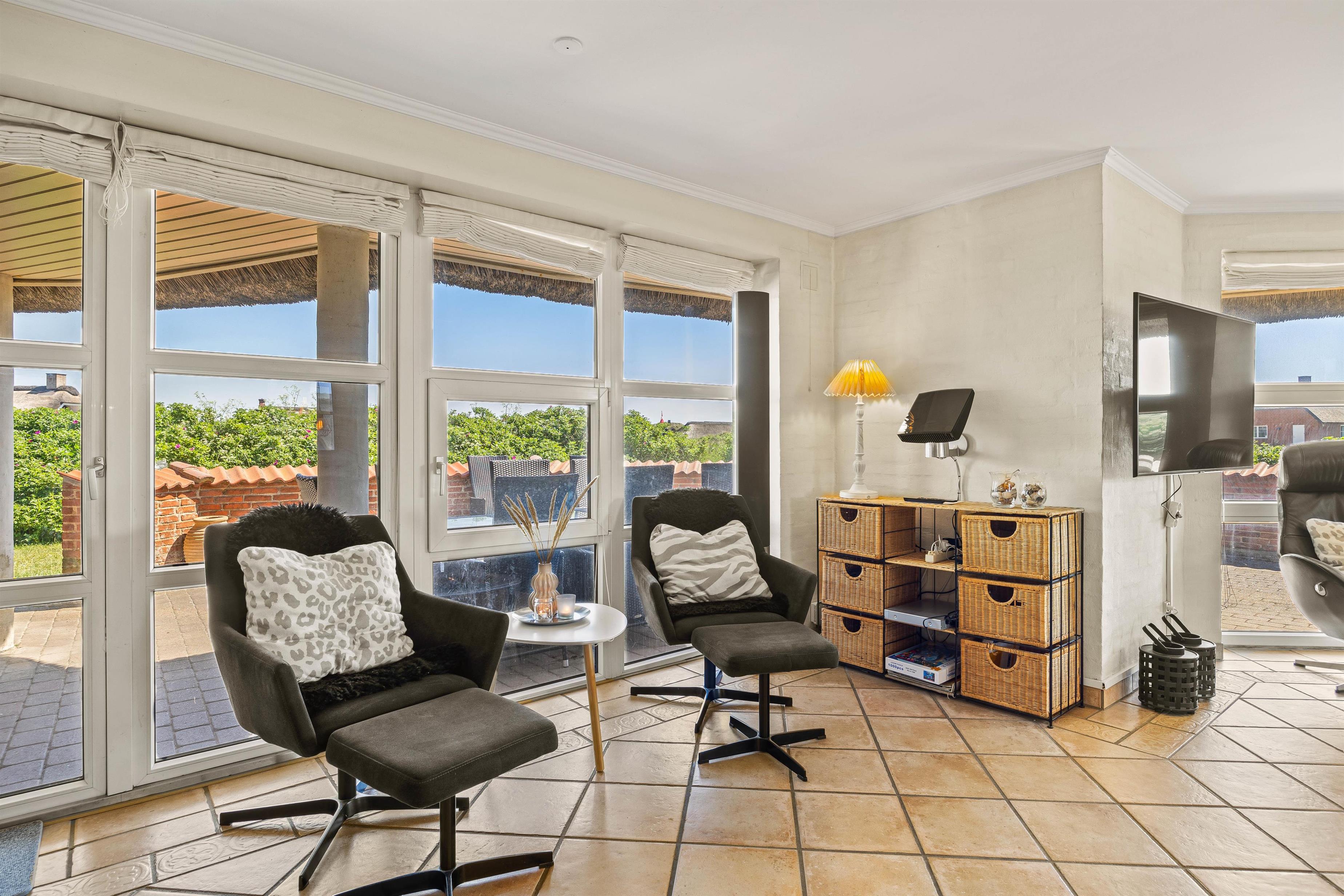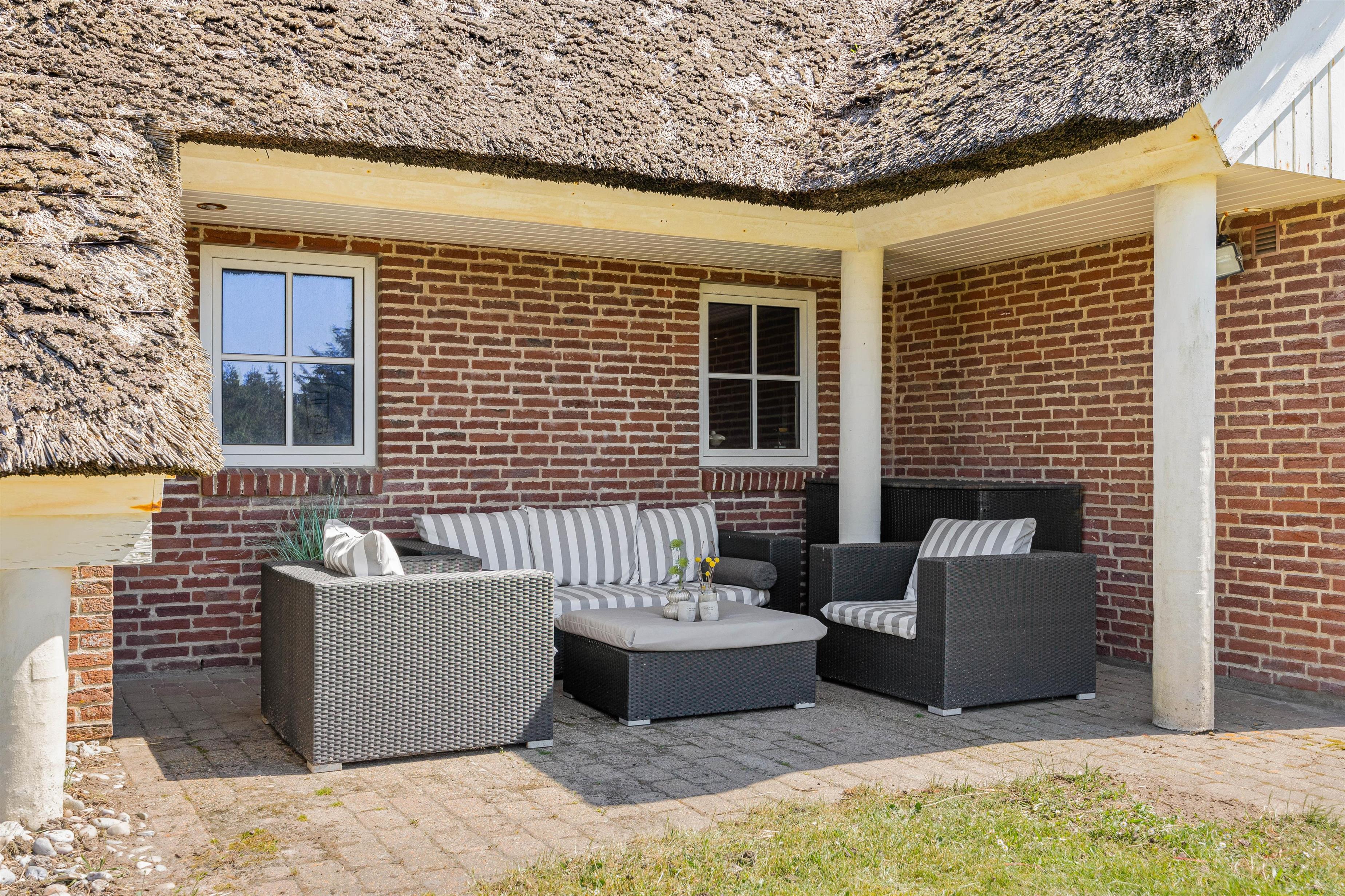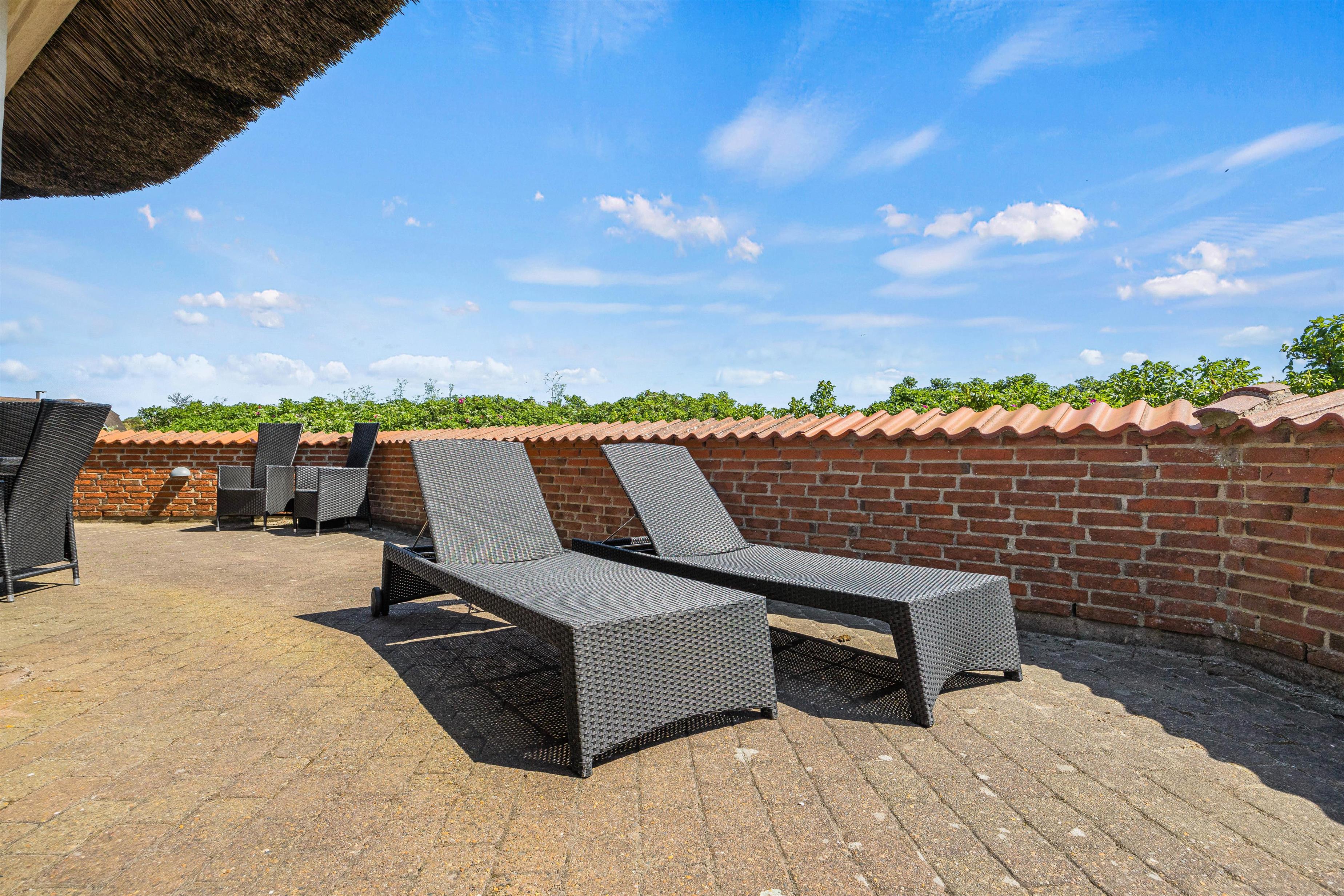 Mens børnene leger, kan de voksne slappe af på terrassen med et godt glas vin! Her kan I alle holde de hyggeligste grillaftner, slappe af i solen og planlægge morgendagens program. Med havet som nabo er gåtur langs vandet altid inden for rækkevidde – måske I skal slutte aftenen af med at se den maleriske solnedgang?