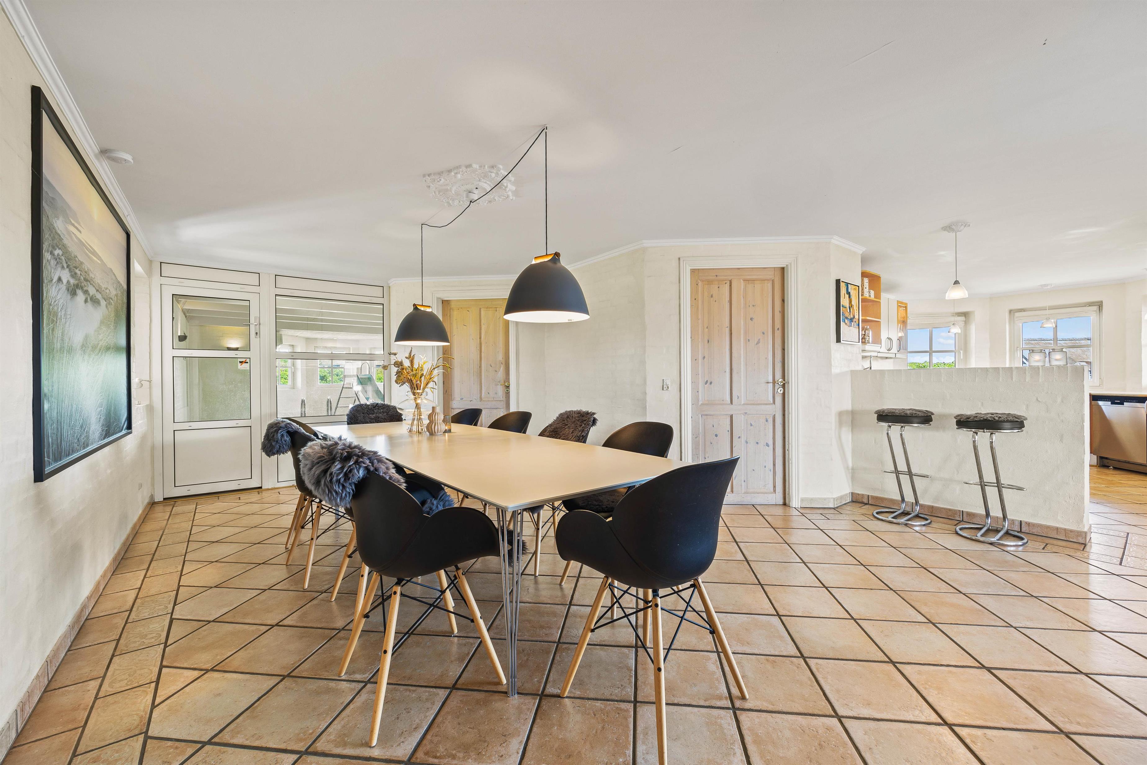Feriehuset i Blåvand tilbyder med sine 250 m2 masser af plads til den store familie. De to sovepladser er fordelt rundt på 5 fine soveværelser – alle rummelige og udstyret med dobbeltsenge. Sommerhuset er derfor et oplagt valg til de store familieferier eller ferie med vennerne. Her er de firbenede venner også velkomne!