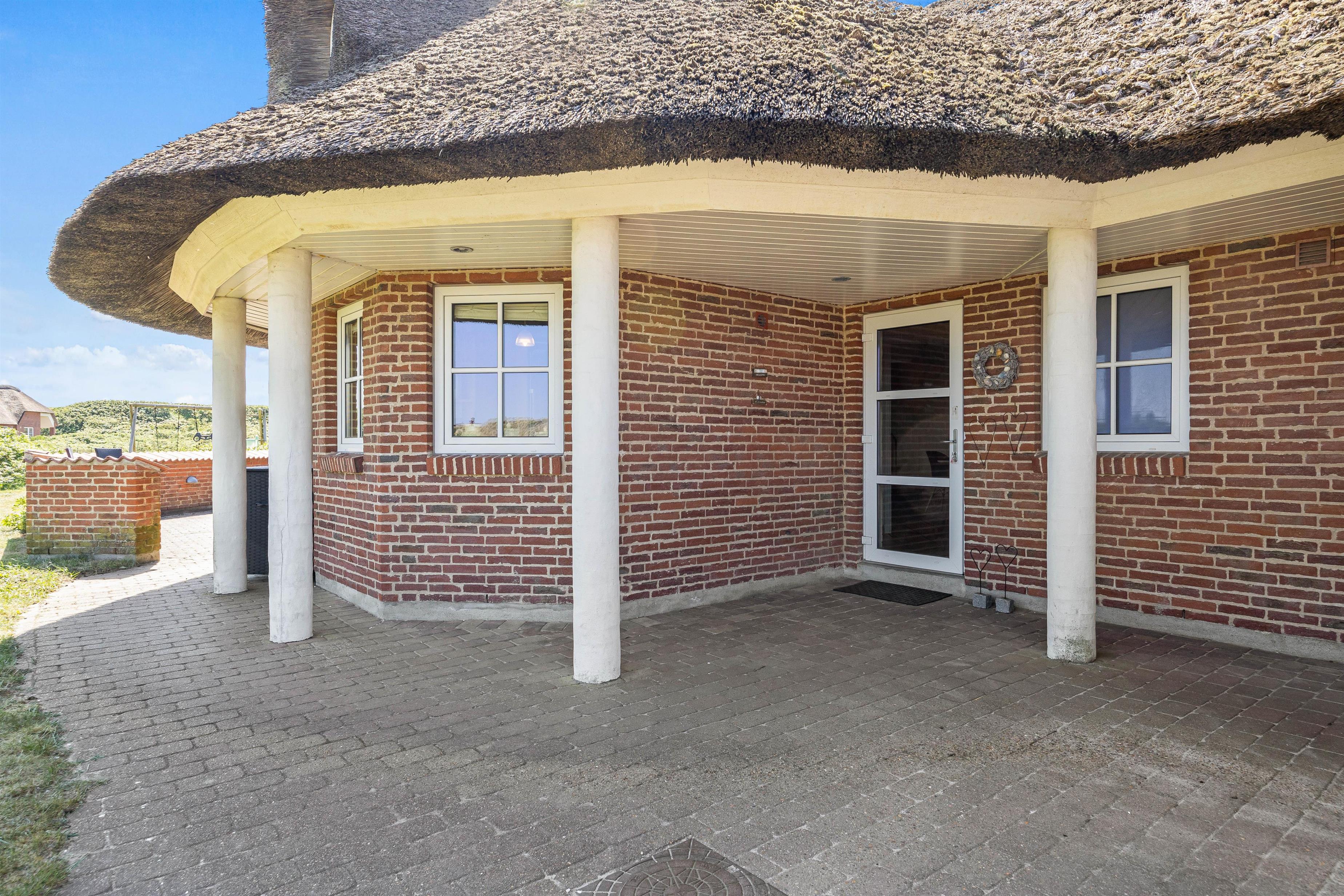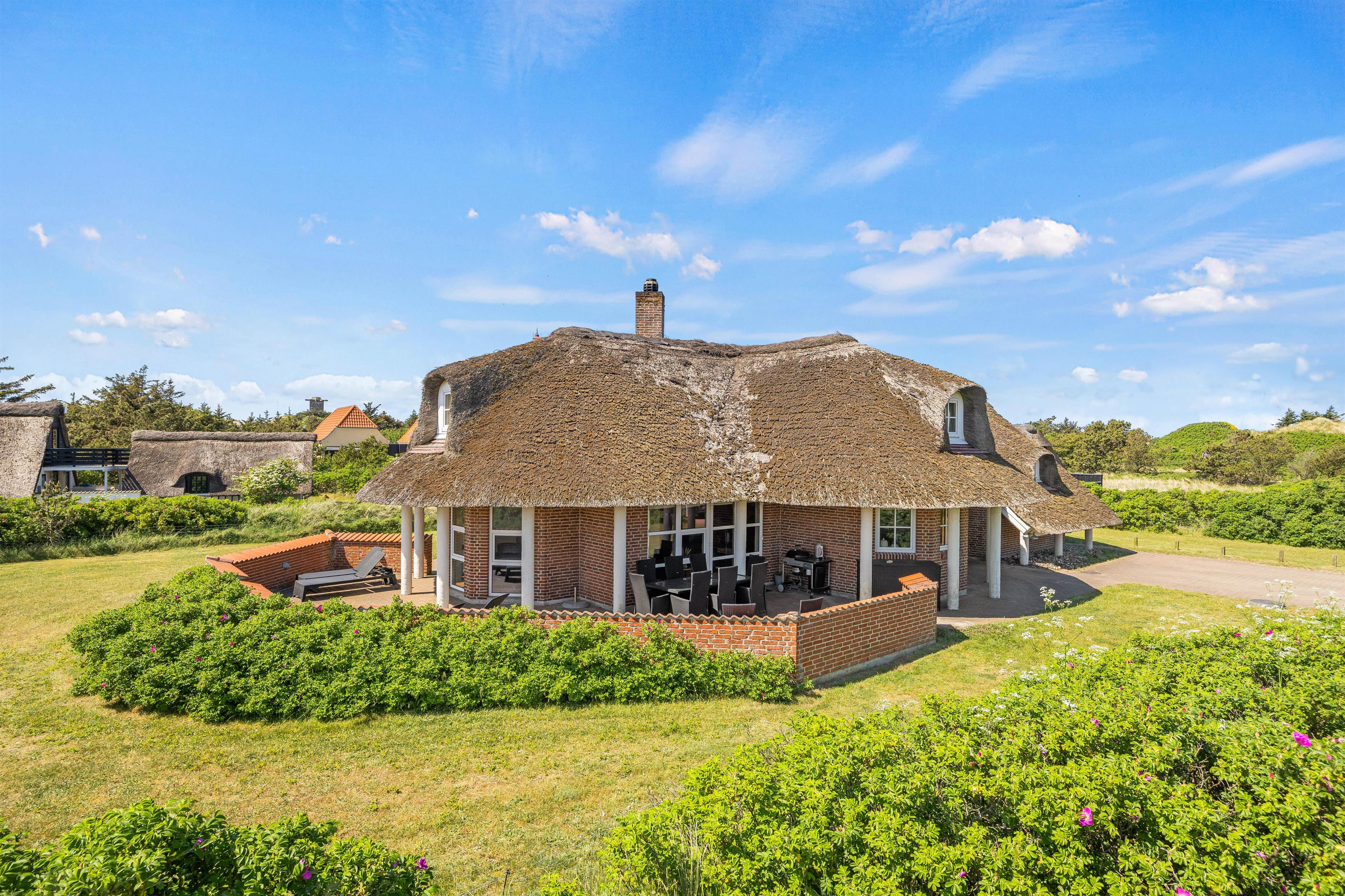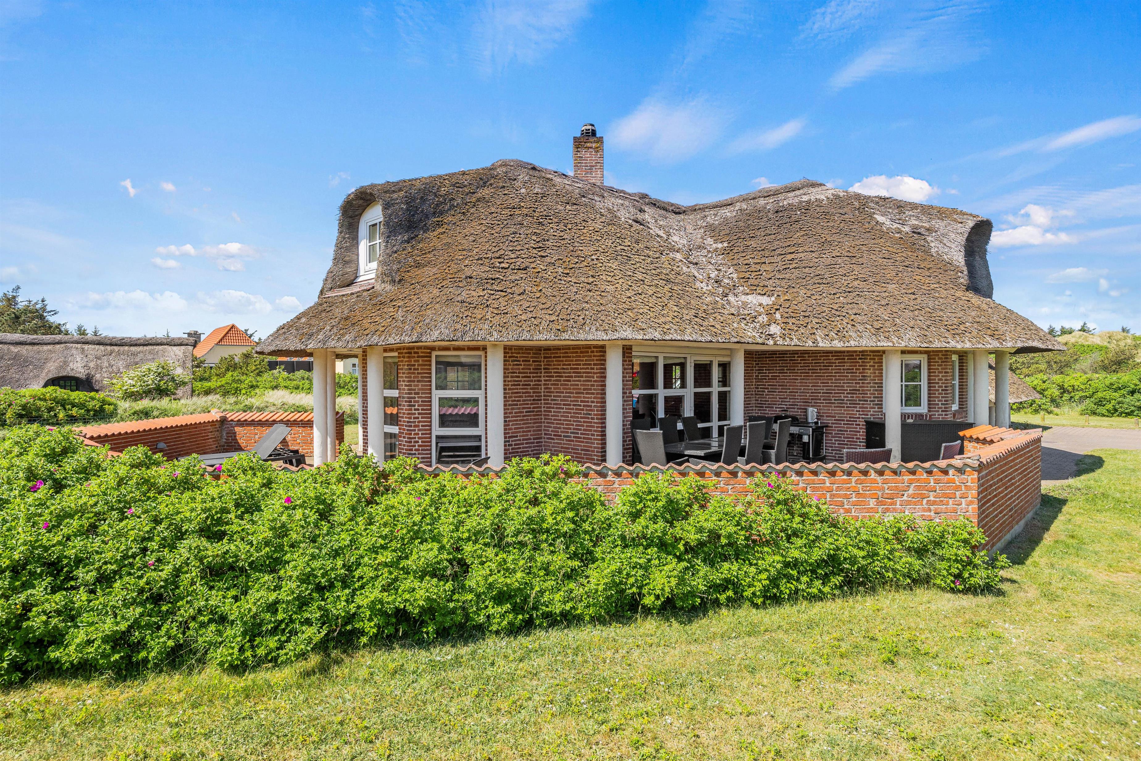 Små 100 meter fra Blåvands pragtfulde badestrand, finder I dette fine, stråtækte sommerhus. Et dejligt sommerhus med swimmingpool, i to plan og med plads til 10 personer – ideelt når den store familie skal samles. Udover swimmingpool er her også spa, sauna og en skøn have, der er fyldt med hyggelige kroge – hjertelig velkommen!