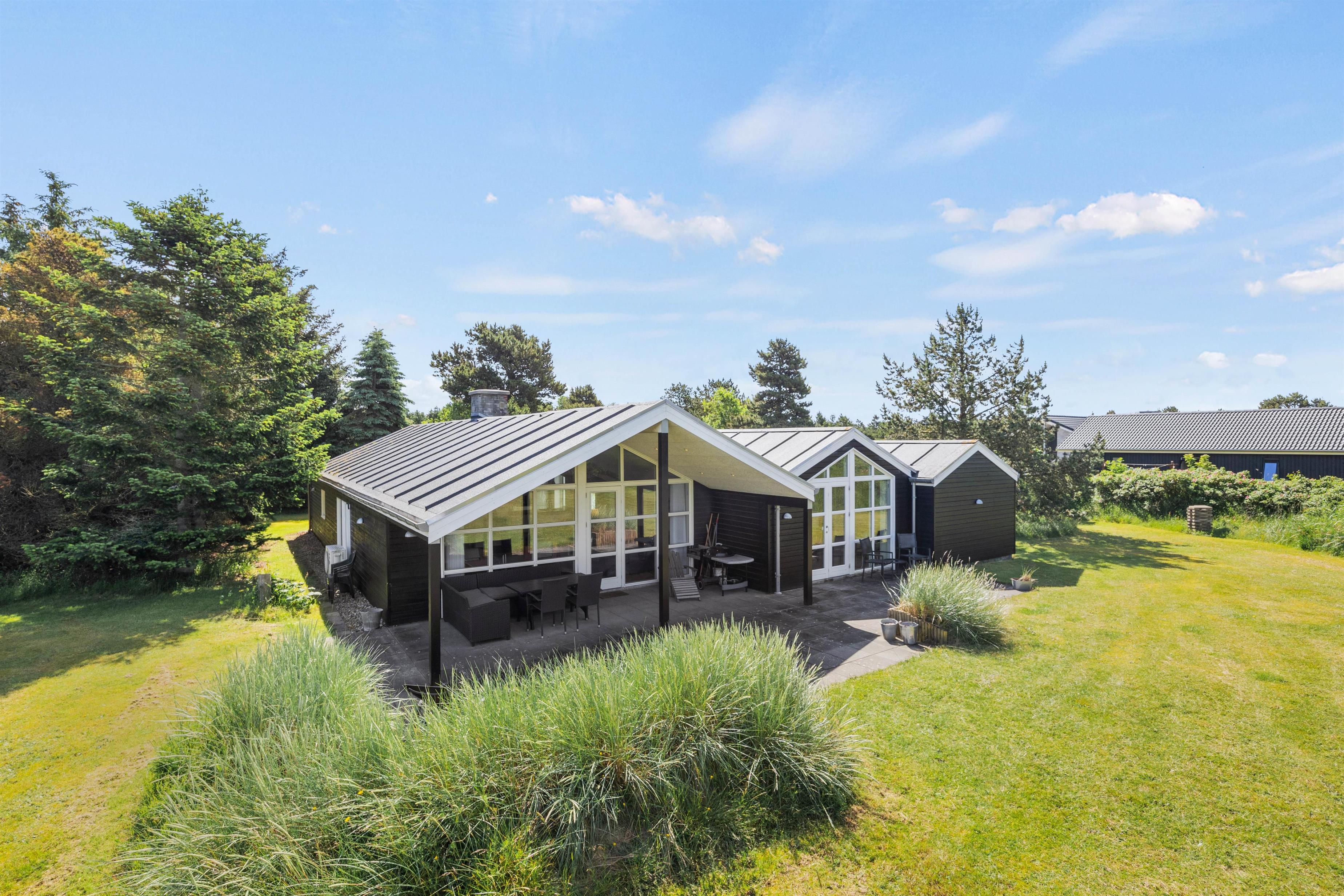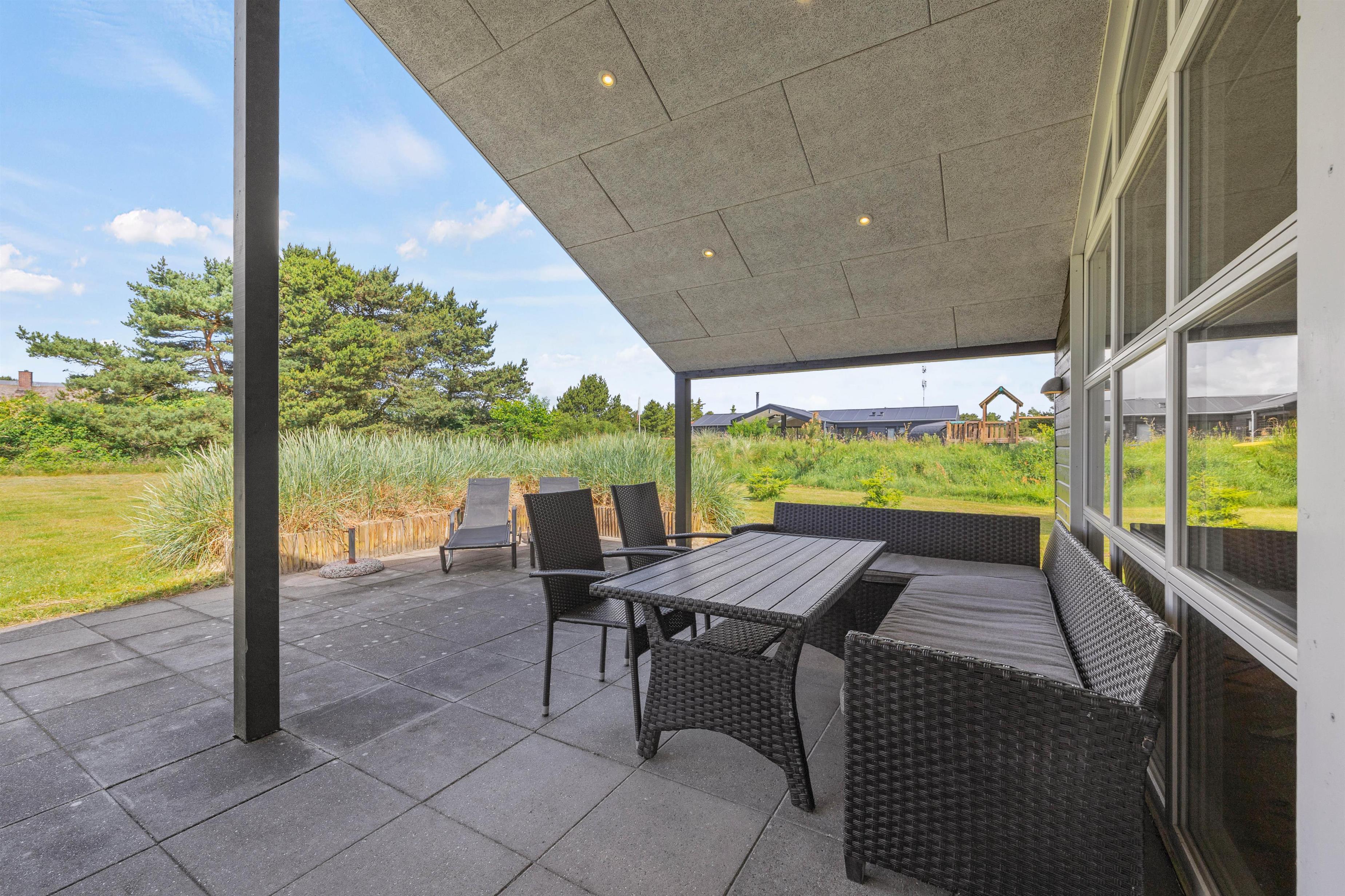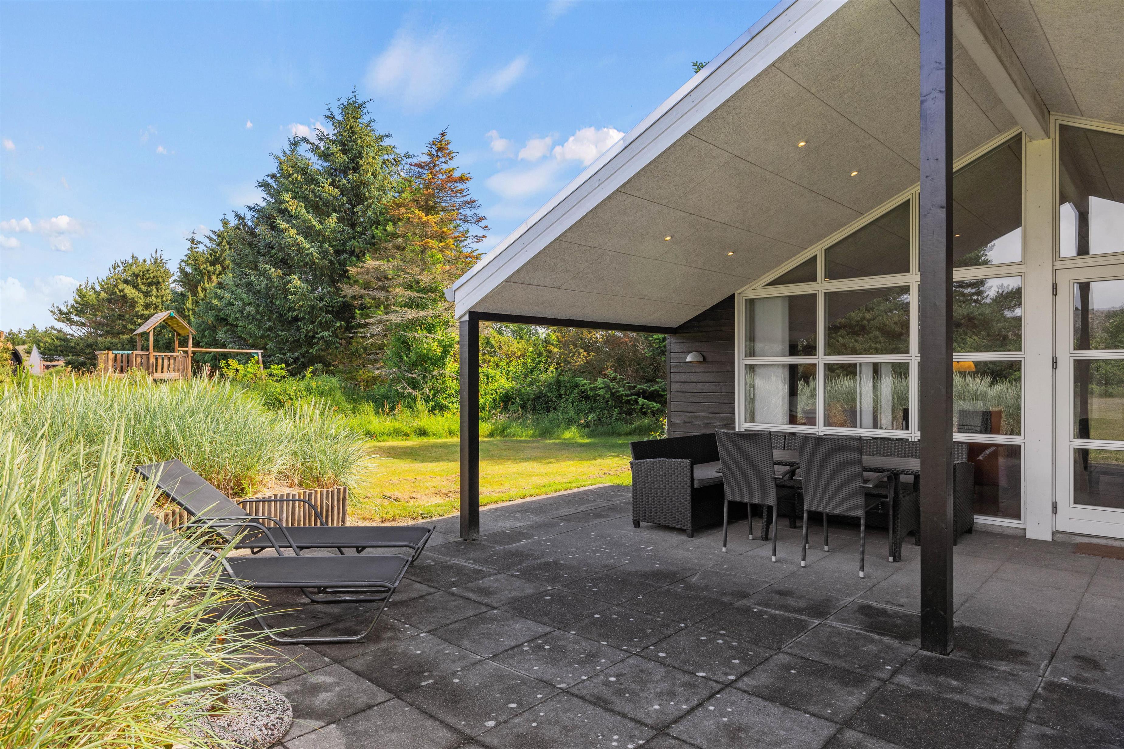 Sommerhuset i Blåvand råder over en 2660 m² stor grund, der giver dig og din familie eller venner masser af plads til leg og afslapning. Børnene kan glæde sig over gyngen og sandkassen, mens I nyder den friske luft og måske en god kop kaffe på den afskærmede terrasse. Til hyggelige udendørs middage står en grill til rådighed, og den overdækkede terrasse beskytter jer ved vejrskift og tilbyder desuden et dejligt sted at slappe af og lade batterierne op igen.