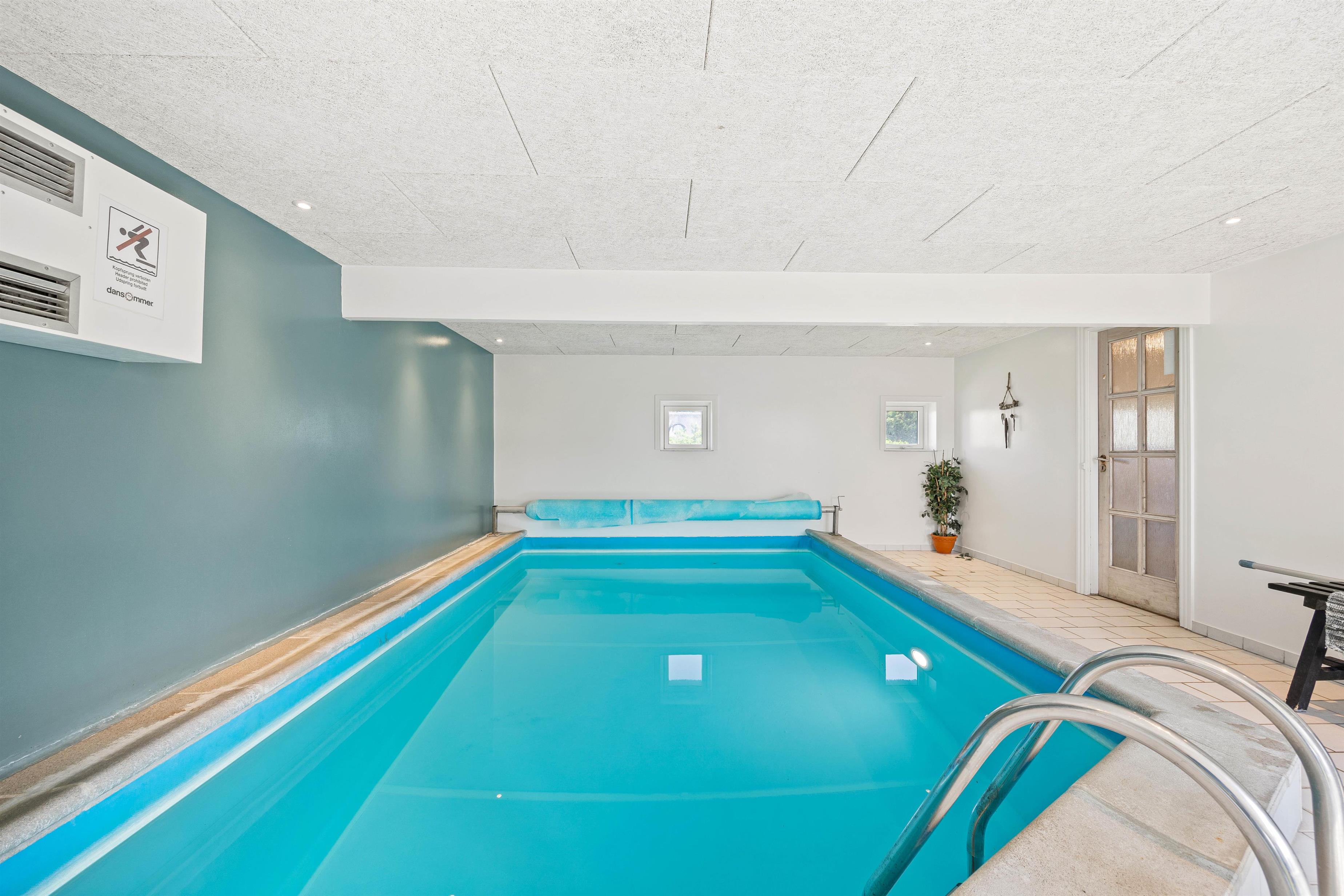 Et af sommerhusets absolutte highlights er poolområdet, hvor både små og store vandhunde kan hygge sig uanset vejr og årstid. Poolområdet ligger i forlængelse af sommerhusets badeværelse med gulvvarme. Her er der både spabad og sauna, så I rigtig kan få slappet af i løbet af ferien.
