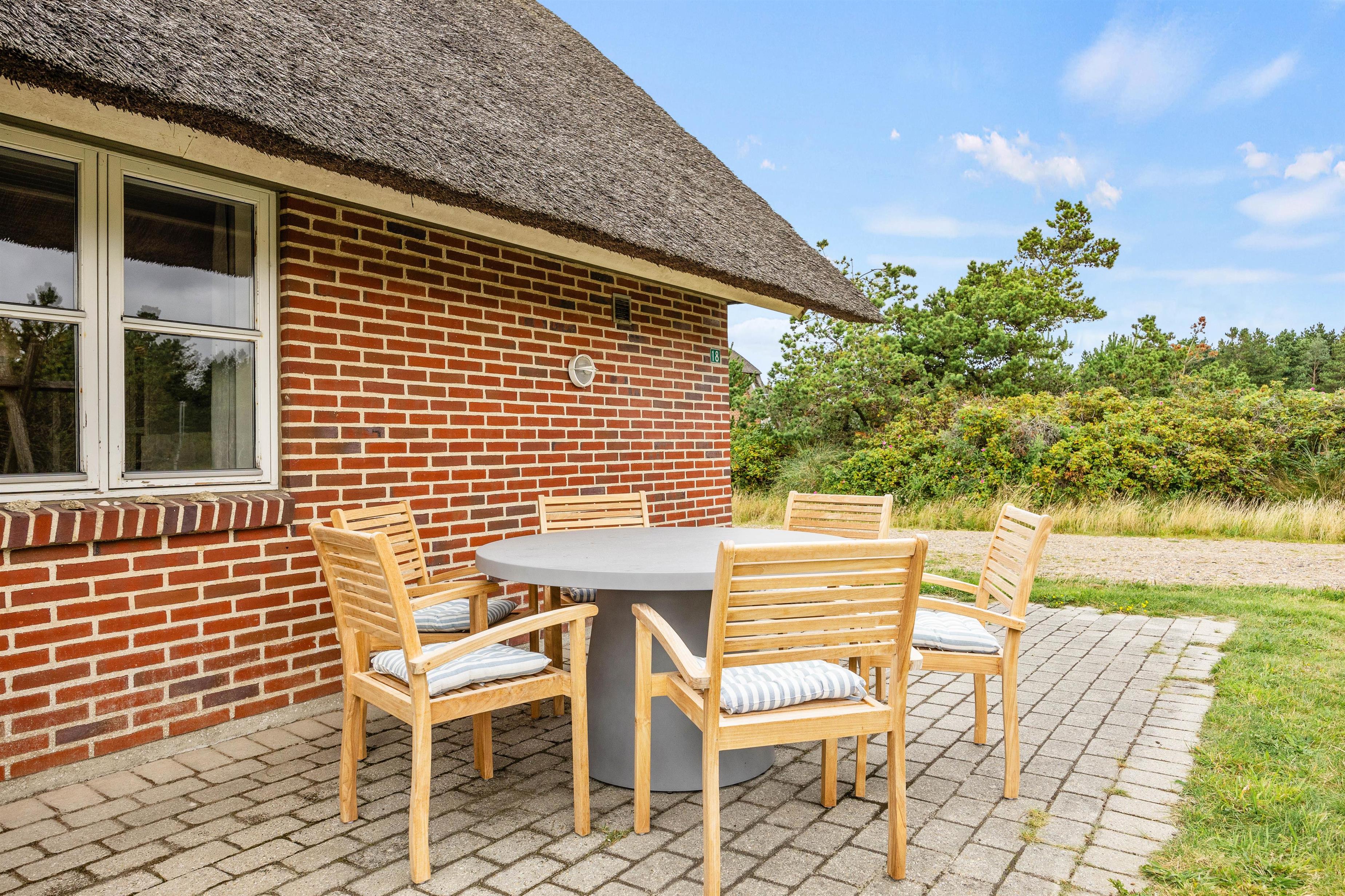 Sommerhuset på Per Knoldsvej 18 ligger i Blåvand, og herfra har I kun 550 meter til vandet. Området indbyder til lange gåture i de hyggelige omgivelser.