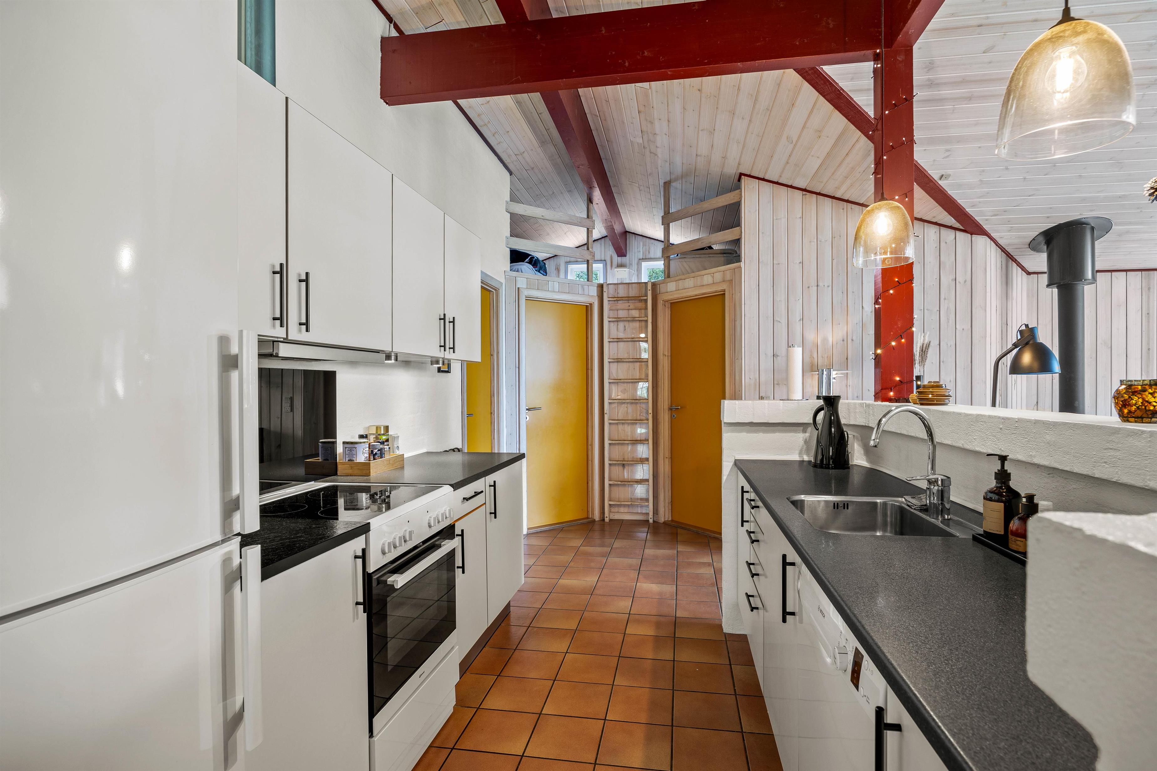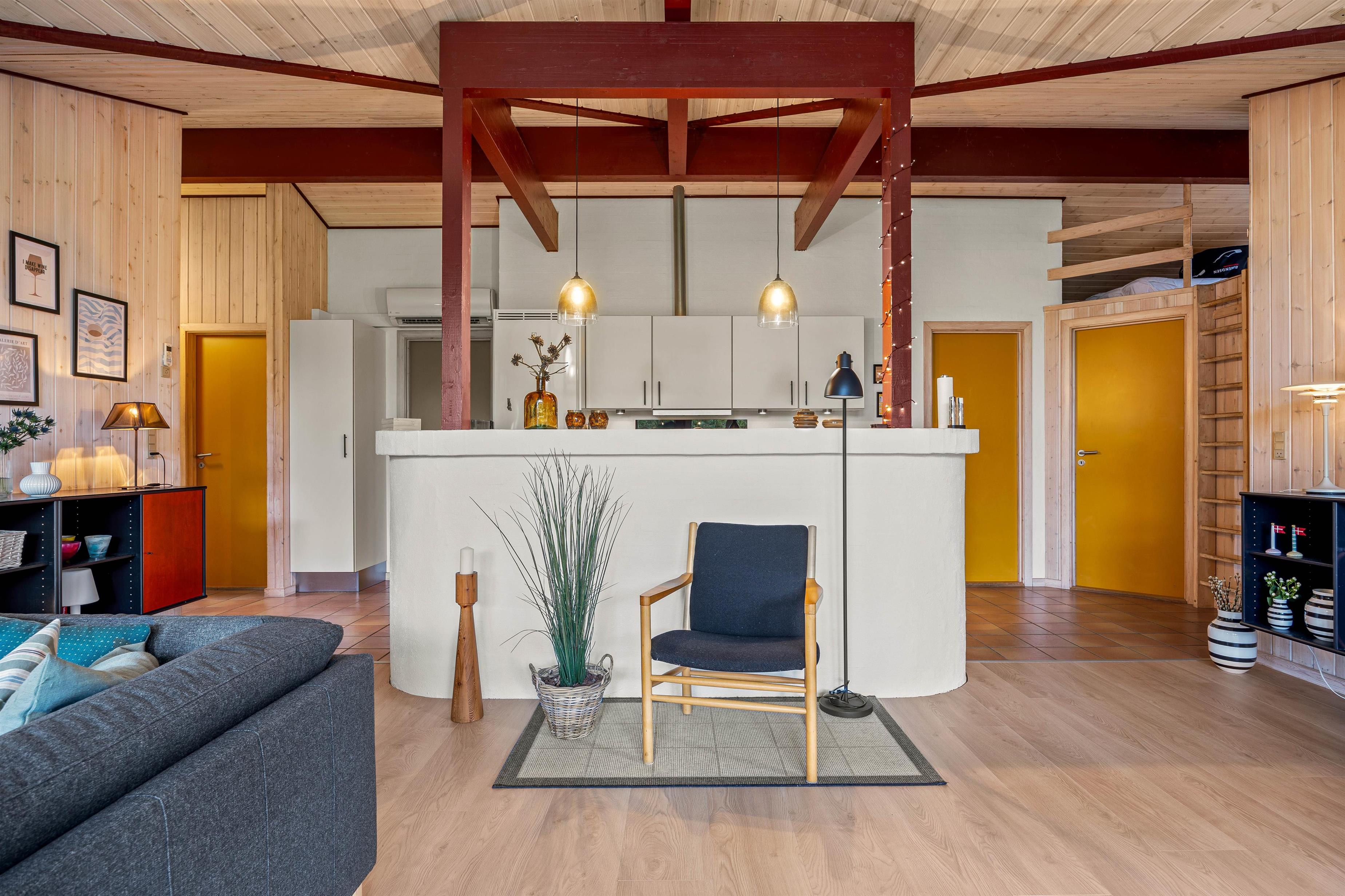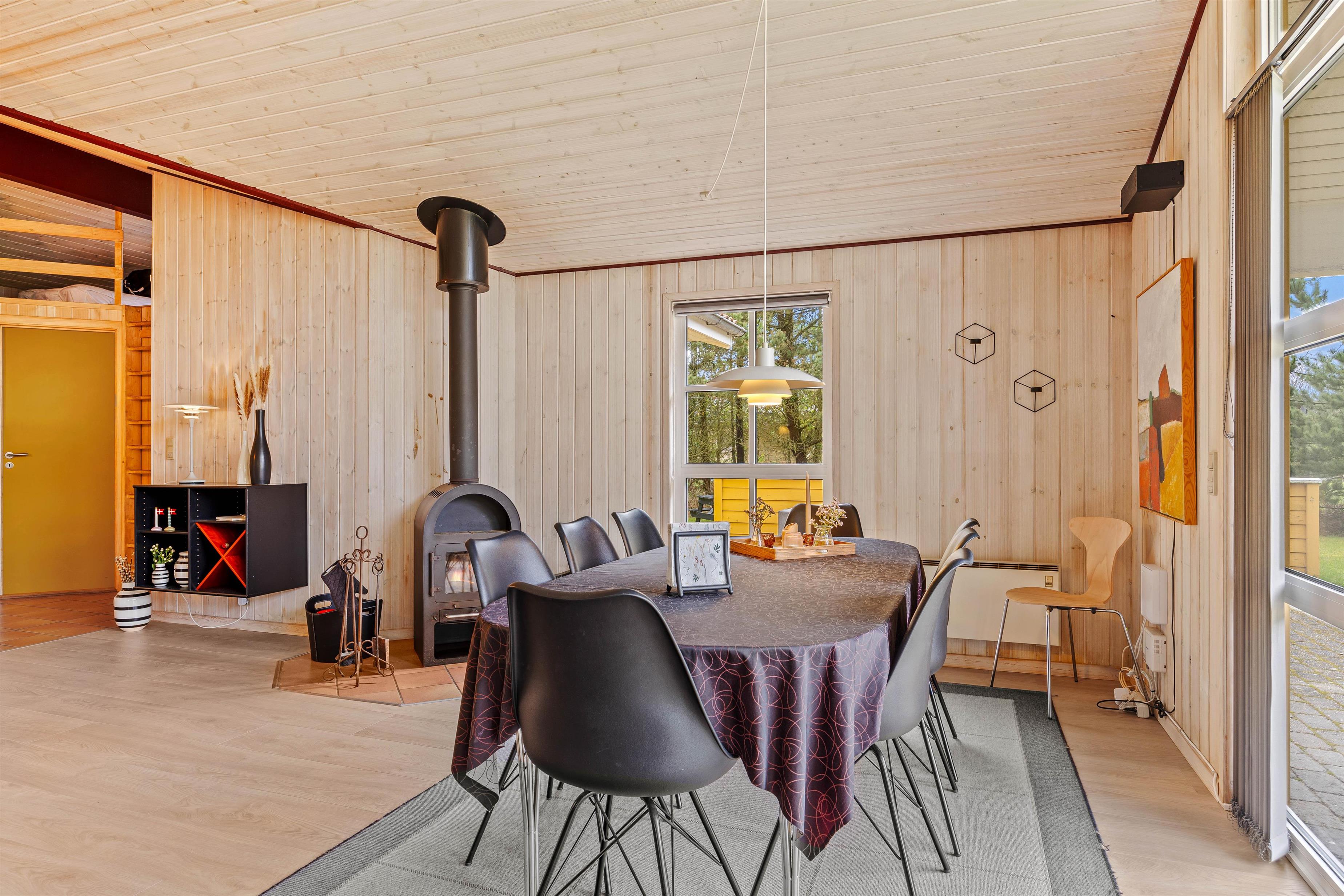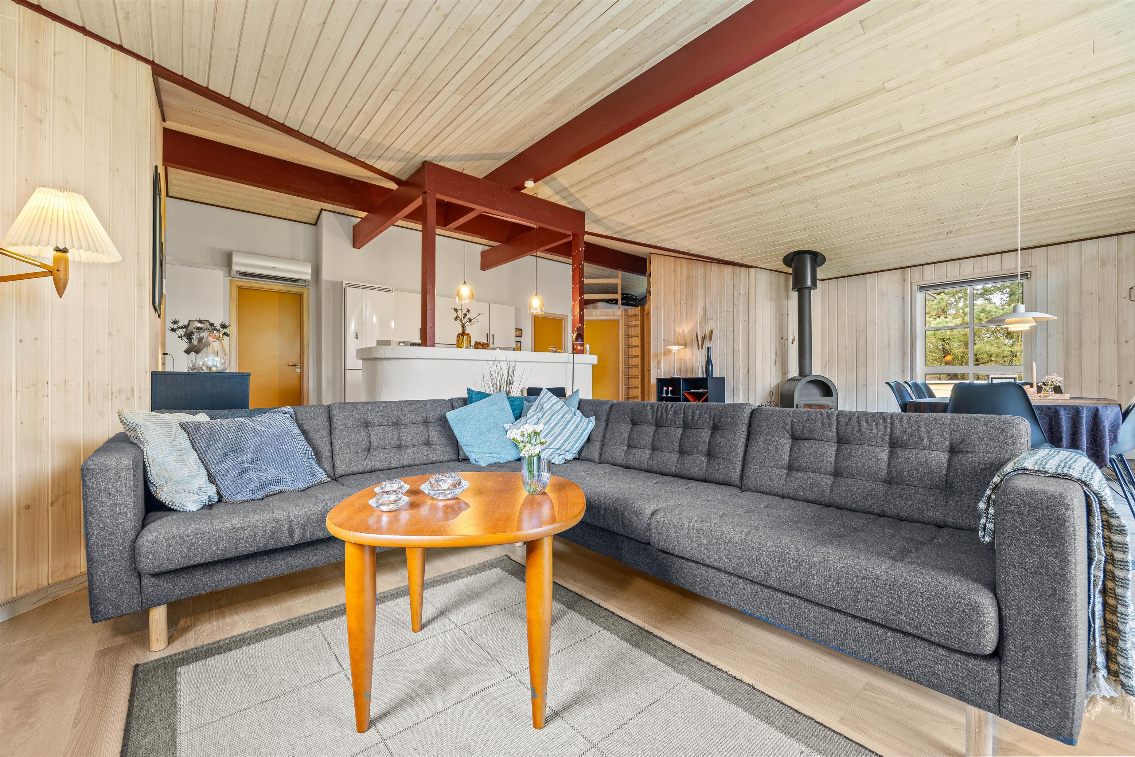 Feriehuset er er lyst og lækkert med et stort opholdsrum med brændeovn og god plads til, at hele familien kan samle sig om det ovale spisebord eller i det hyggelige sofahjørne. Køkkenet har en opvaskemaskine og de 2 badeværelser er indrettet med vaskemaskine, tørretumbler, sauna og et stort spabad med plads til 5 personer. Der er derfor ingen tvivl om, at du vil føle dig godt tilpas i dette skønne sommerhus.