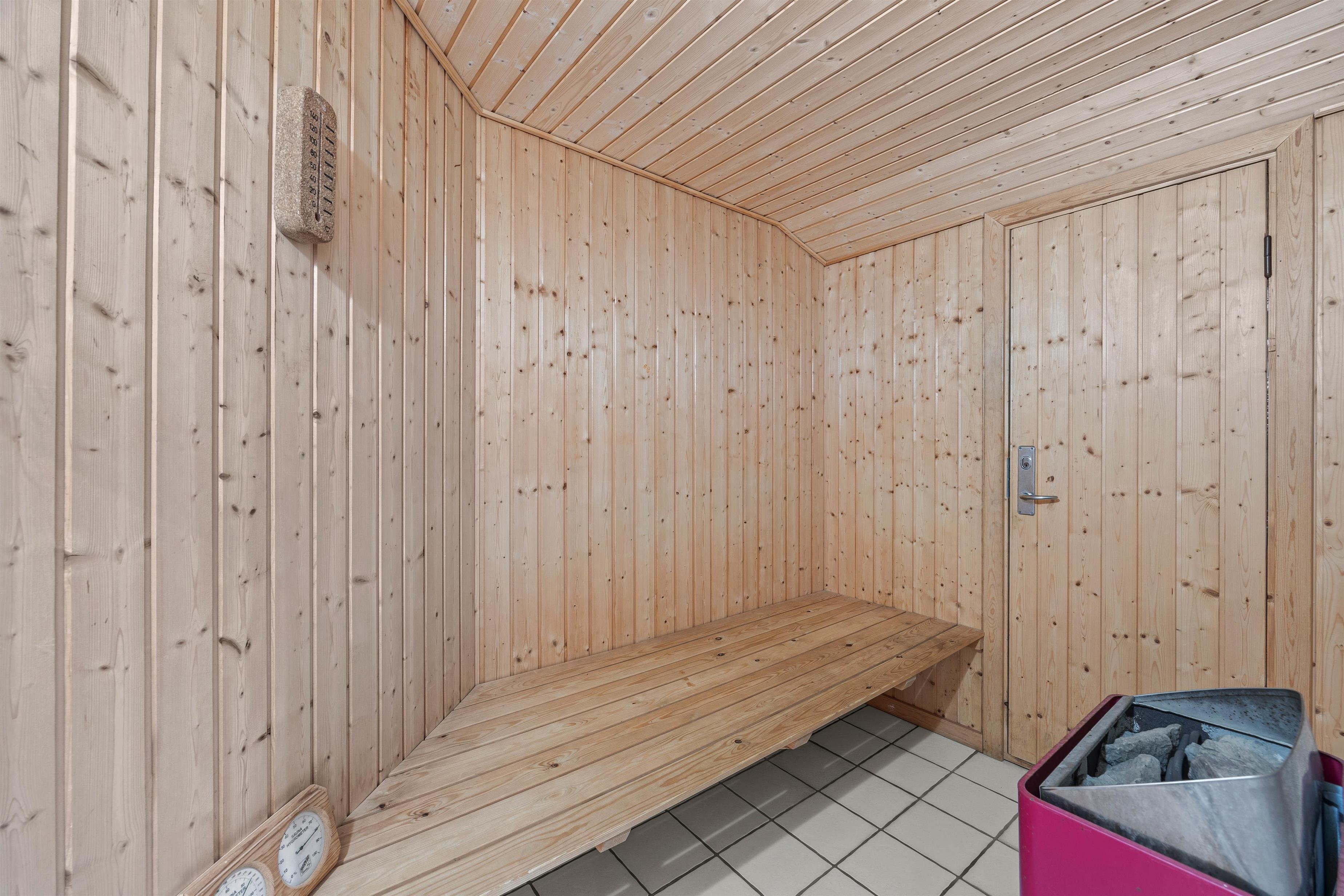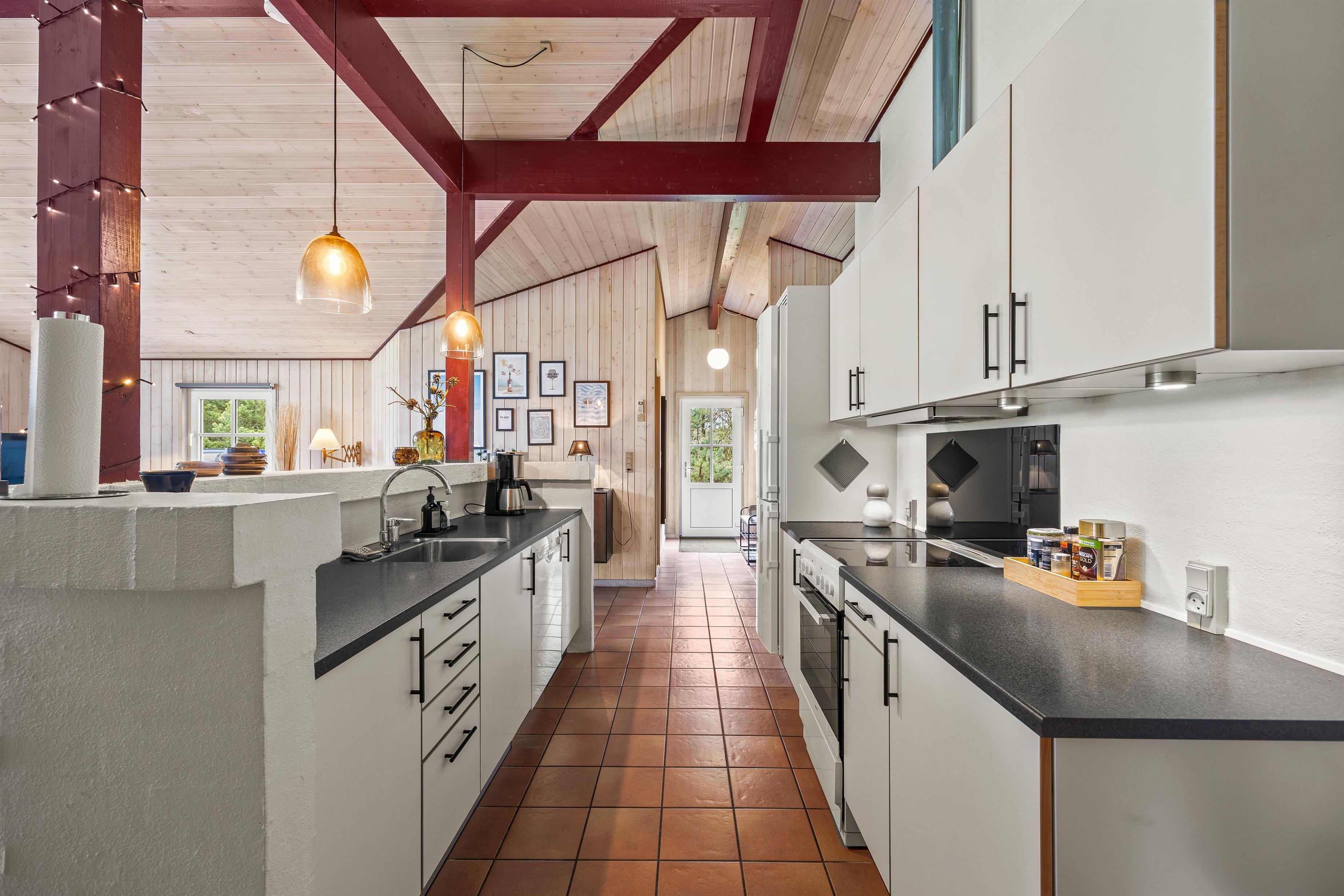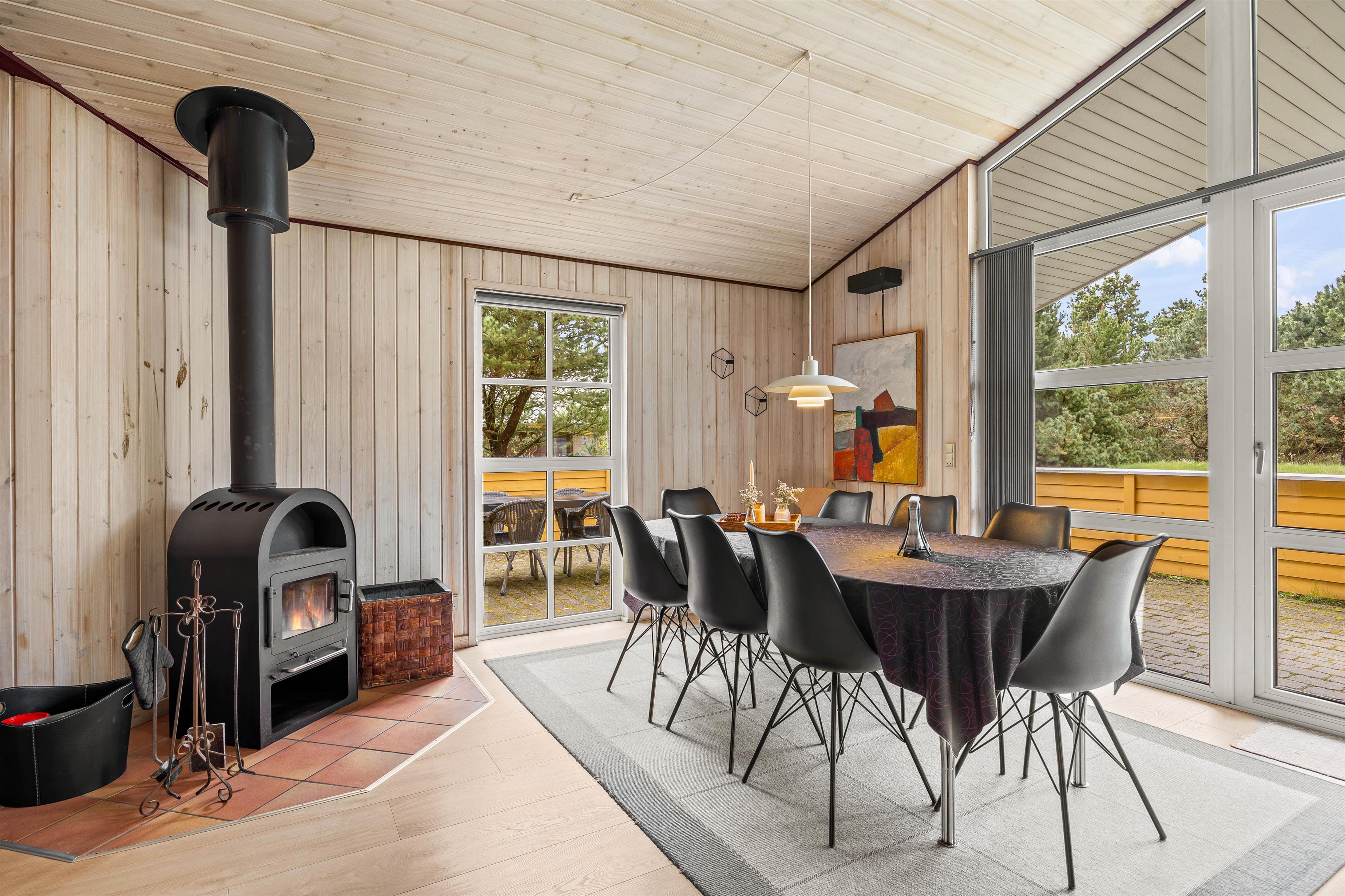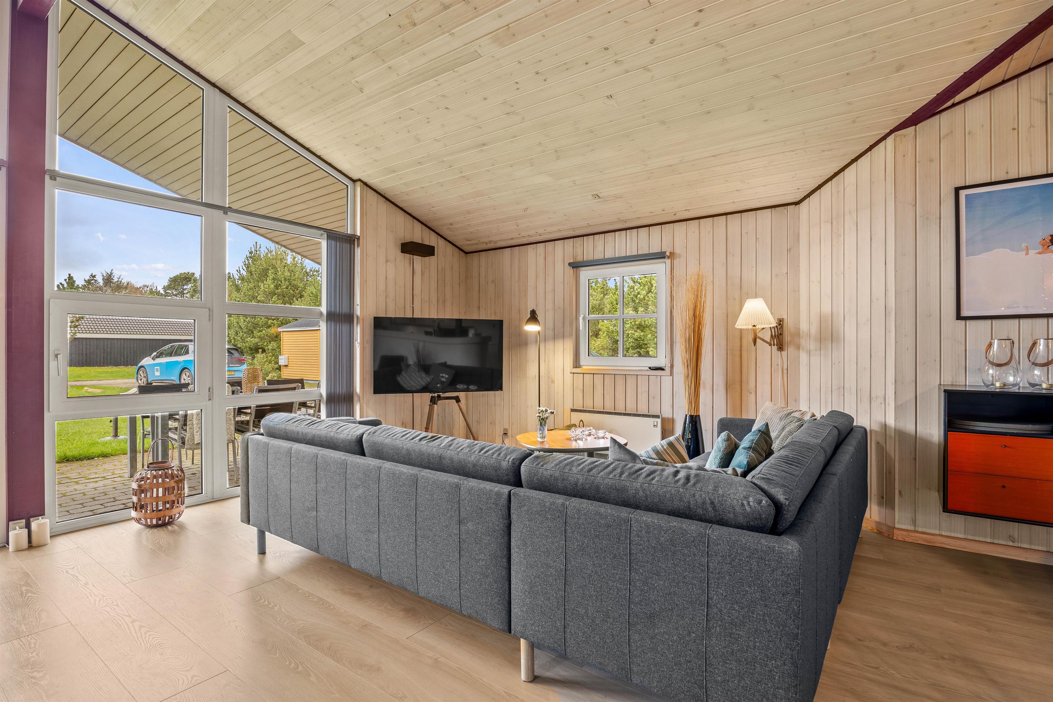 Feriehuset er er lyst og lækkert med et stort opholdsrum med brændeovn og god plads til, at hele familien kan samle sig om det ovale spisebord eller i det hyggelige sofahjørne. Køkkenet har en opvaskemaskine og de 2 badeværelser er indrettet med vaskemaskine, tørretumbler, sauna og et stort spabad med plads til 5 personer. Der er derfor ingen tvivl om, at du vil føle dig godt tilpas i dette skønne sommerhus.