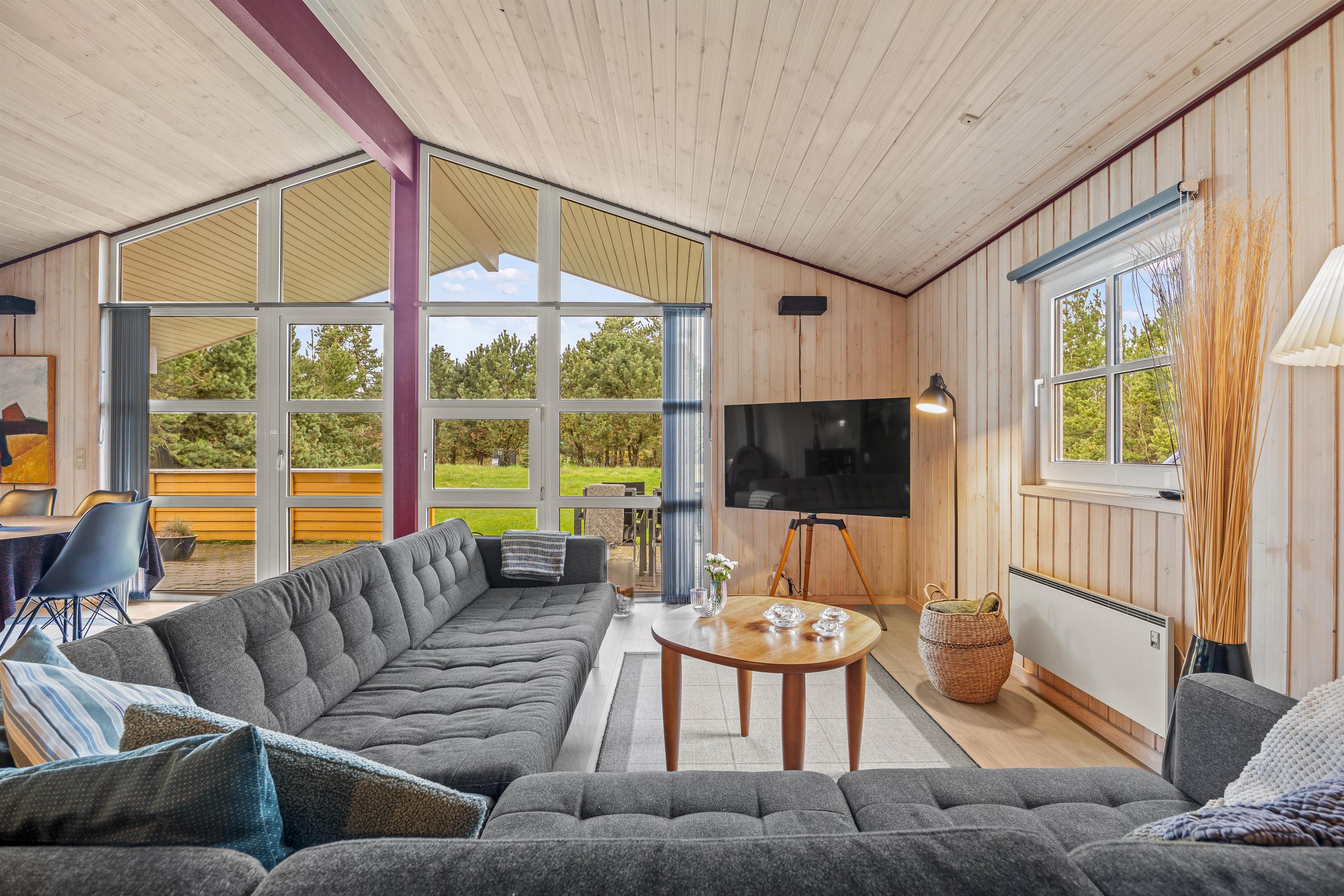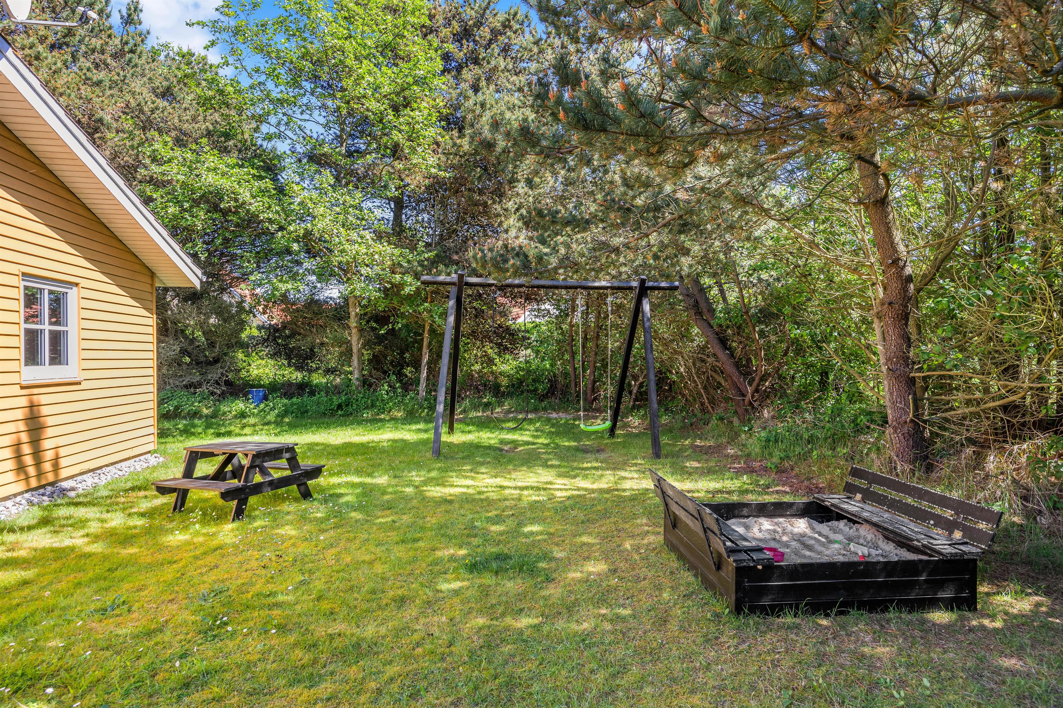 Der er gode havemøbler og liggestole, så du kan gøre dig komfortabel og lytte til vinden, mens børnene leger i haven, spiller bold eller tager en svingtur på gyngerne. Somme tider vil du opleve mågerne svæve højt over dig, fordi sommerhuset ligger tæt på Vesterhavet.