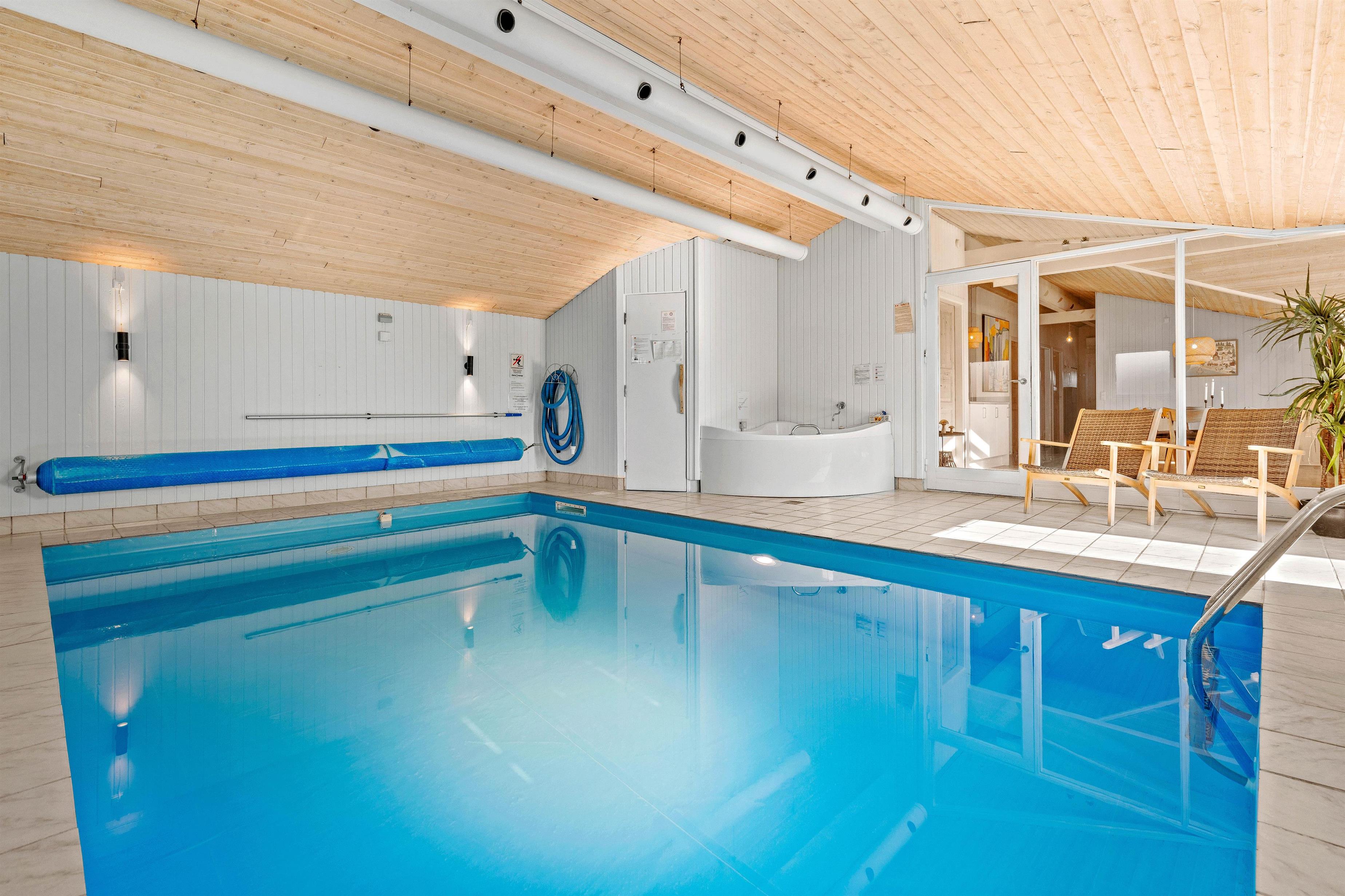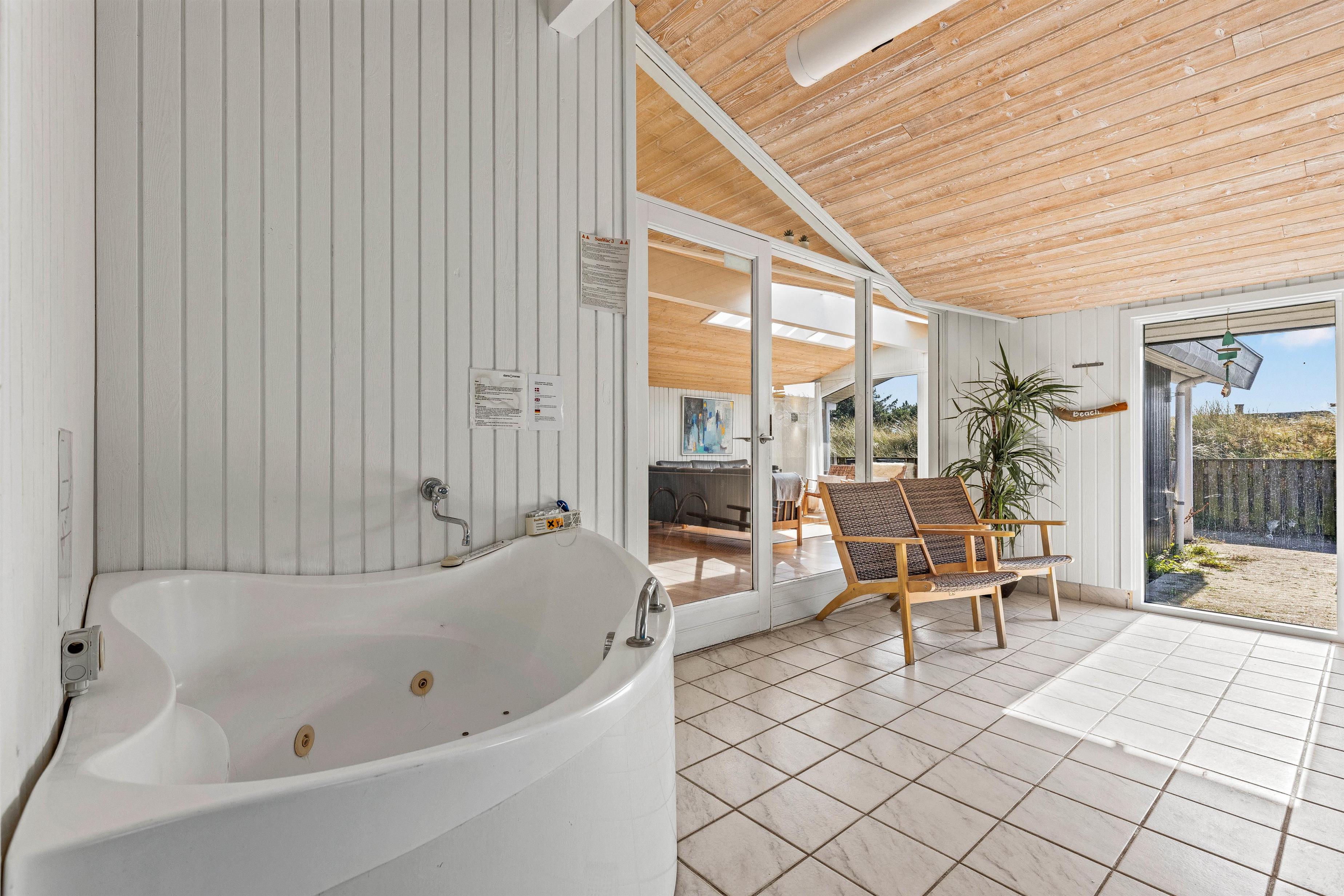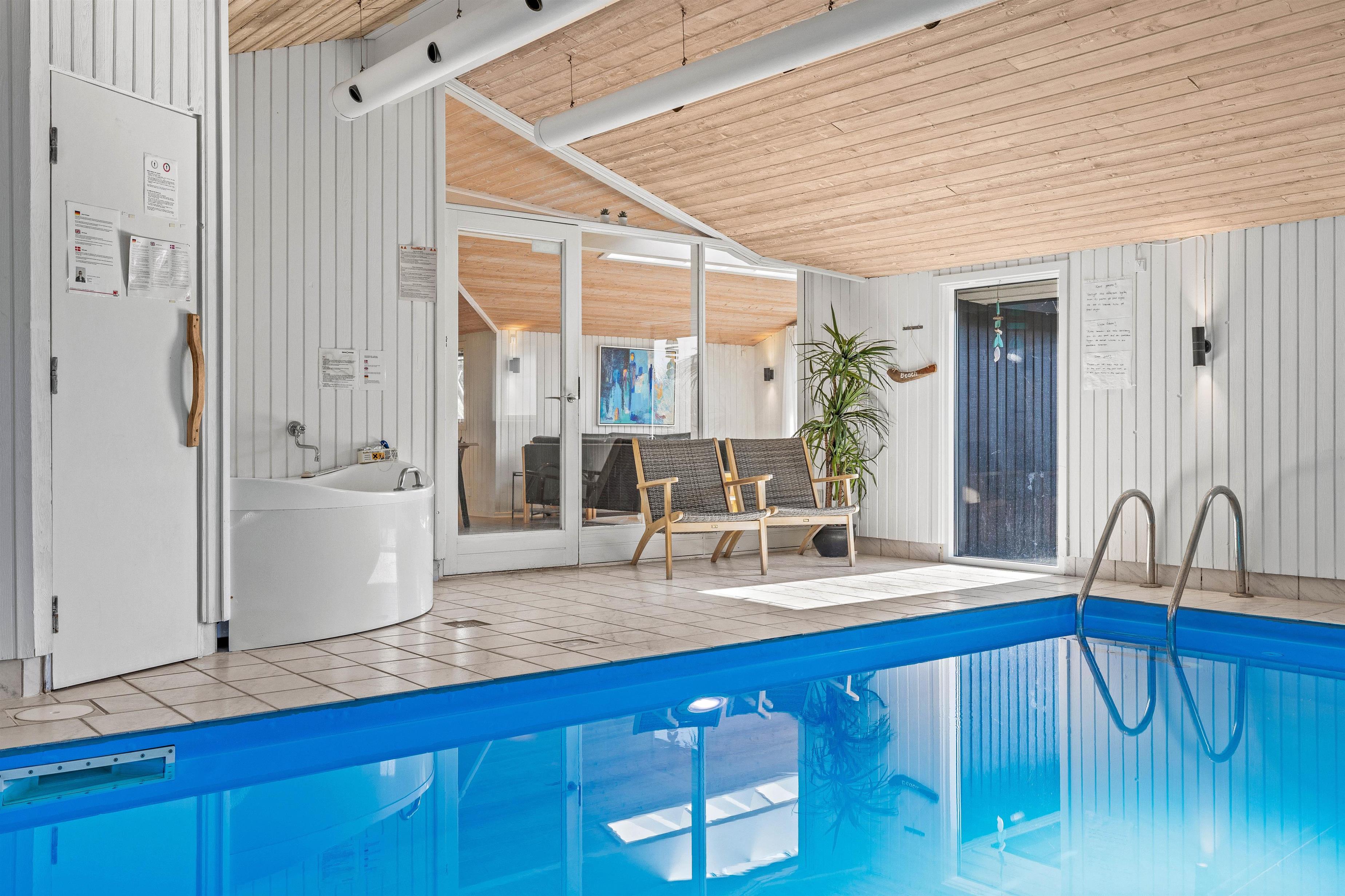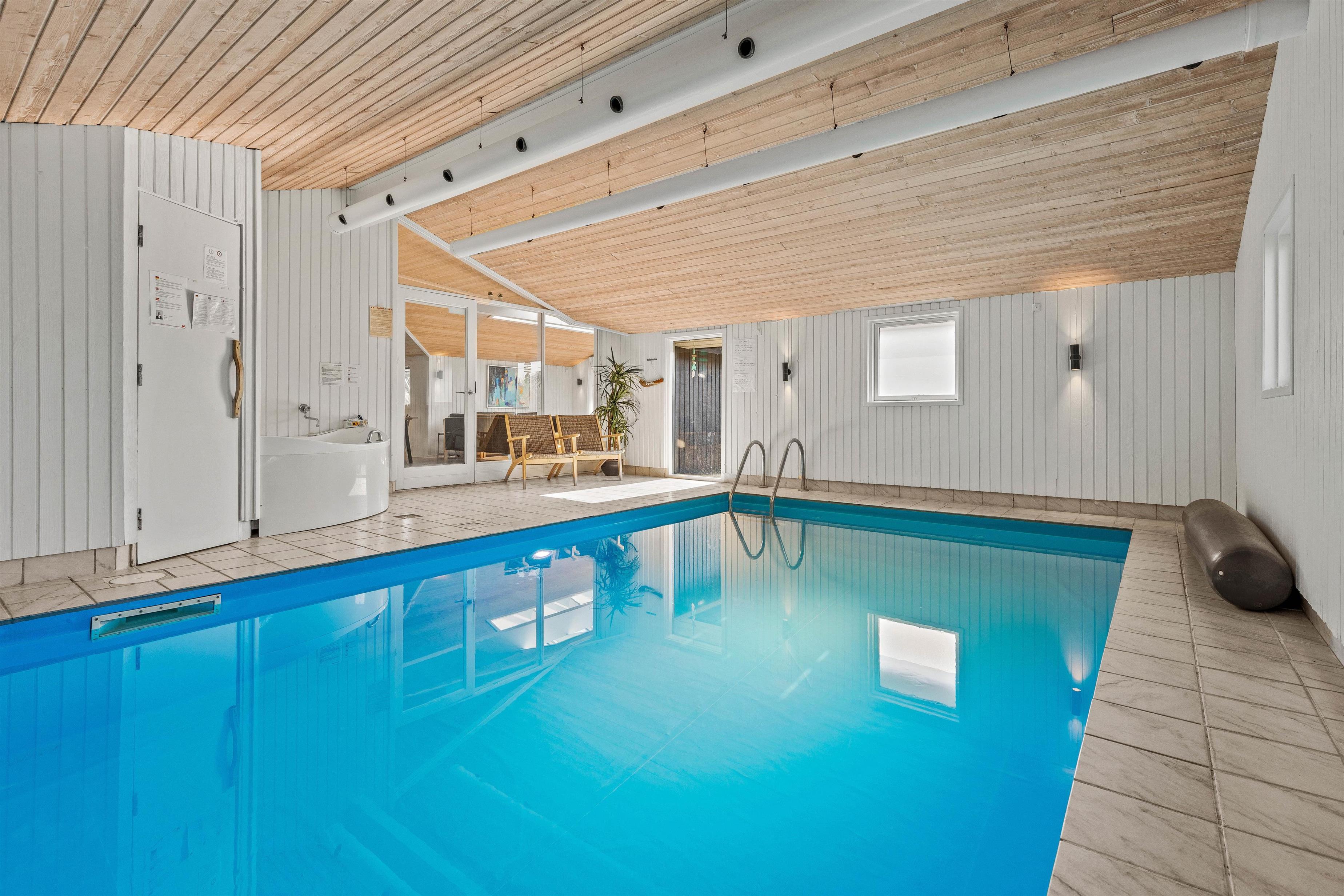 Hjertelig velkommen til dette fine sommerhus på Sydslugen 19. Et lyst og rummeligt feriehus på 165 m2, hvor I er lovet mange skønne timer i poolrummet med adgang til det åbne køkkenalrum. En lille wellness afdeling med 15 m2 swimmingpool, et stort boblebad og sauna – her er bestemt noget både for voksne og børn. Her er mulighed for timevis af sjov og vandplaskeri i alt slags vejr.