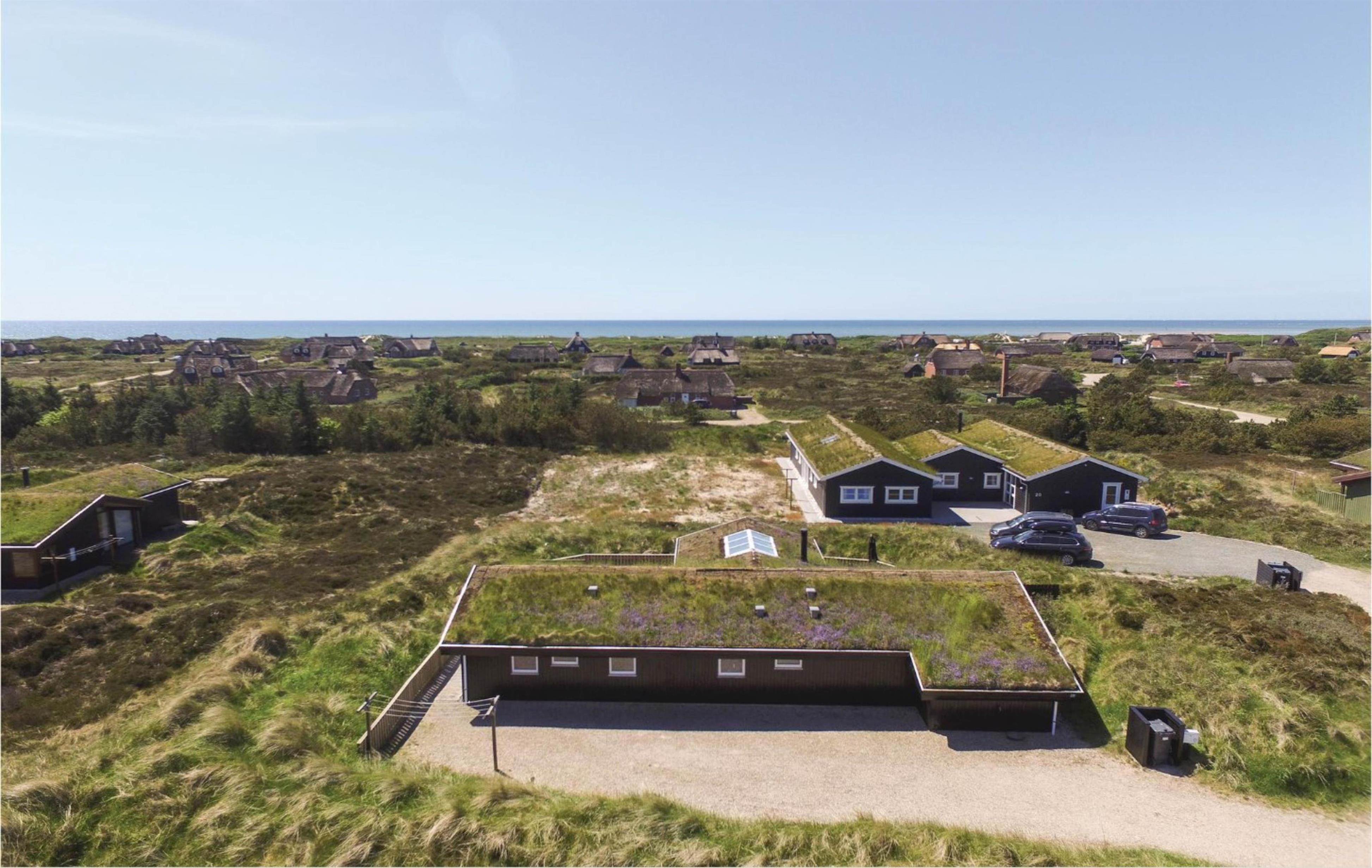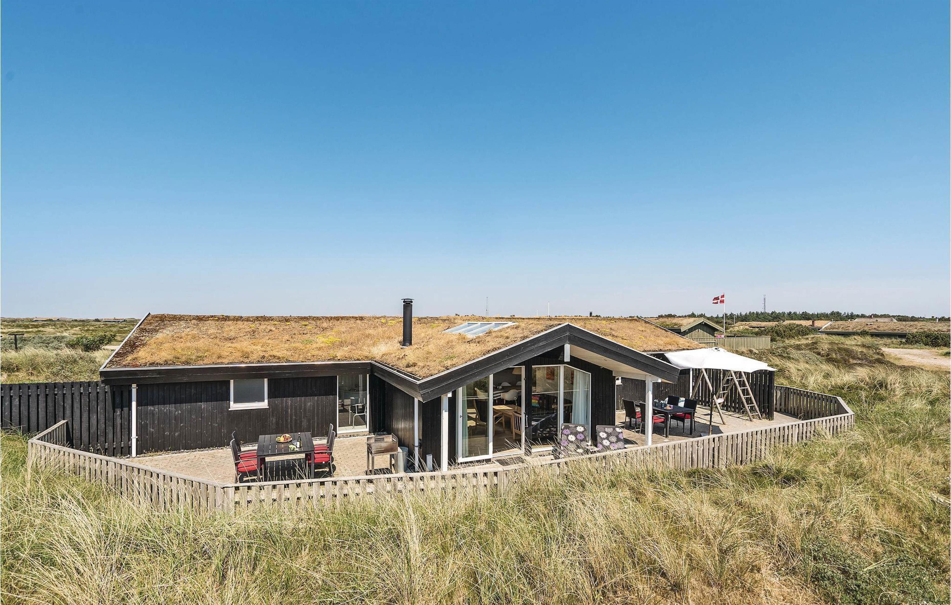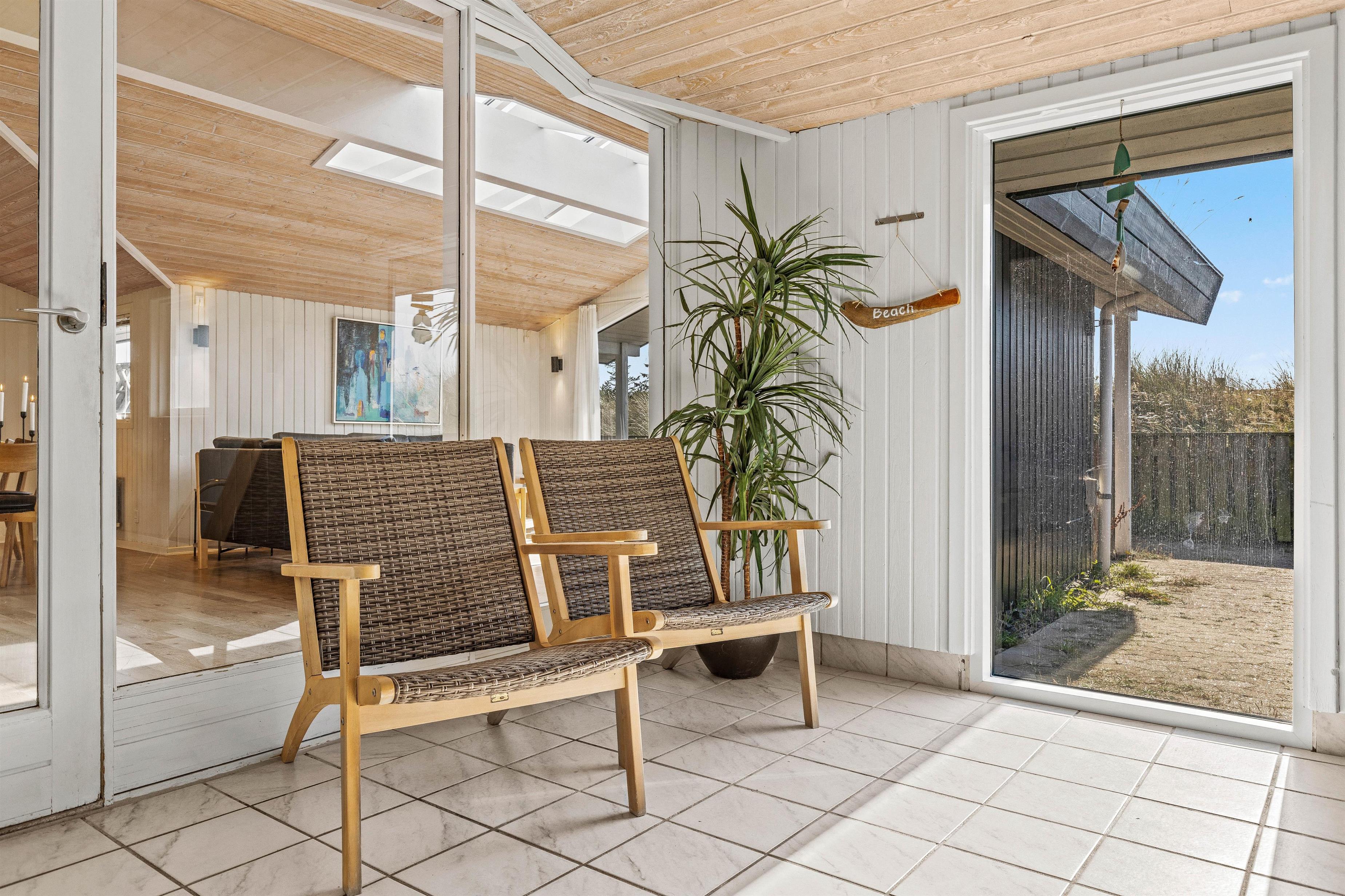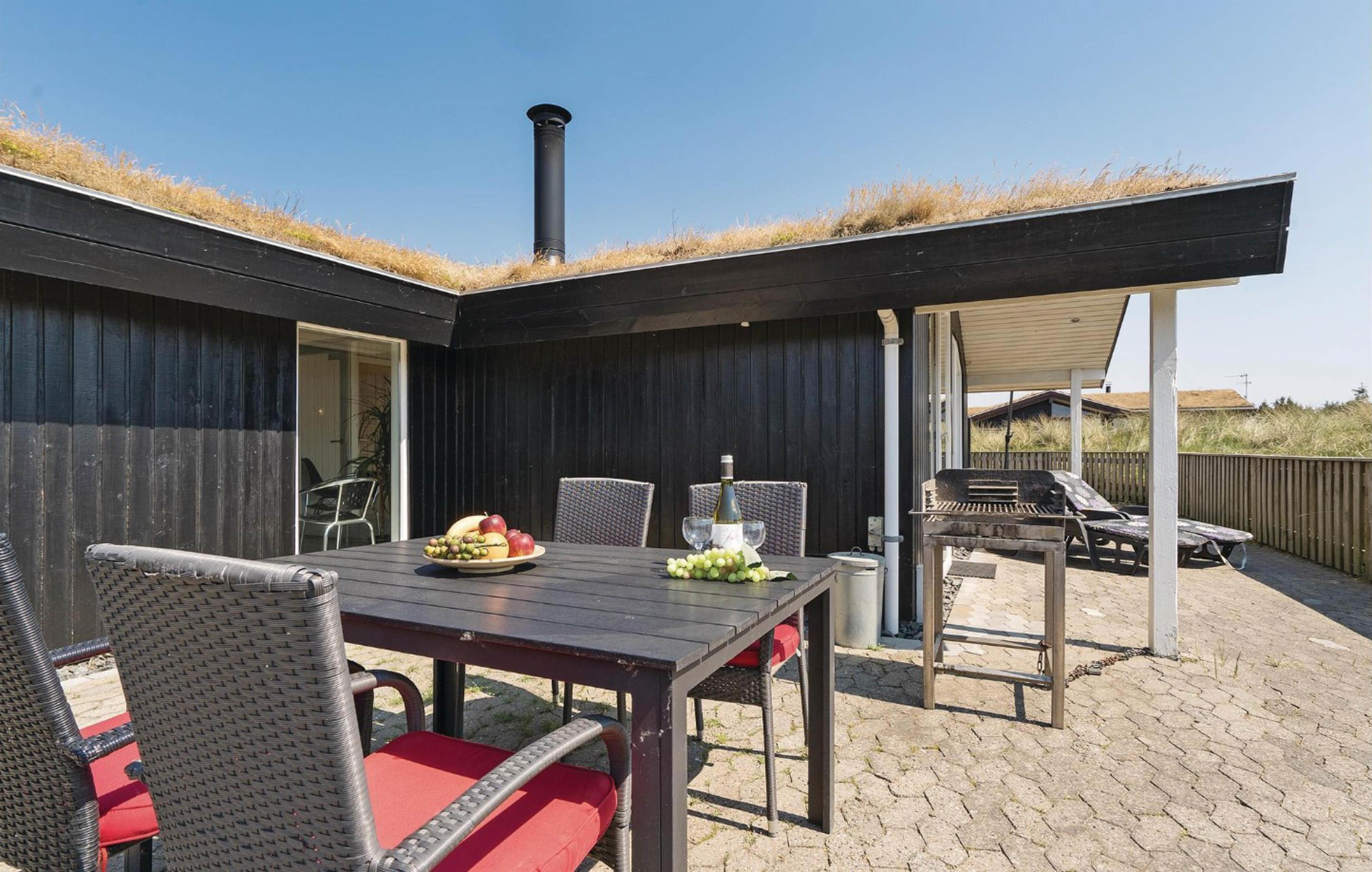 Beliggende i et roligt sommerhusområde omgivet af den smukke vestjyske natur. Mod nordvest har feriehuset en dejlig fliseterrasse, hvor I kan nyde solskinstimer og de lune sommeraftner med lækker grillmad. Her er der udsigt udover den smukke hede, hvor marehalmen vifter let i vinden. Sæt jer godt til rette i havemøblerne med en god krimi, lad børnene lege og hundene trisse rundt. For de allermindste er her opsat en lille sandkasse samt et gyngestativ, og foran huset findes et stort frit område, som er ideelt til bl.a. drageflyvning.