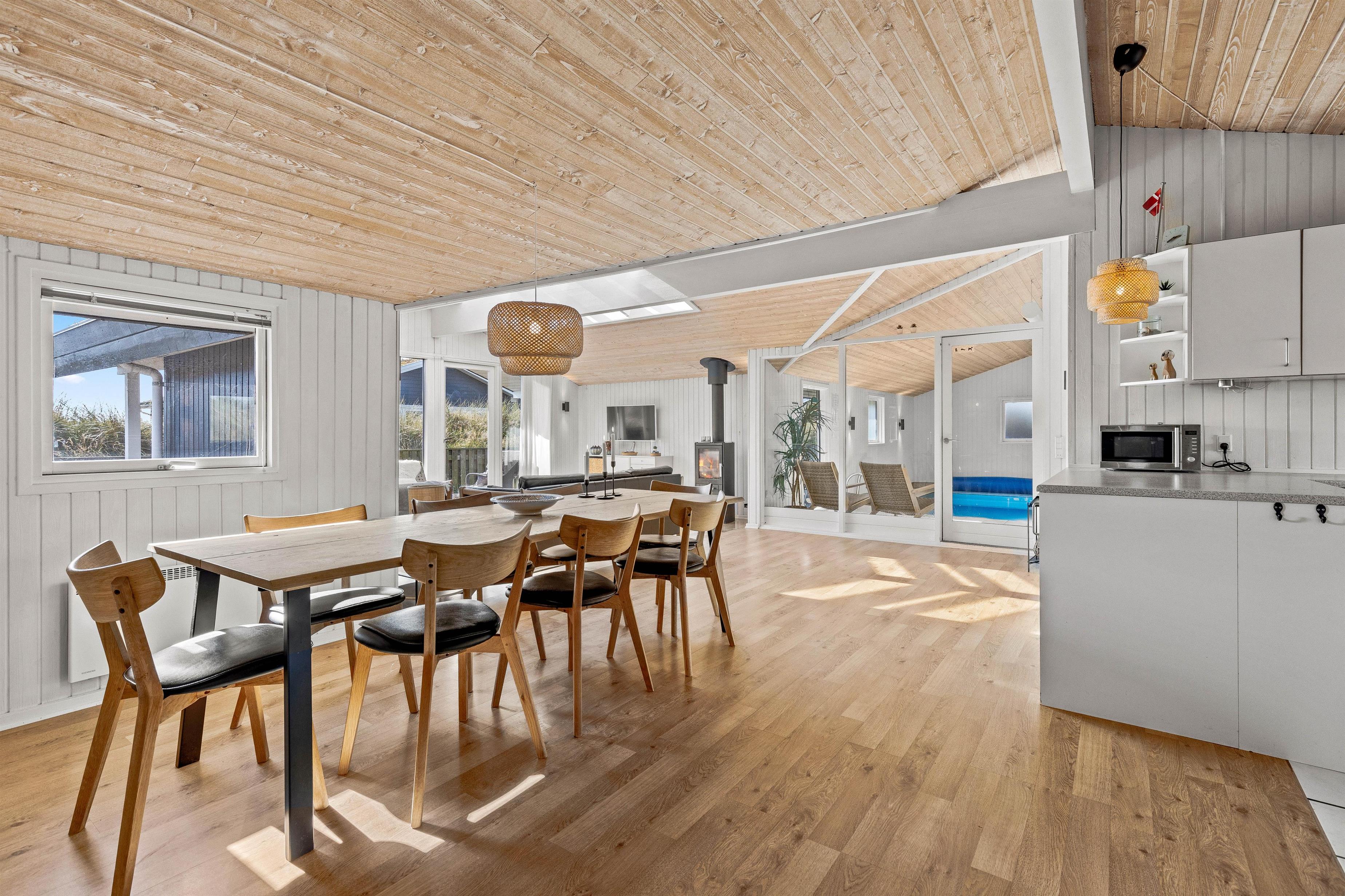 På Sydslugen 19 ligger dette klassiske hyggelige sommerhus med swimmingpool. Sommerhuset er perfekt, hvis flere familier ønsker at holde ferie sammen – her er nemlig plads til 8 gæster og 4 hunde. Beliggende på en pragtfuld naturgrund med god plads til leg og tæt på Vesterhavet.