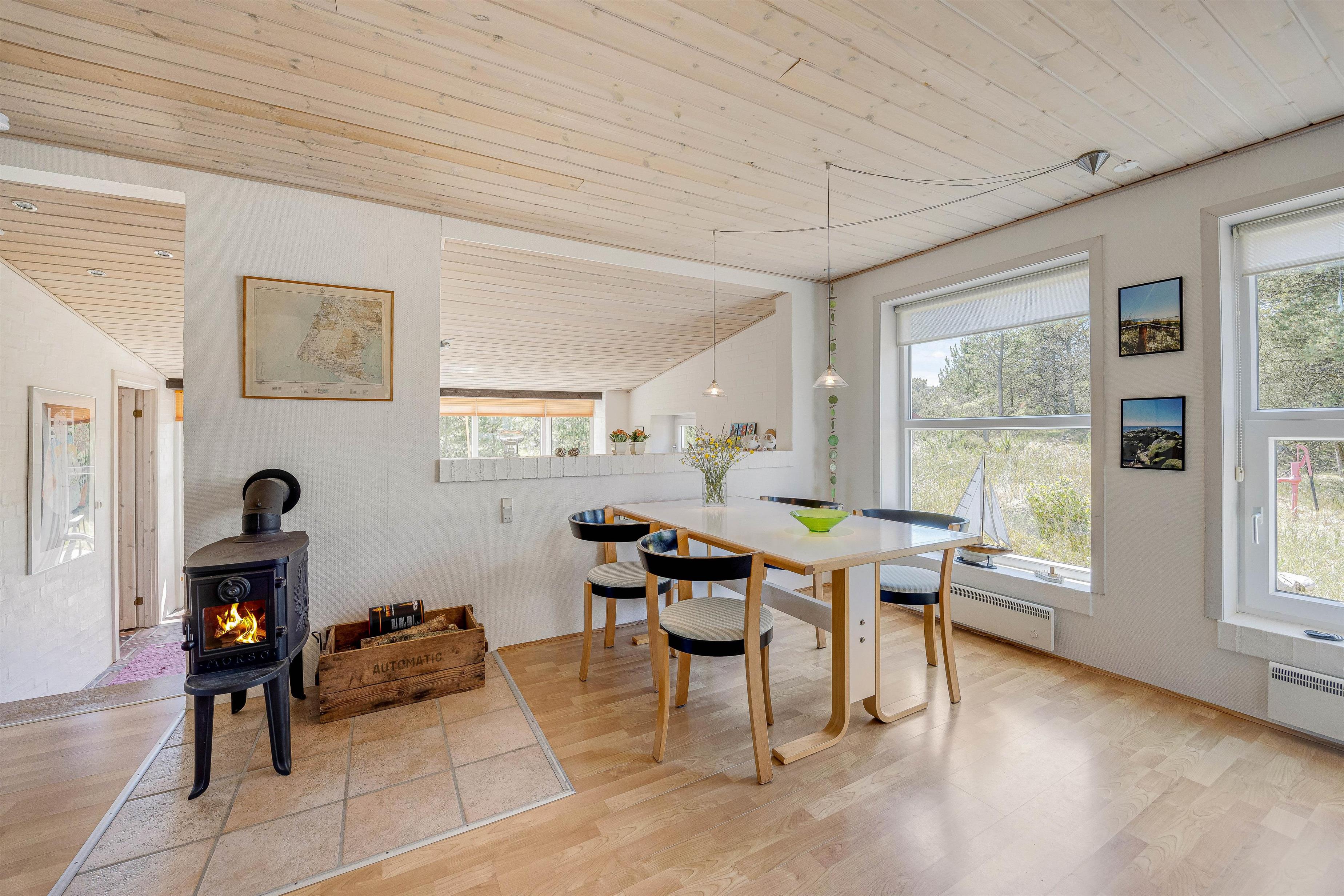 I alrummet sætter brændeovnen prikken over i’et for den hyggelige feriestemning med sin knitren og varme. Udover brændeovnen har I også en energivenlig varmepumpe, der sørger for, at I har et godt indeklima i feriehuset. Derudover udgør den hyggelige pejsestue en speciel charme.
