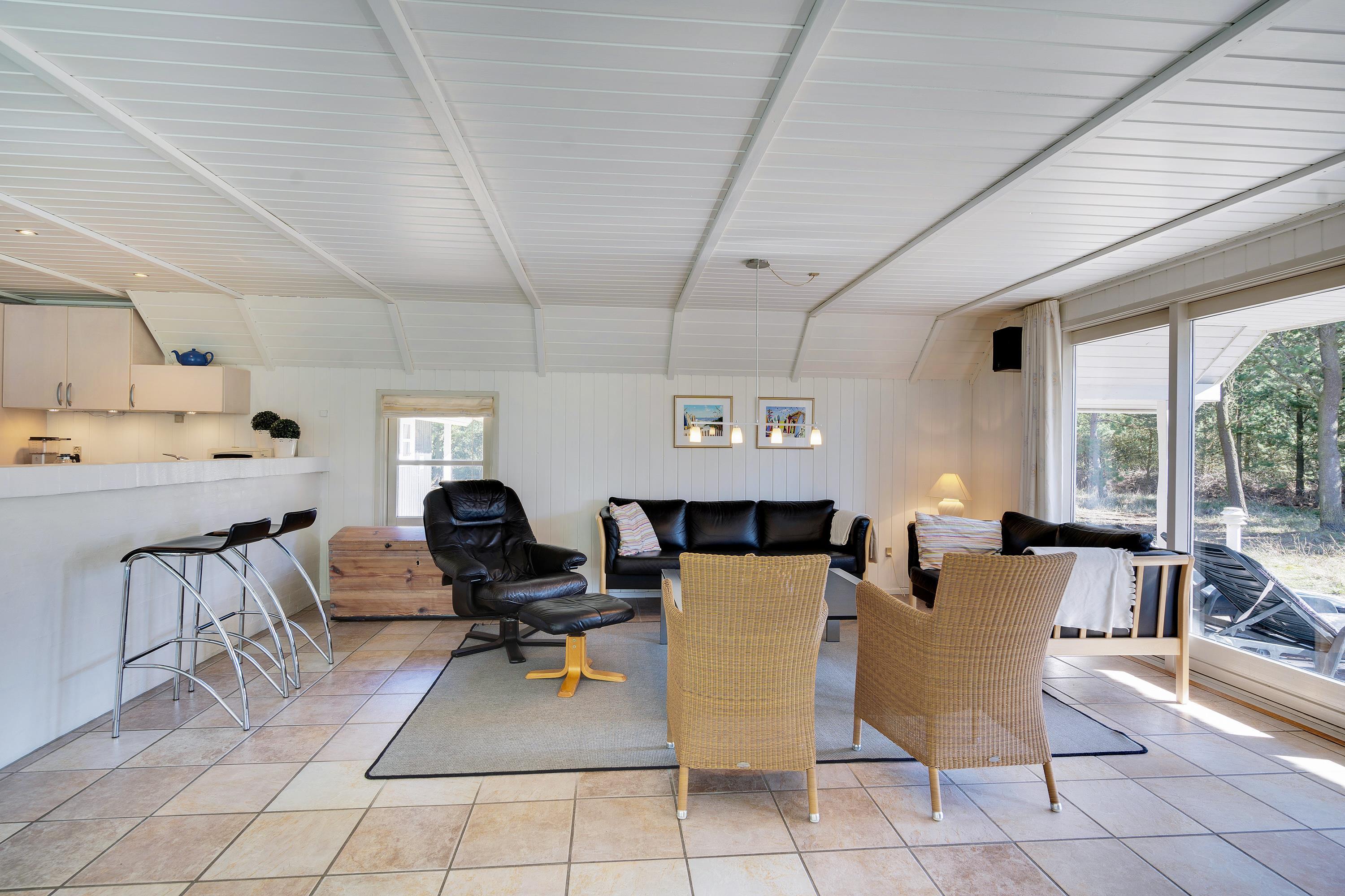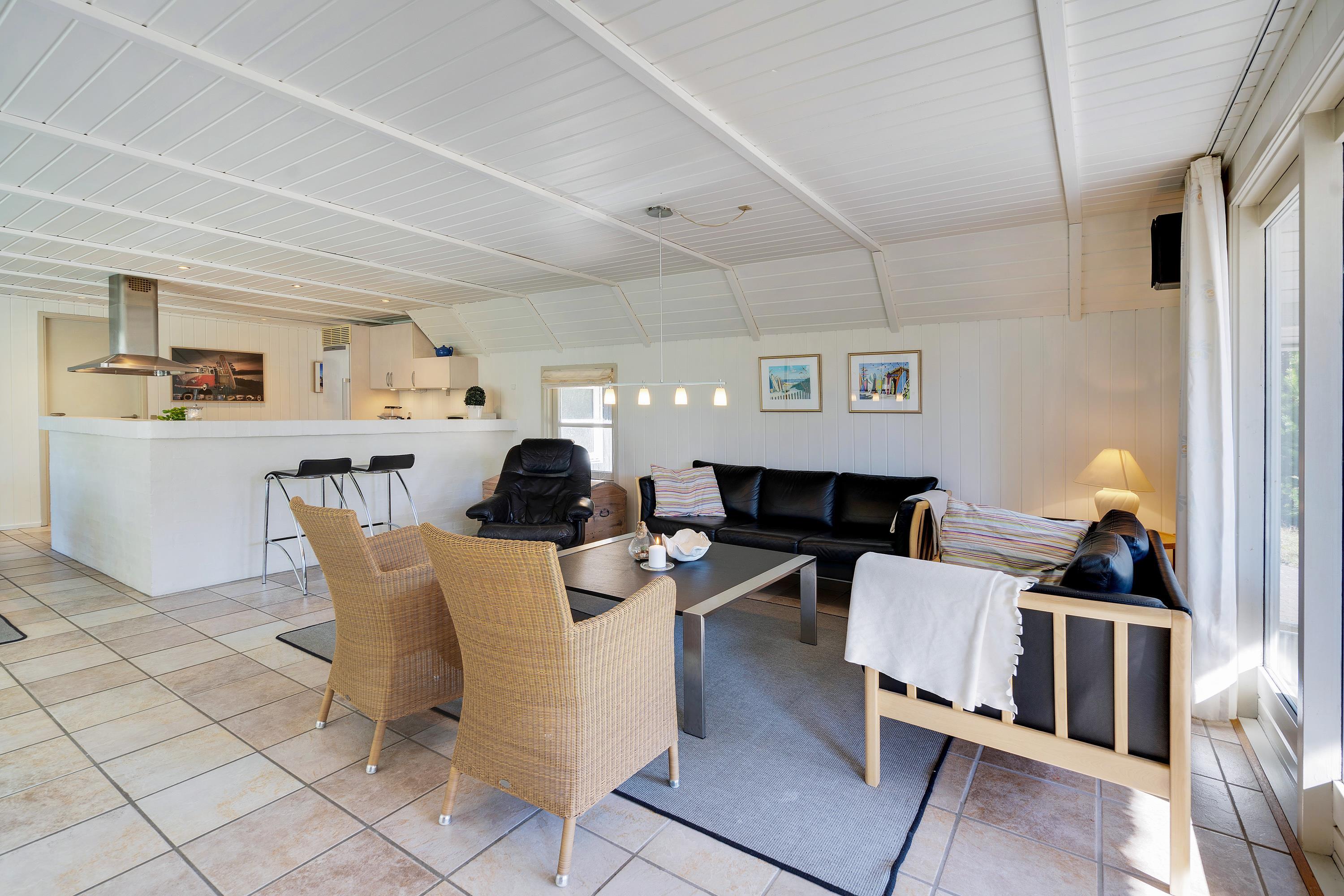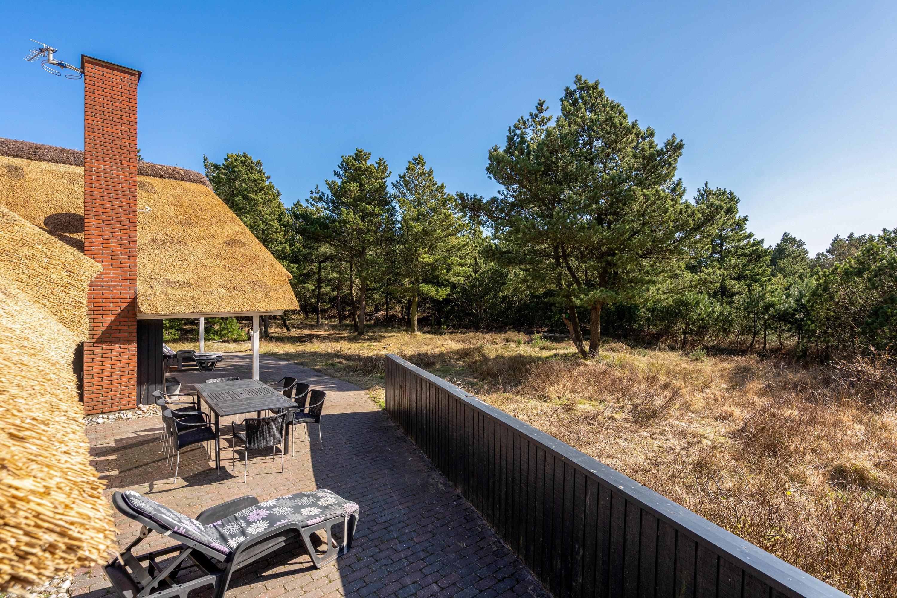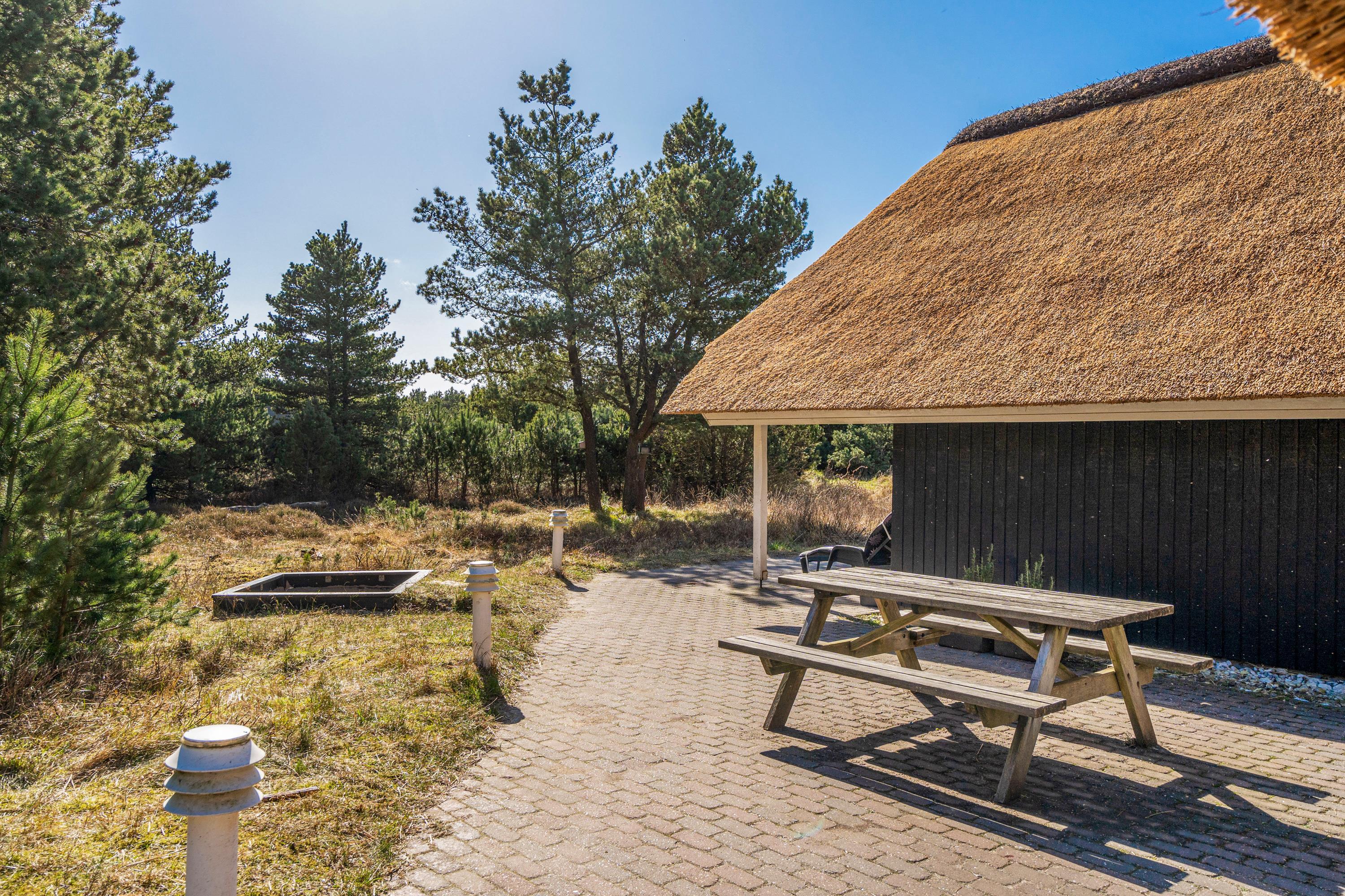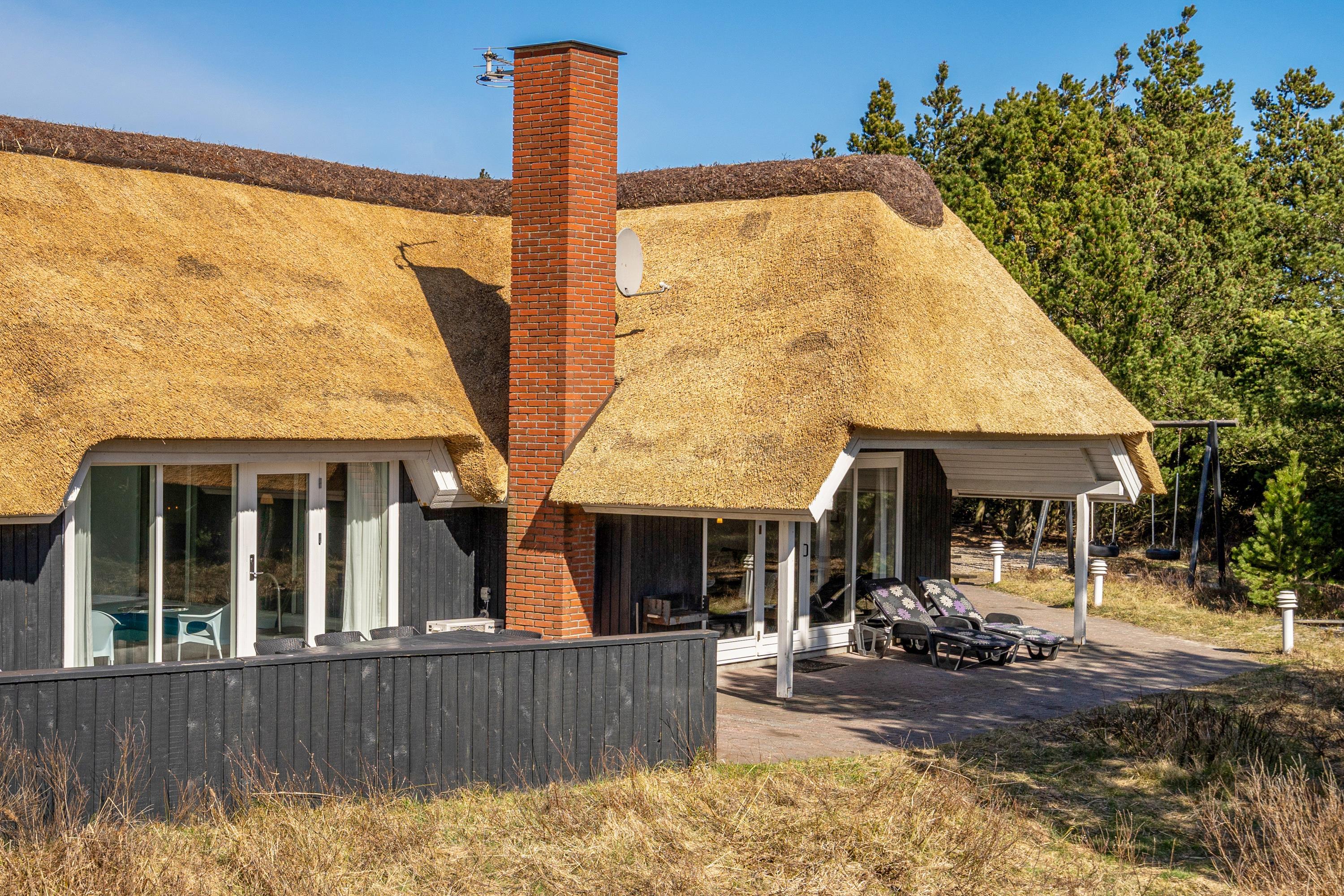 Det stråtækte sommerhus fremstår indbydende og rummeligt. Her er der god plads til 8 personer.