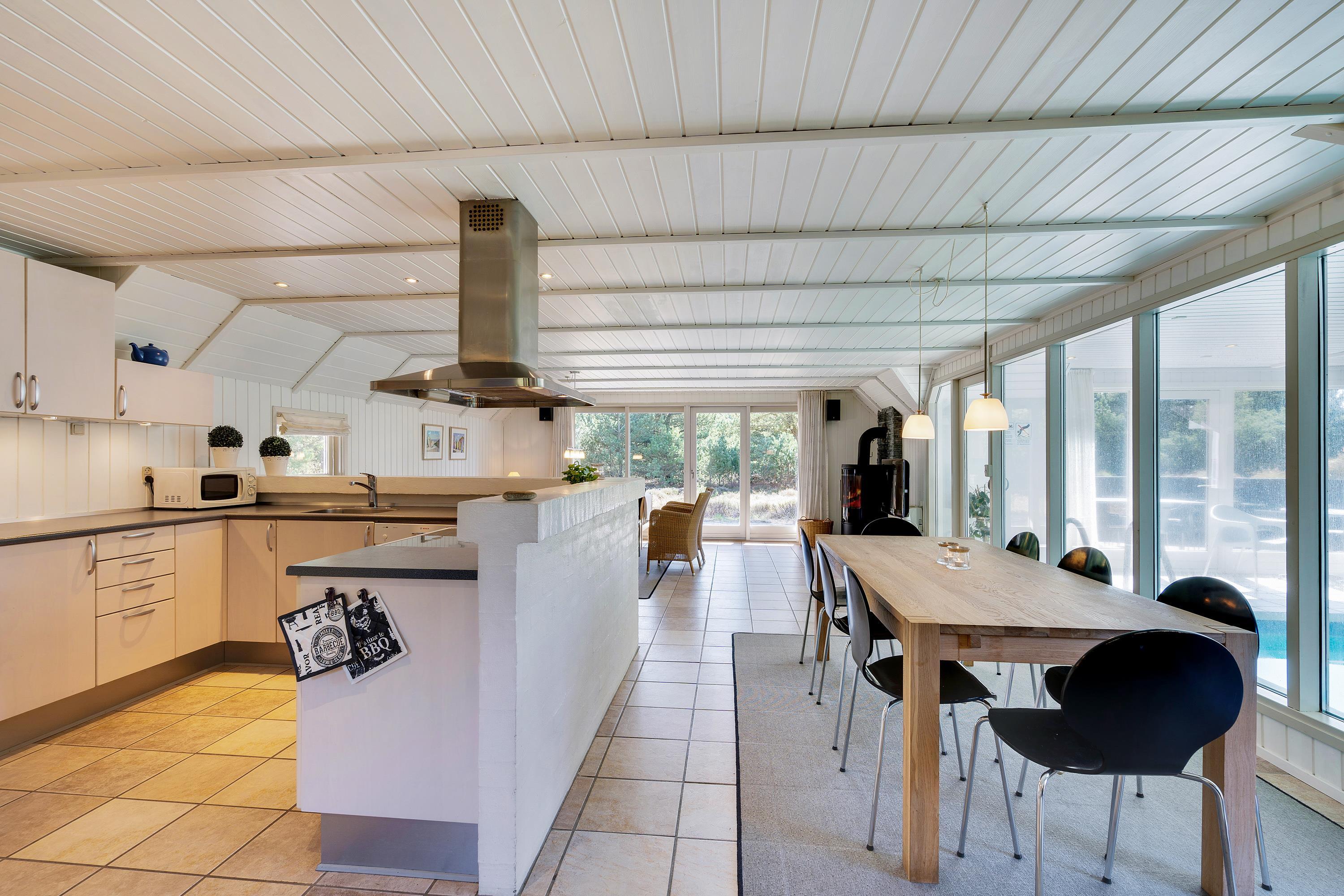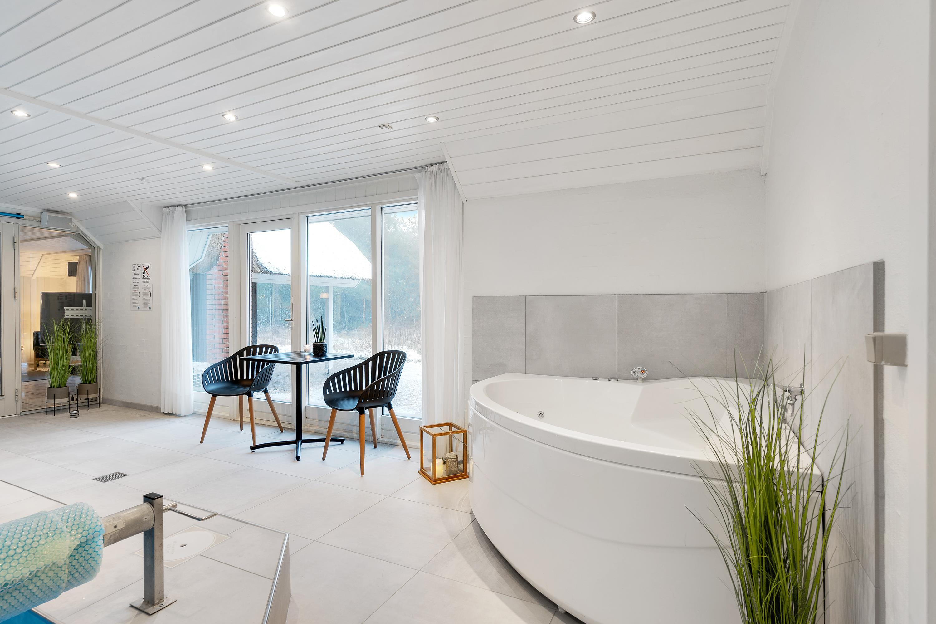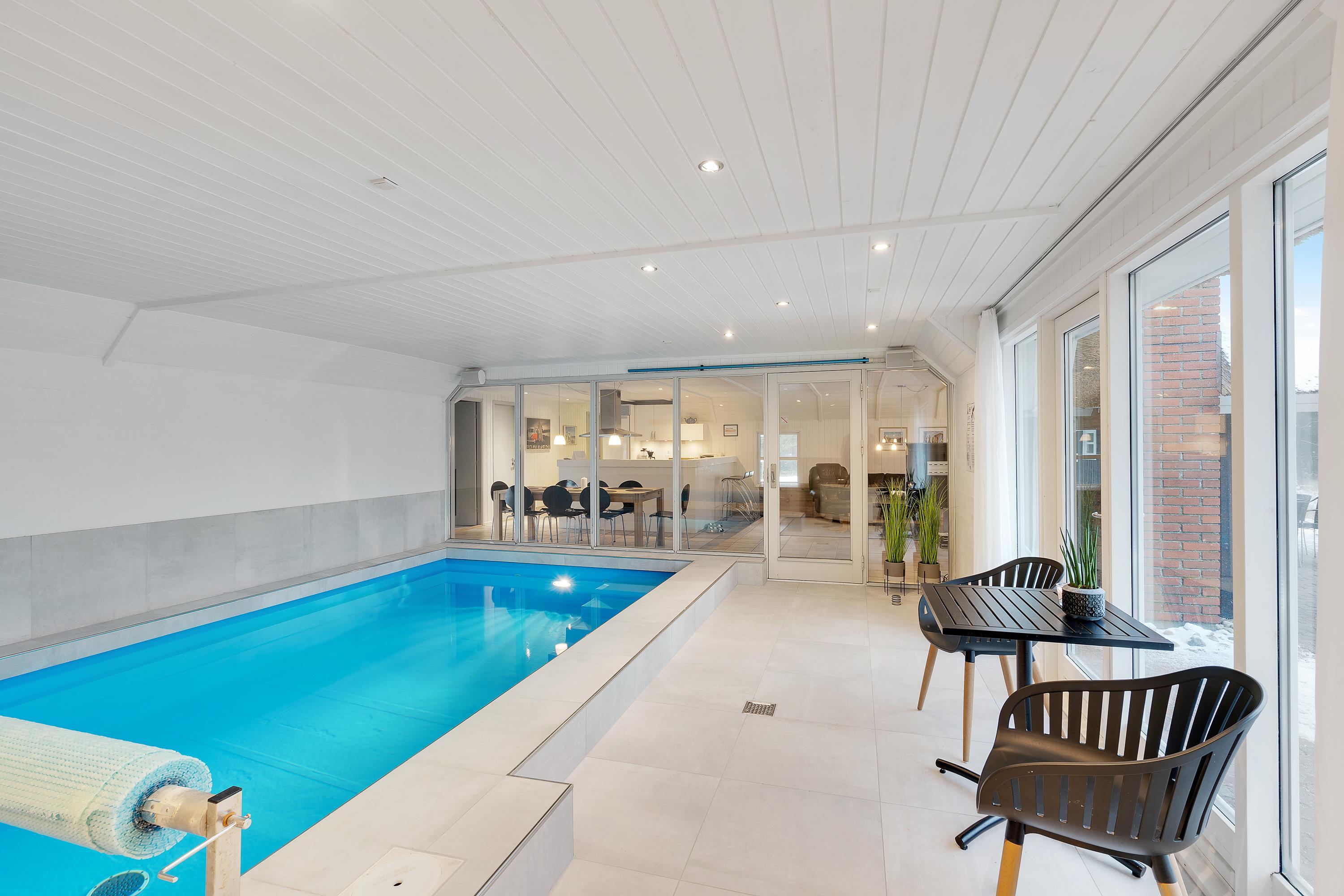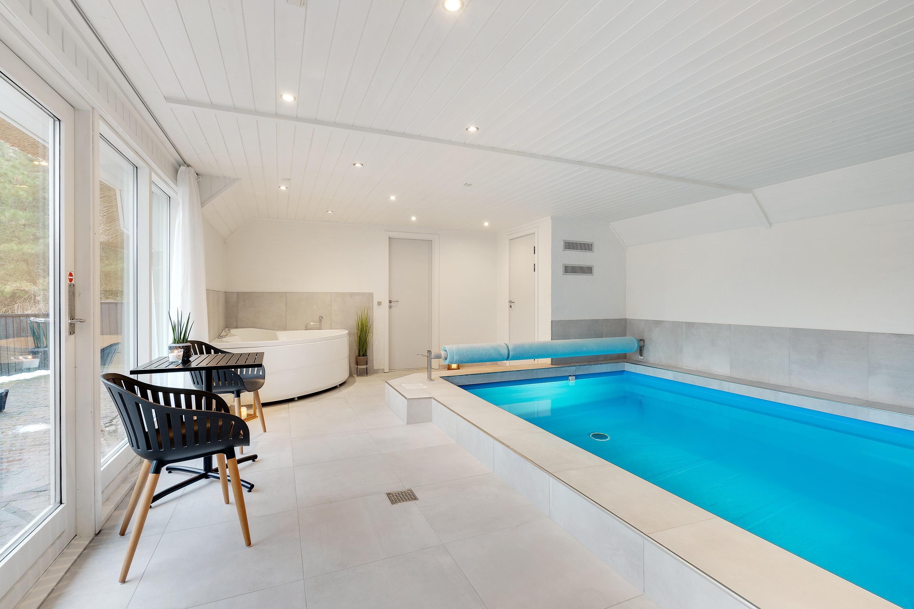 Her kan I holde en både aktiv og afslappende ferie. Sommerhuset har nemlig sin helt egen poolafdeling med indendørs swimmingpool med børnevenlig trappe, sauna og spabad – her er både vandhundene og de wellnessglade gæster godt beskæftigede.