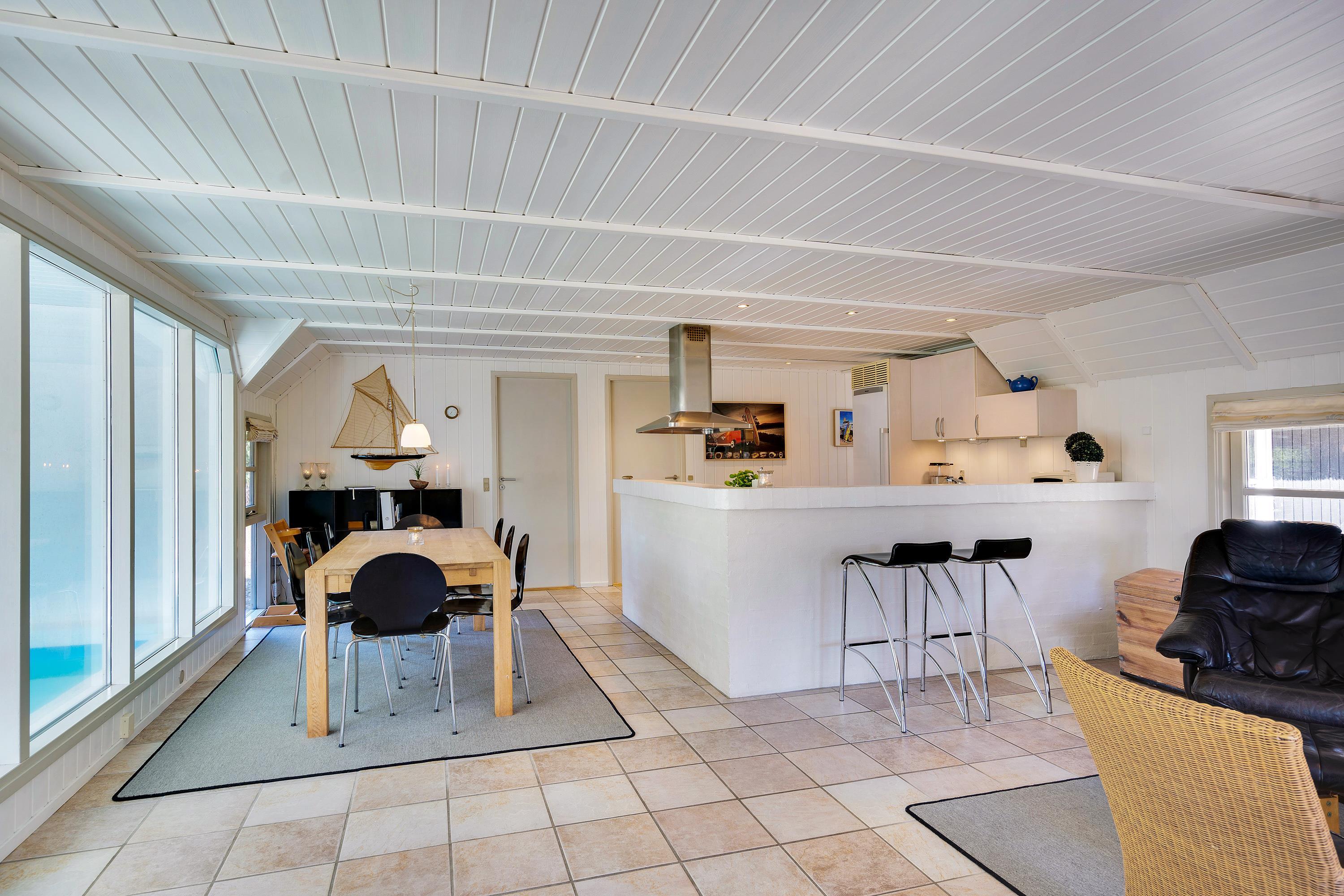 På Per Knoldsvej 42 i Blåvand kan I holde en storslået sommerhusferie med hele familien. Det store poolhus rummer plads til 8 personer, og hundene er også velkomne. Ud over jeres egen indendørs swimmingpool med god børnevenlig trappe og tilhørende wellnessområde med sauna og spabad får I her et rummeligt og renoveret (2019) indre og en stor, delvist overdækket terrasse. Både centrum og stranden ligger kun 10 minutters gang væk.