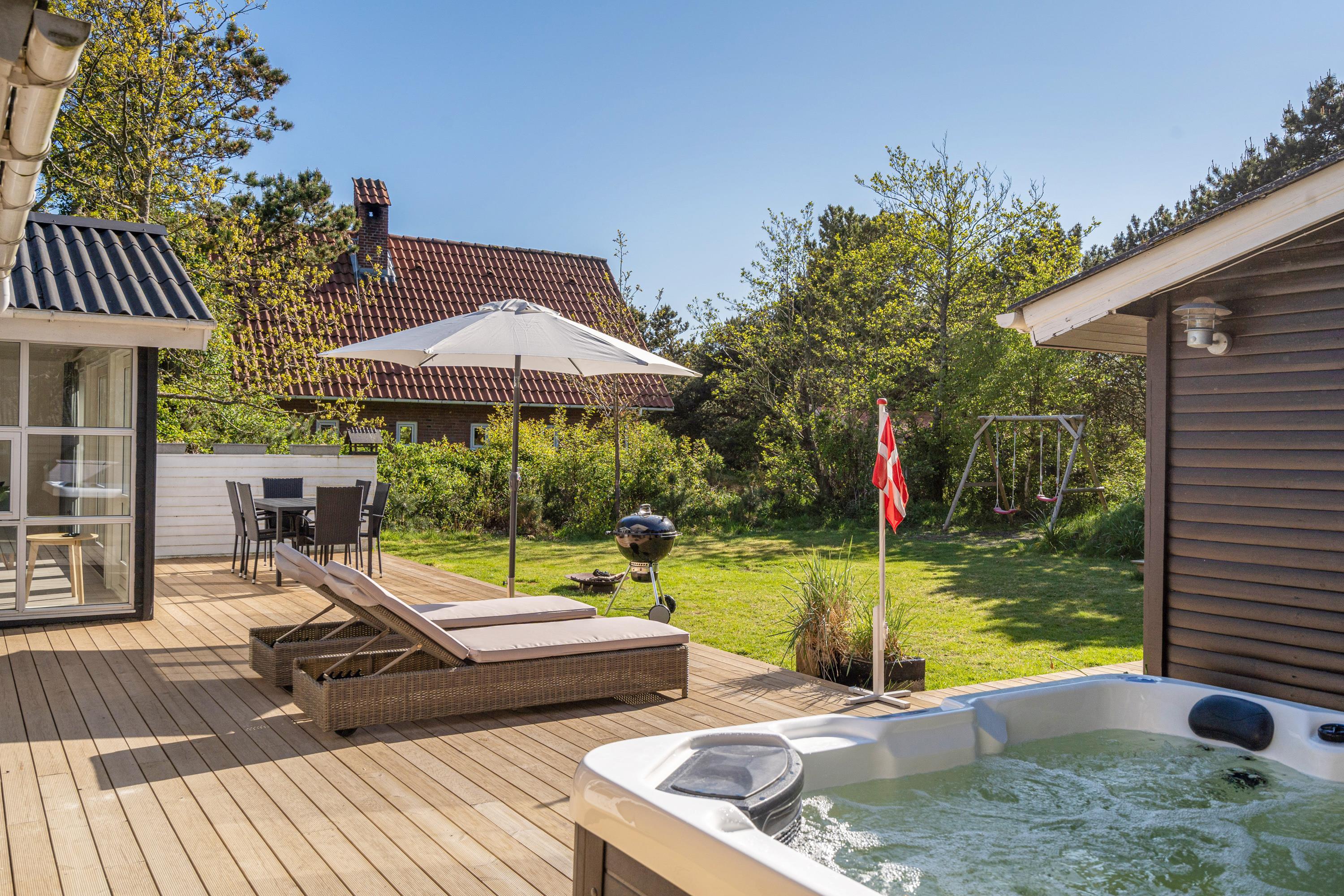 Et af sommerhusets absolutte highlights finder I på terrassen. Her står nemlig det lækre udendørs spabad. Der findes næppe en bedre måde at runde en god feriedag af på, end med en afslappende session i det varme boblebad under den funklende stjernehimmel.