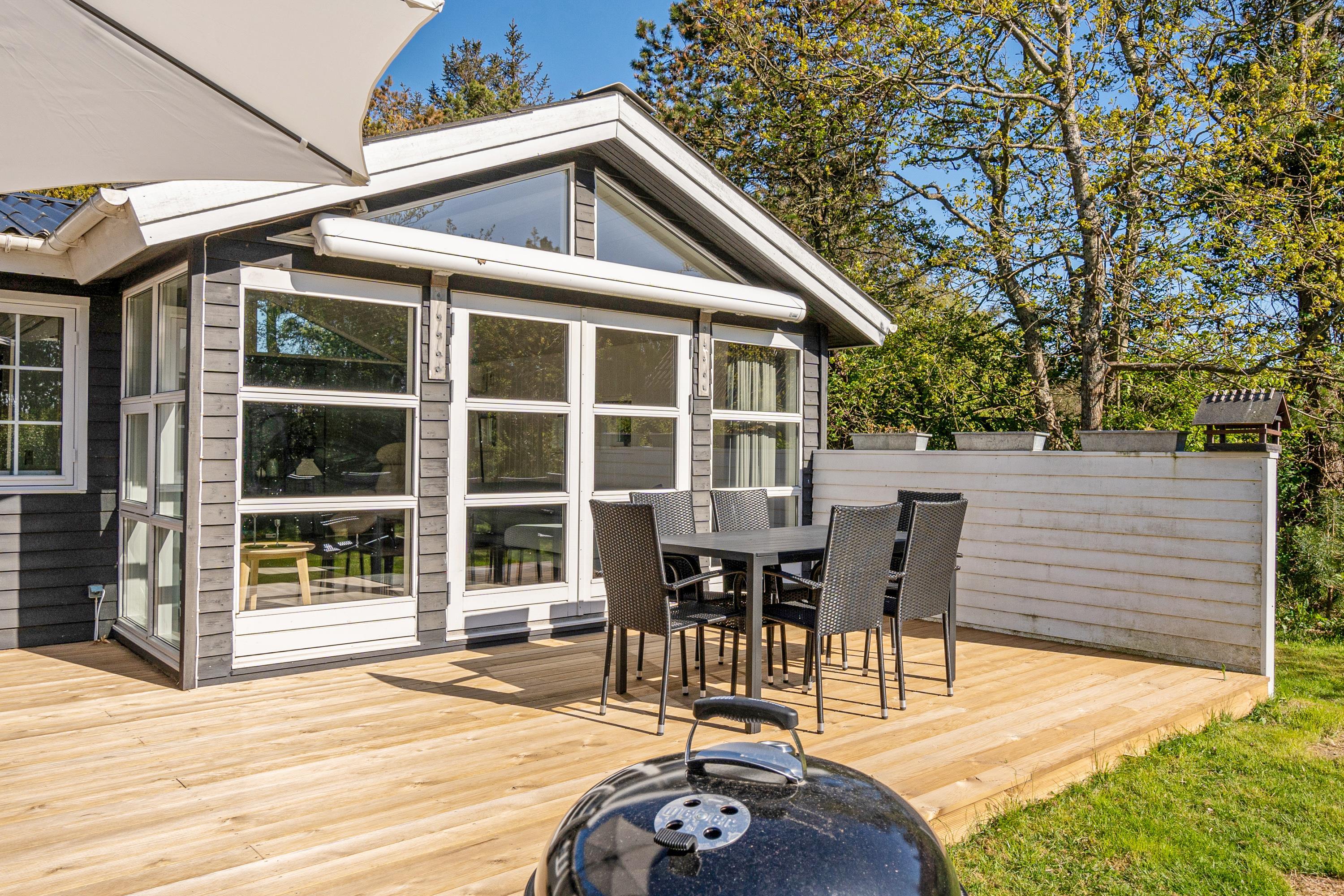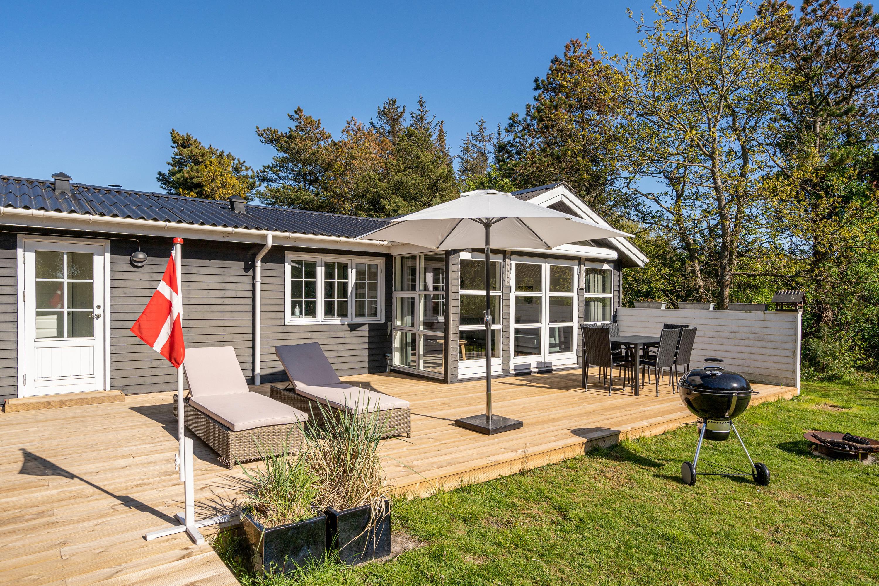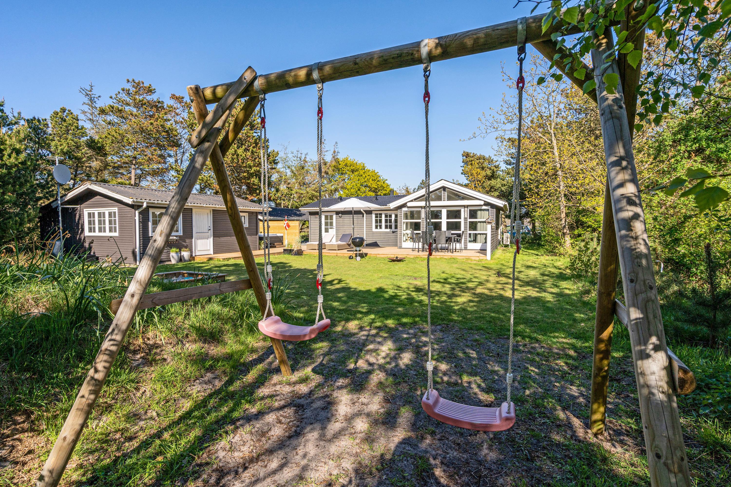 Den 1.500 kvadratmeter store naturgrund er omkranset af høje træer hele vejen rundt, så I har privatliv, mens I sidder på terrassen og nyder den friske luft. Børnene vil elske at få lov til at tumle rundt og spille bold på den store græsplæne, der hører til sommerhuset.