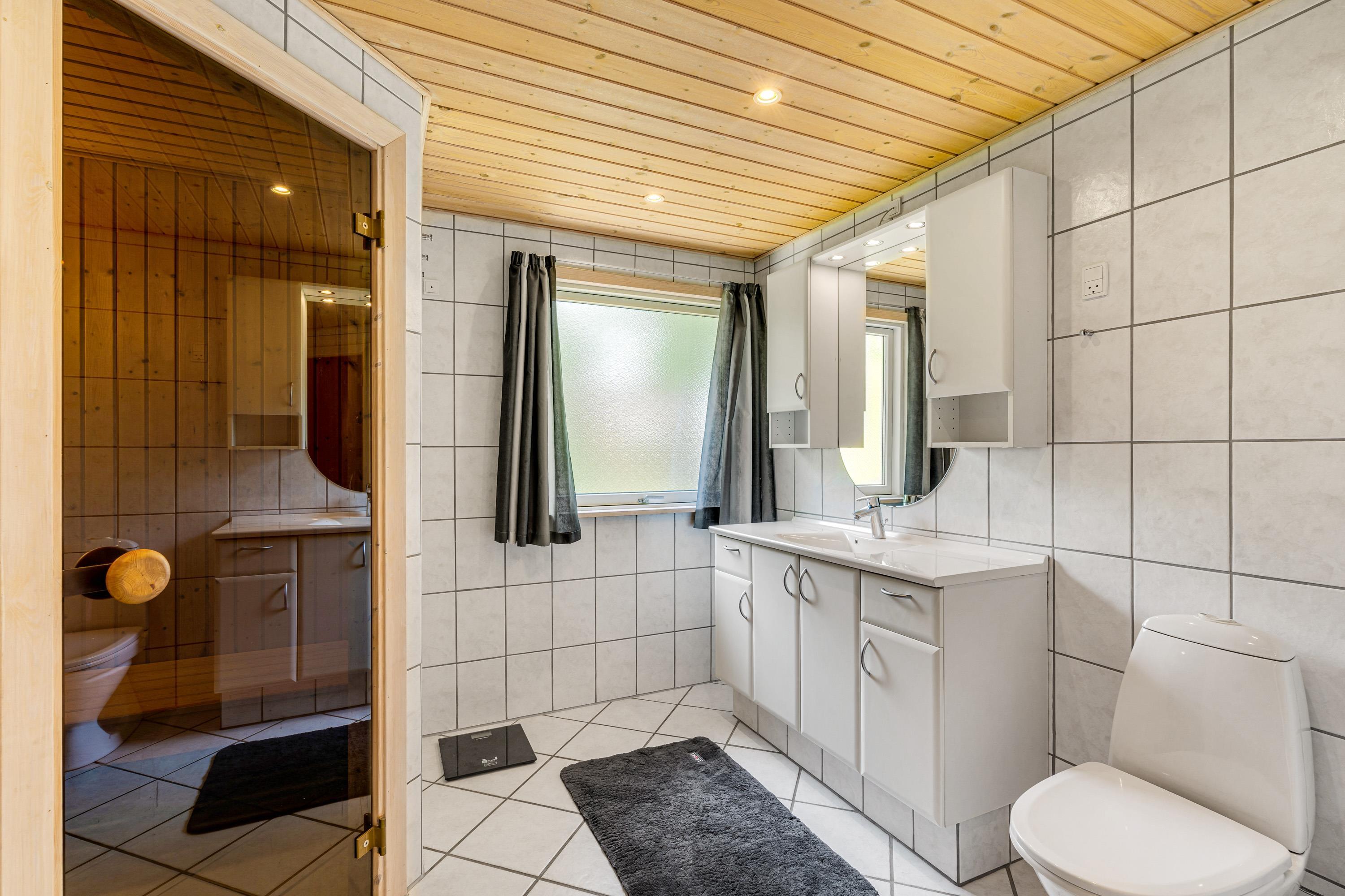 Sommerhuset er indrettet med 1 badeværelse med gulvvarme og 3 soveværelser – 2 med dobbeltseng og 1 med enkeltsenge. I feriehuset skal I desuden ikke bruge en masse af jeres kostbare ferietid på praktisk husarbejde takket være opvaskemaskinen og vaskemaskinen.
