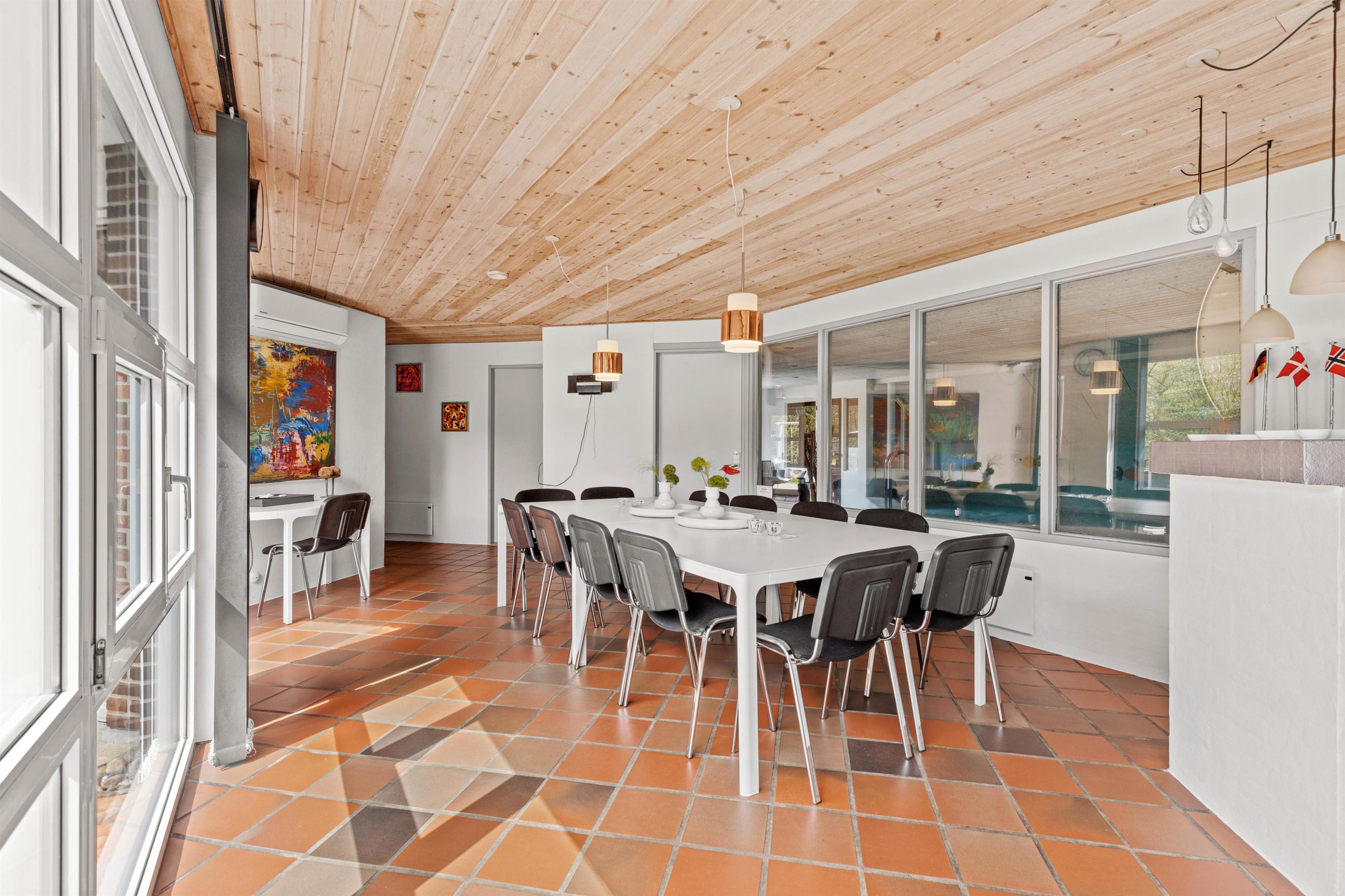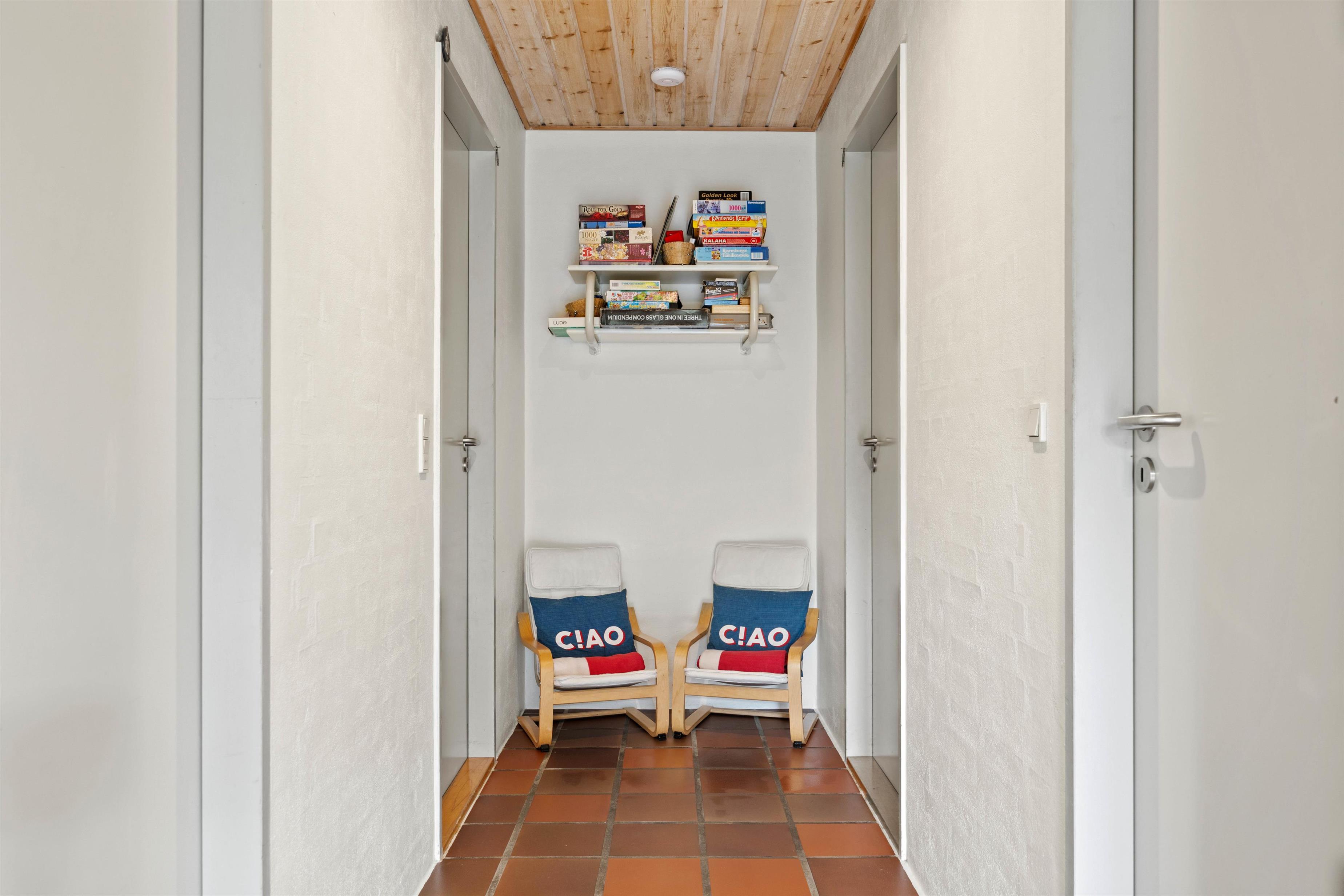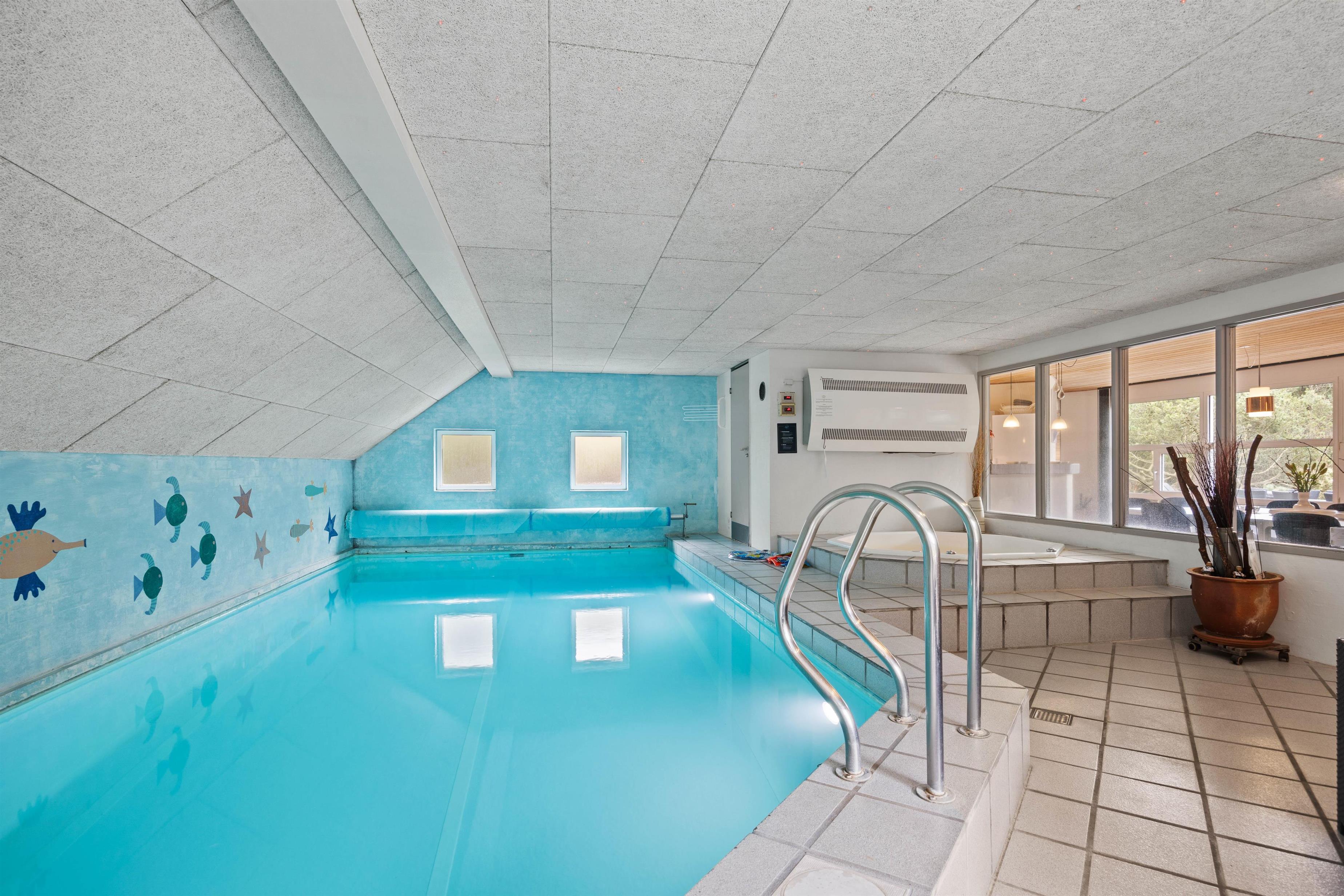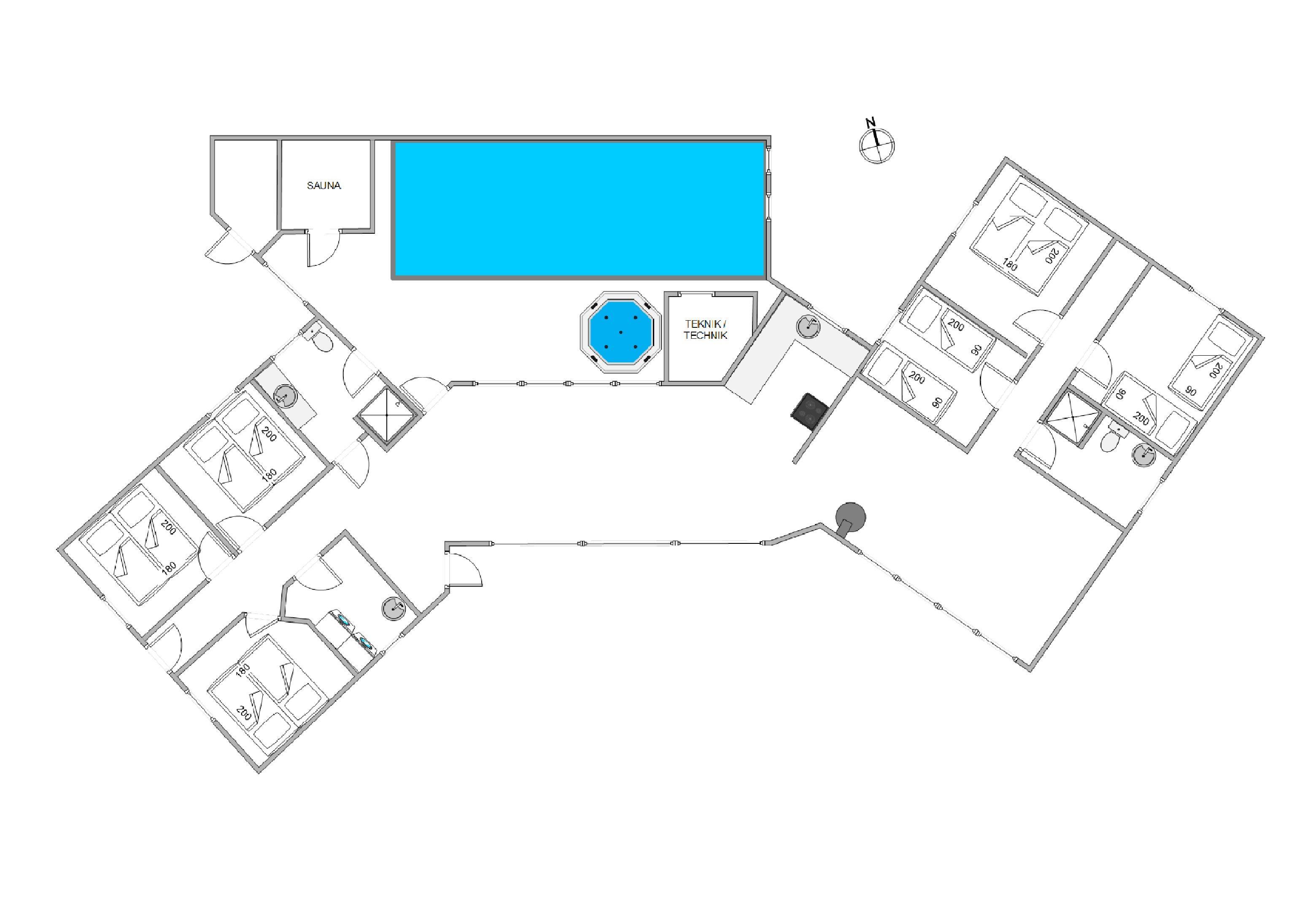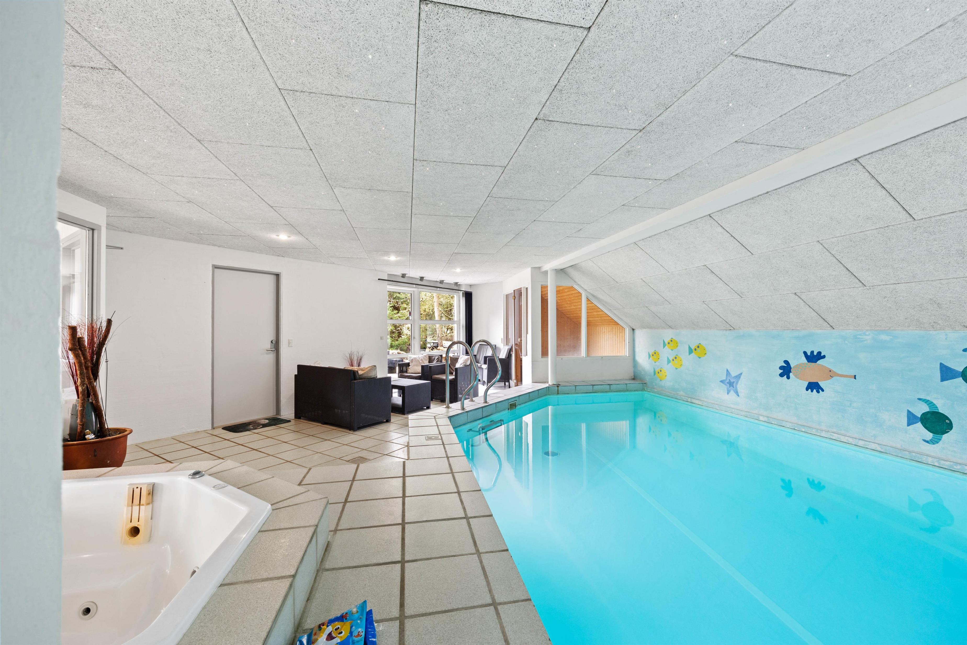 Der er mange timers fornøjelser til børn og voksne i swimmingpoolen, spabadet og saunaen. Her behøver man aldrig at kede sig. De 2 badeværelser med gulvvarme gør, at I ikke behøver stå i kø til morgenbadet, vaskemaskinen og tørretumbleren sørger for friske håndklæder. Feriehuset har i alt 6 soveværelser. 4 af soveværelserne er indrettet med dobbeltsenge, og 2 soveværelser har hver 2 enkeltsenge. Således kan I indrette jer, som det passer jer bedst. Når sengene er fordelt, kan I gå på opdagelse - der er meget at udforske både inde og ude.
