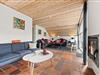 Feriehuset på Vestermarken 5B er arkitektonisk spændende og har en helt speciel atmosfære med en dejlig feriestemning. Der er god plads i den store vinkelstue med brændeovn, så alle kan føle sig hjemme. Den omkostnings- og energibesparende varmepumpe sørger for behagelige temperaturer i feriehuset. Det åbne opholdsrum bliver samlingspunktet for fælles måltider, men også for hyggelige aftener foran fjernsynet og ved det lange spisebord, hvor I kan spille kort eller brætspil sammen. Sofaen indbyder til at læse en god bog eller se en god film. I det åbne køkken finder I alt, hvad I behøver for at forkæle hinanden med lækre måltider, herunder mikroovn, køleskab, induktionskomfur og en separat fryser på 90 liter.