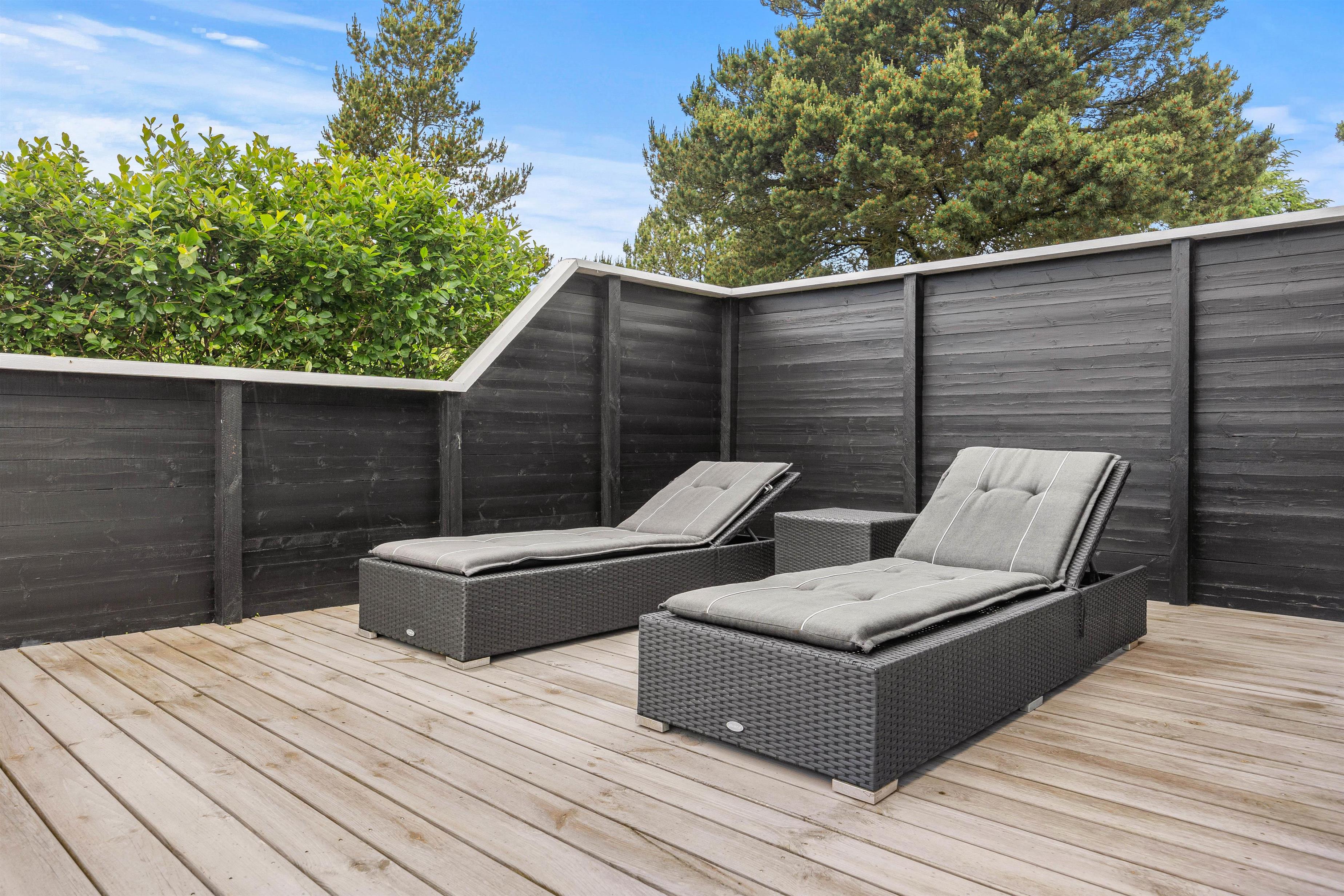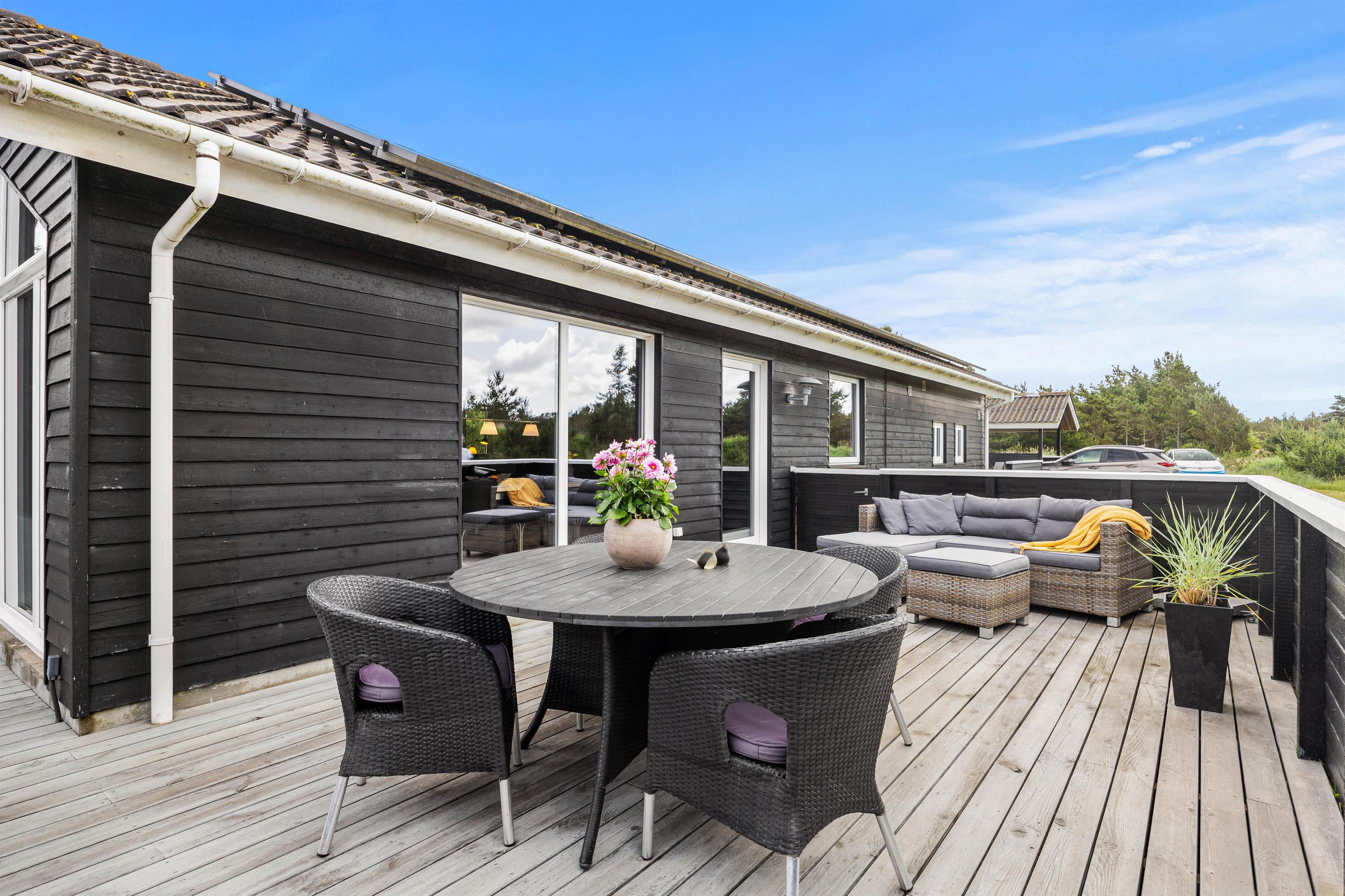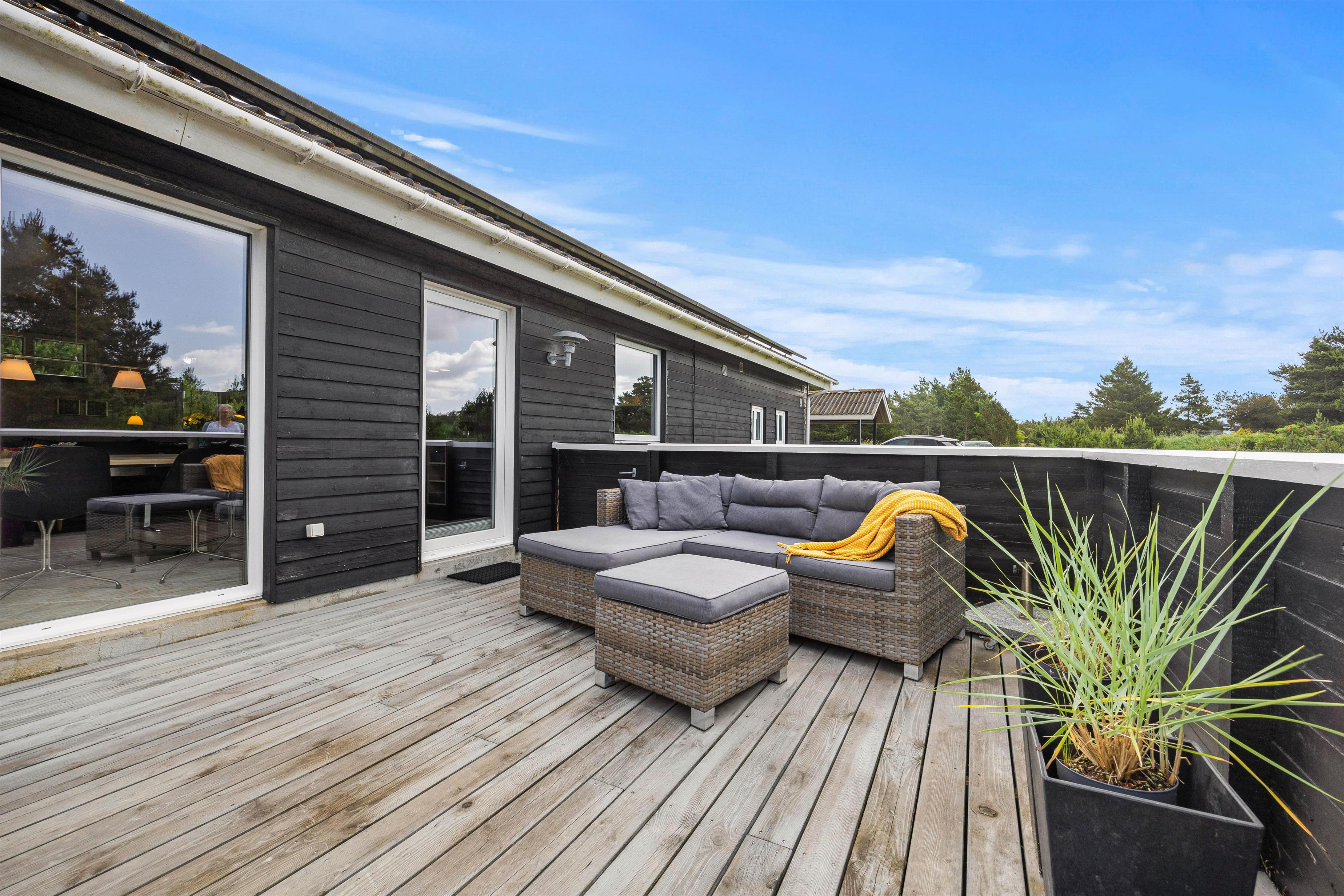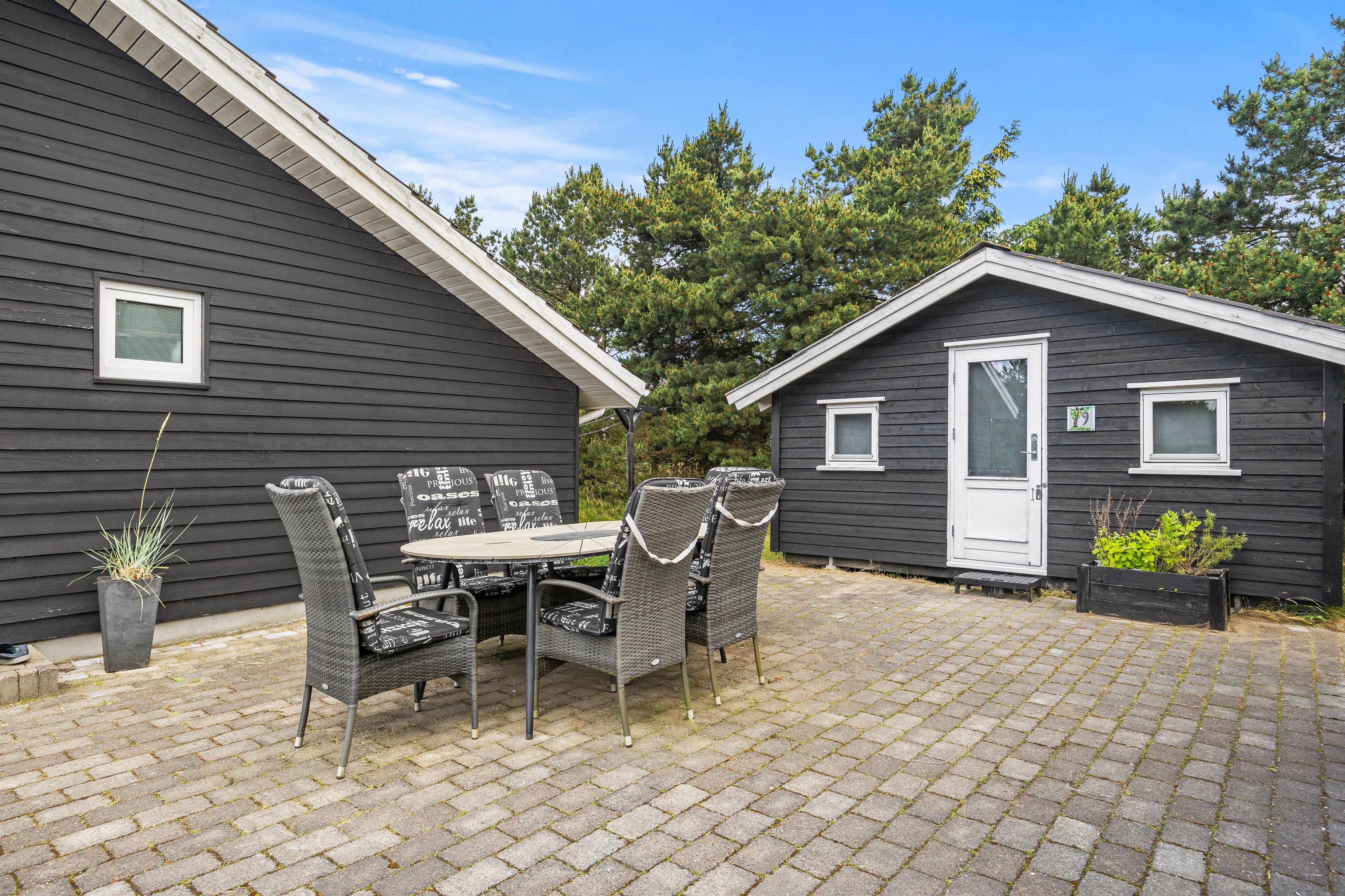 Udendørs åbner sommerhuset op til ikke blot én, men 2 terrasser – en afskærmet og en lukket terrasse – hvor I kan finde fred og ro til at nyde en kop kaffe eller et glas vin i den friske luft. Grillen og havemøblerne giver mulighed for at nyde lækre måltider under åben himmel og afholde hyggelige grillaftener med hele familien.