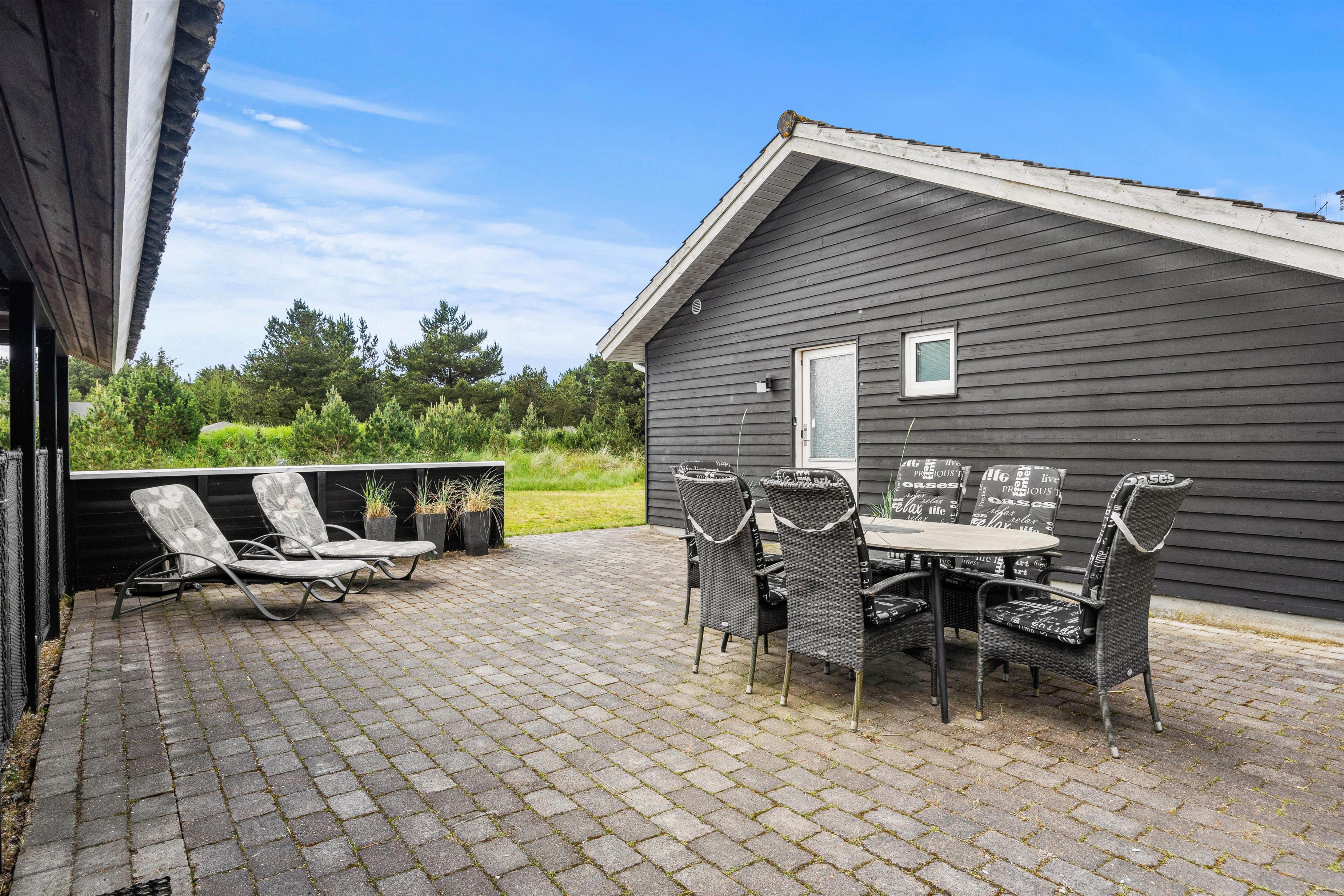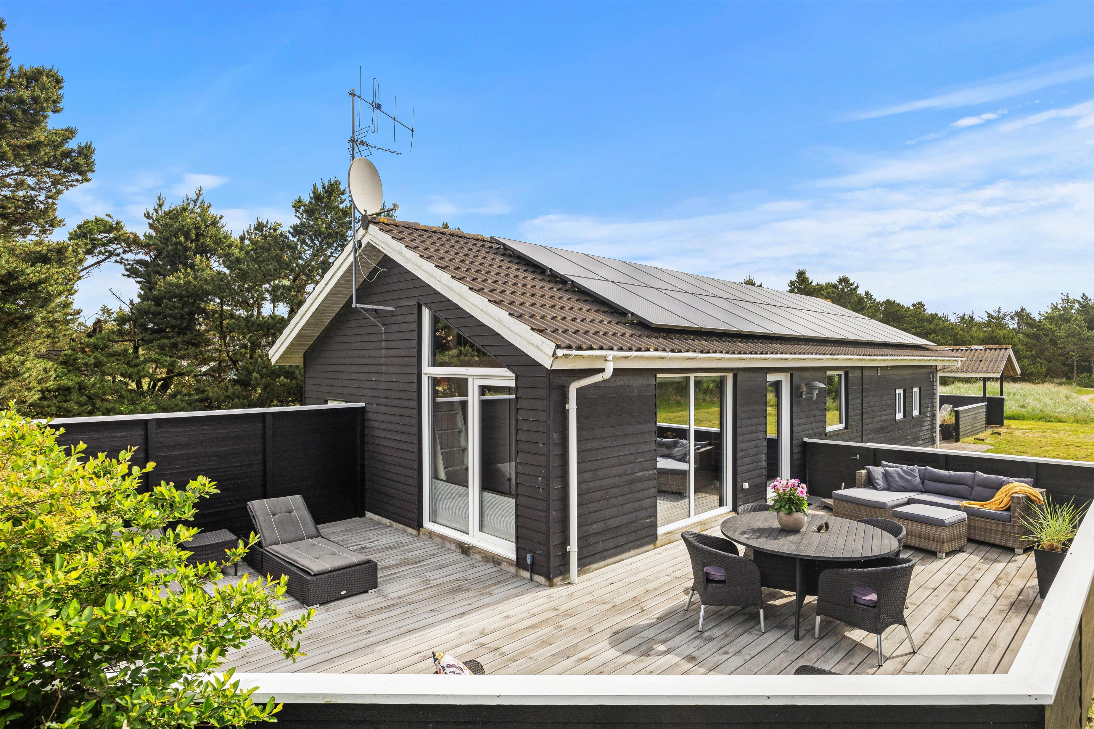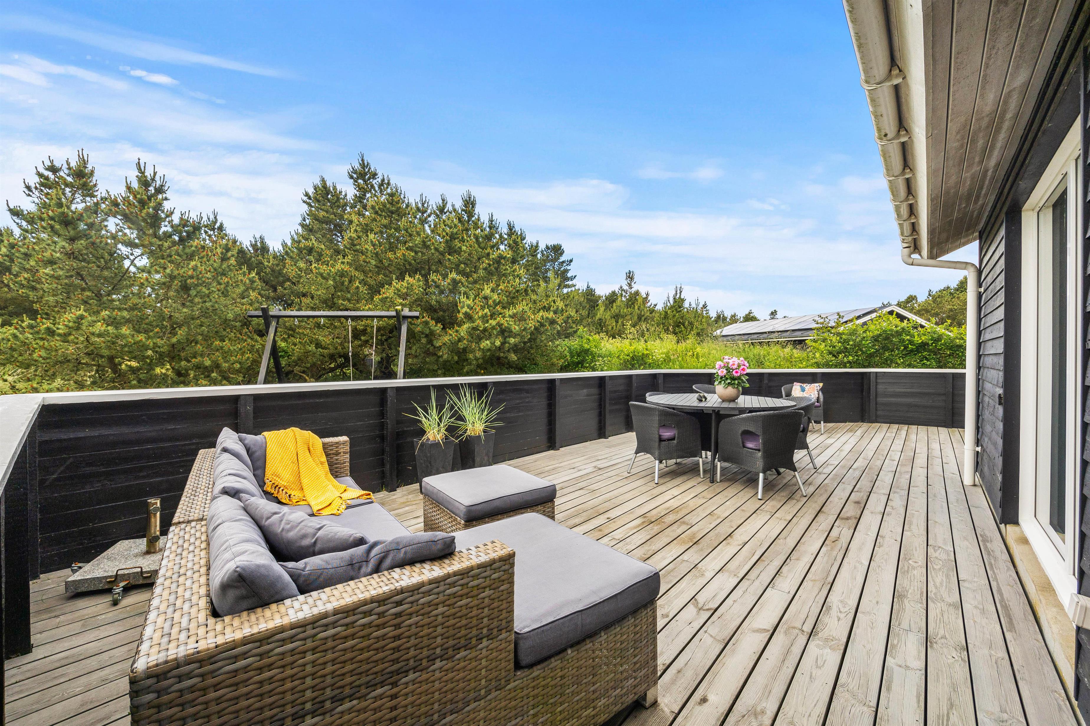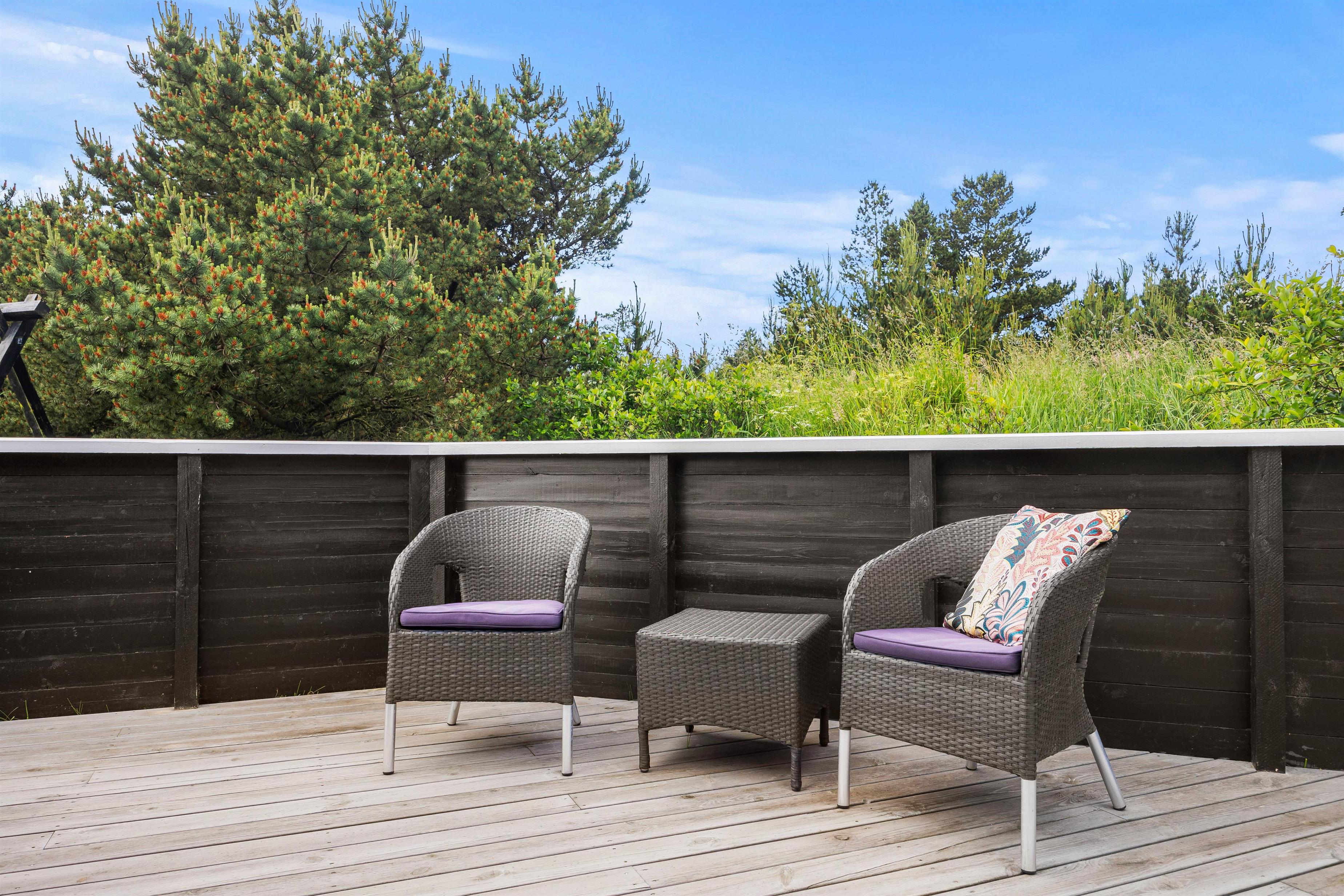 Udendørs åbner sommerhuset op til ikke blot én, men 2 terrasser – en afskærmet og en lukket terrasse – hvor I kan finde fred og ro til at nyde en kop kaffe eller et glas vin i den friske luft. Grillen og havemøblerne giver mulighed for at nyde lækre måltider under åben himmel og afholde hyggelige grillaftener med hele familien.