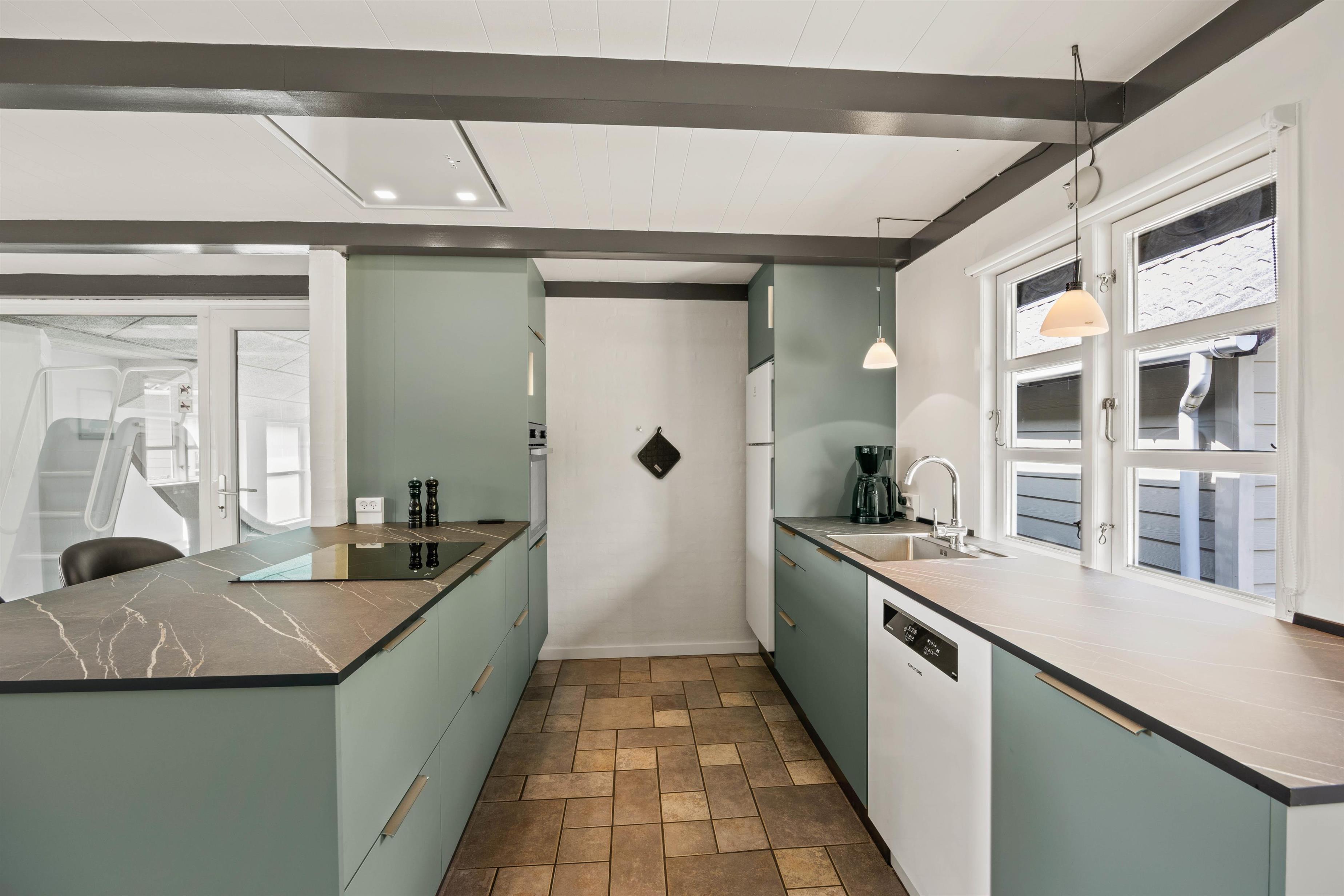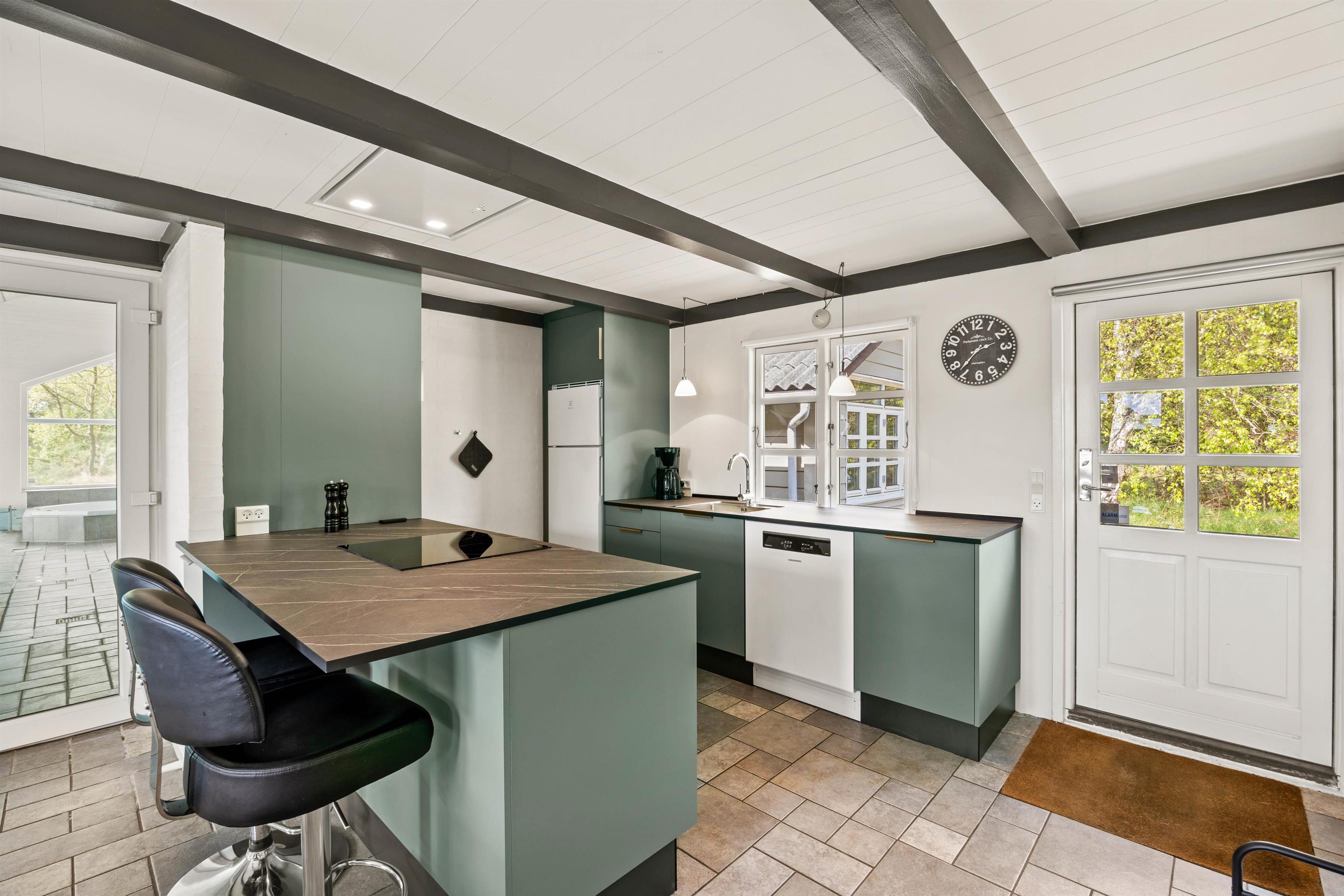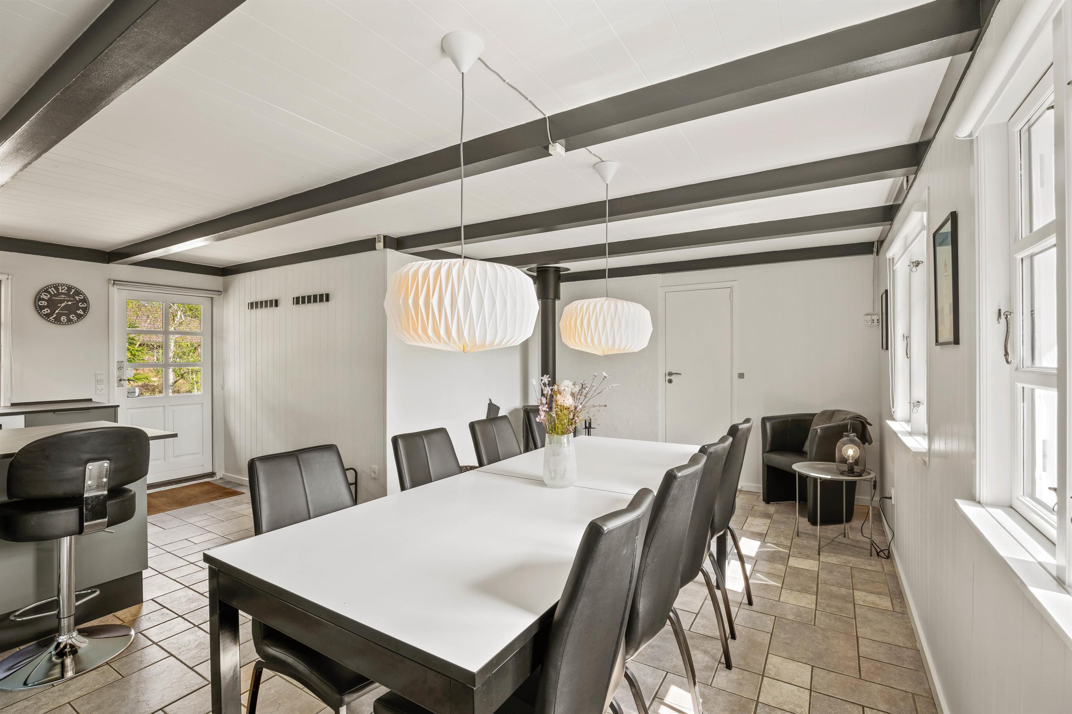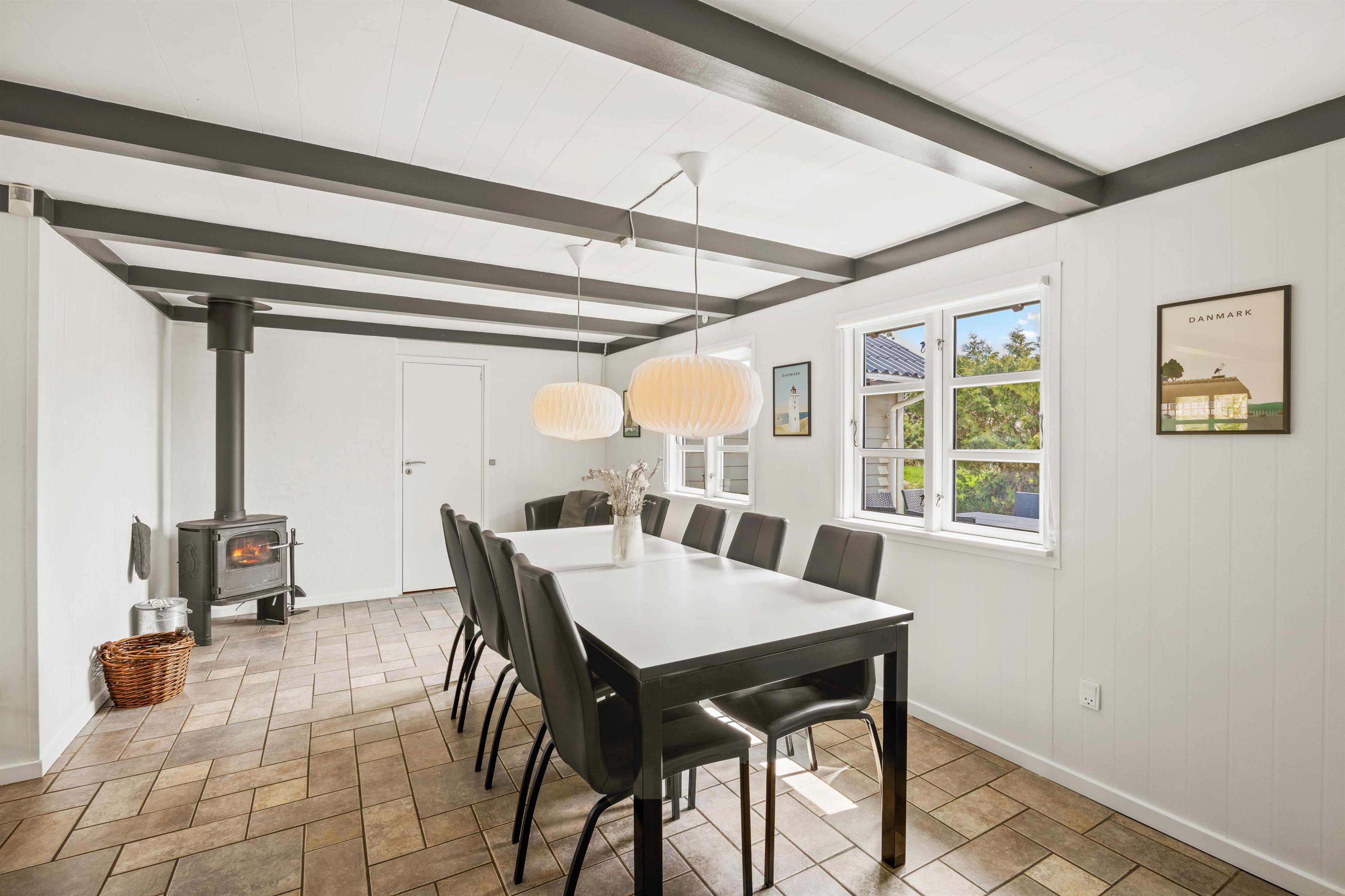 Når I træder ind i sommerhuset på Søren Gades Mark 3, bliver I mødt af en lys og venlig indretning, som I straks vil føle jer godt tilpas i. I alrummet kan I samles om madlavningen i køkkenet, spille spil omkring bordet eller sætte jer til rette i sofaen og se en god film. Brændeovnen sætter prikken over i’et for den hyggelige feriestemning med sin knitren i baggrunden.