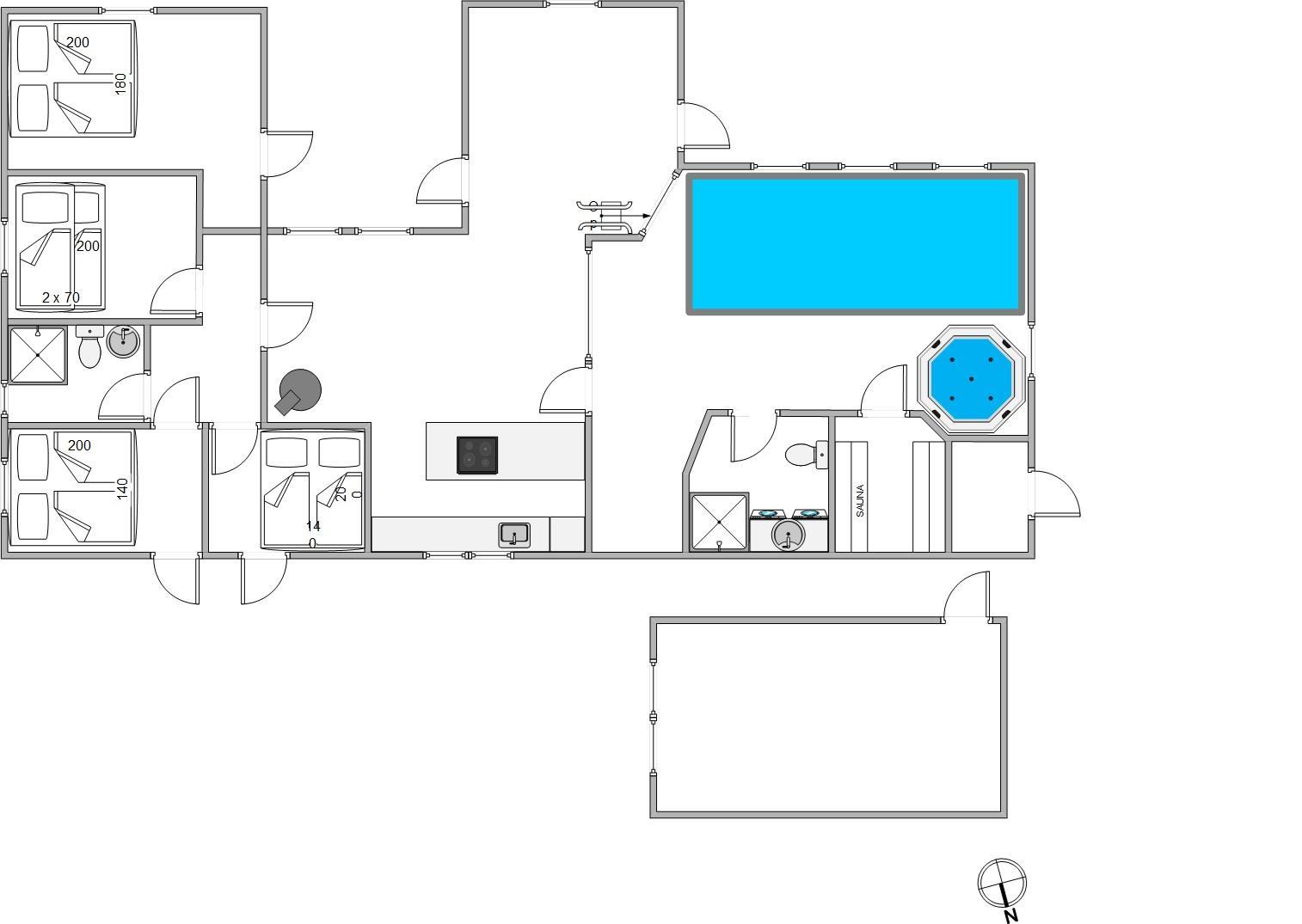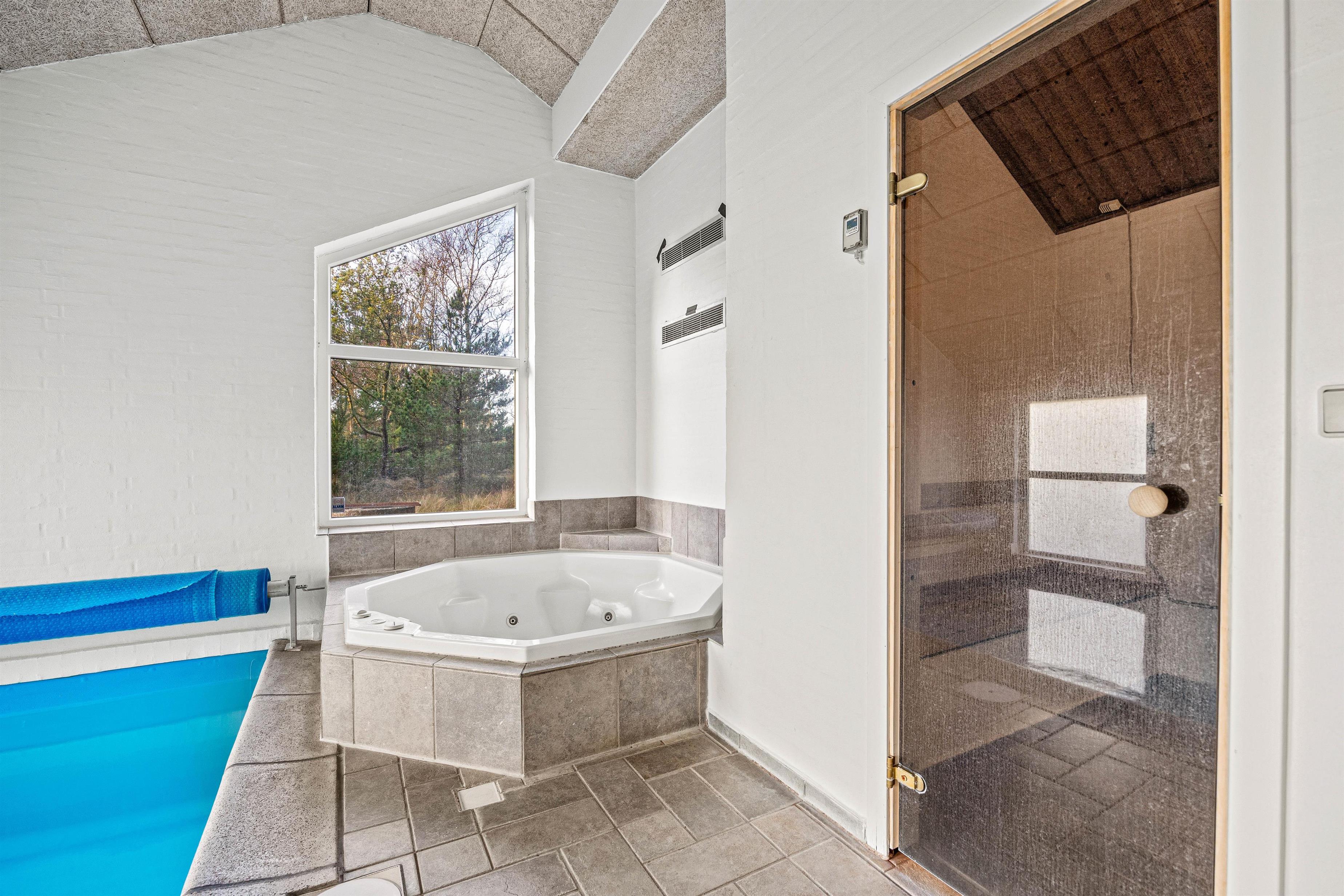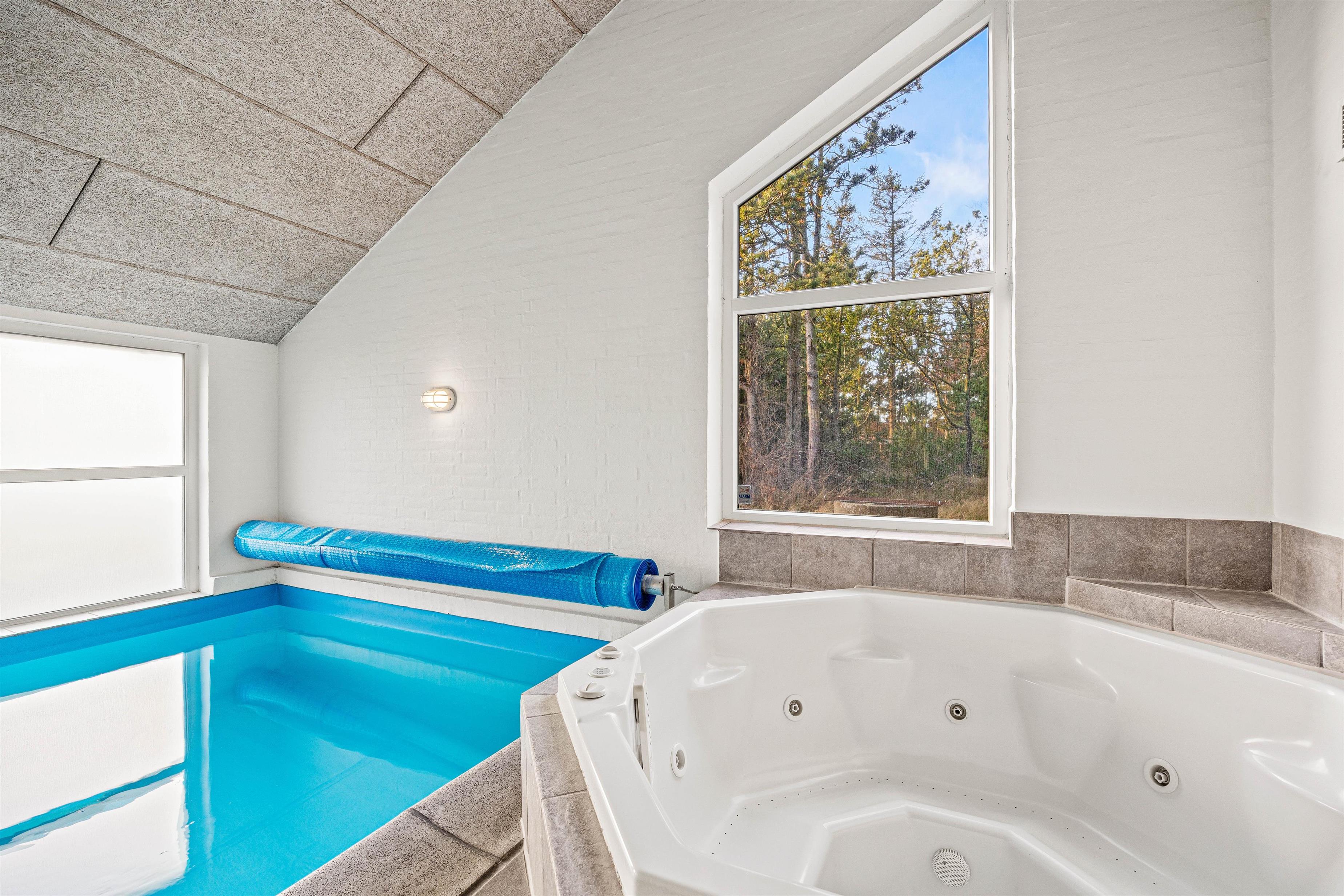 I poolrummet er der også et dejligt spabad med plads til 6 personer, der står klar til at forkæle jer med afslapning i det varme, boblende vand. Fra poolrummet kan I også træde ind i den lækre sauna, der også har dampfunktion, hvor I kan slappe af og komme helt ned i gear. Derudover er der også adgang til et badeværelse fra poolrummet.