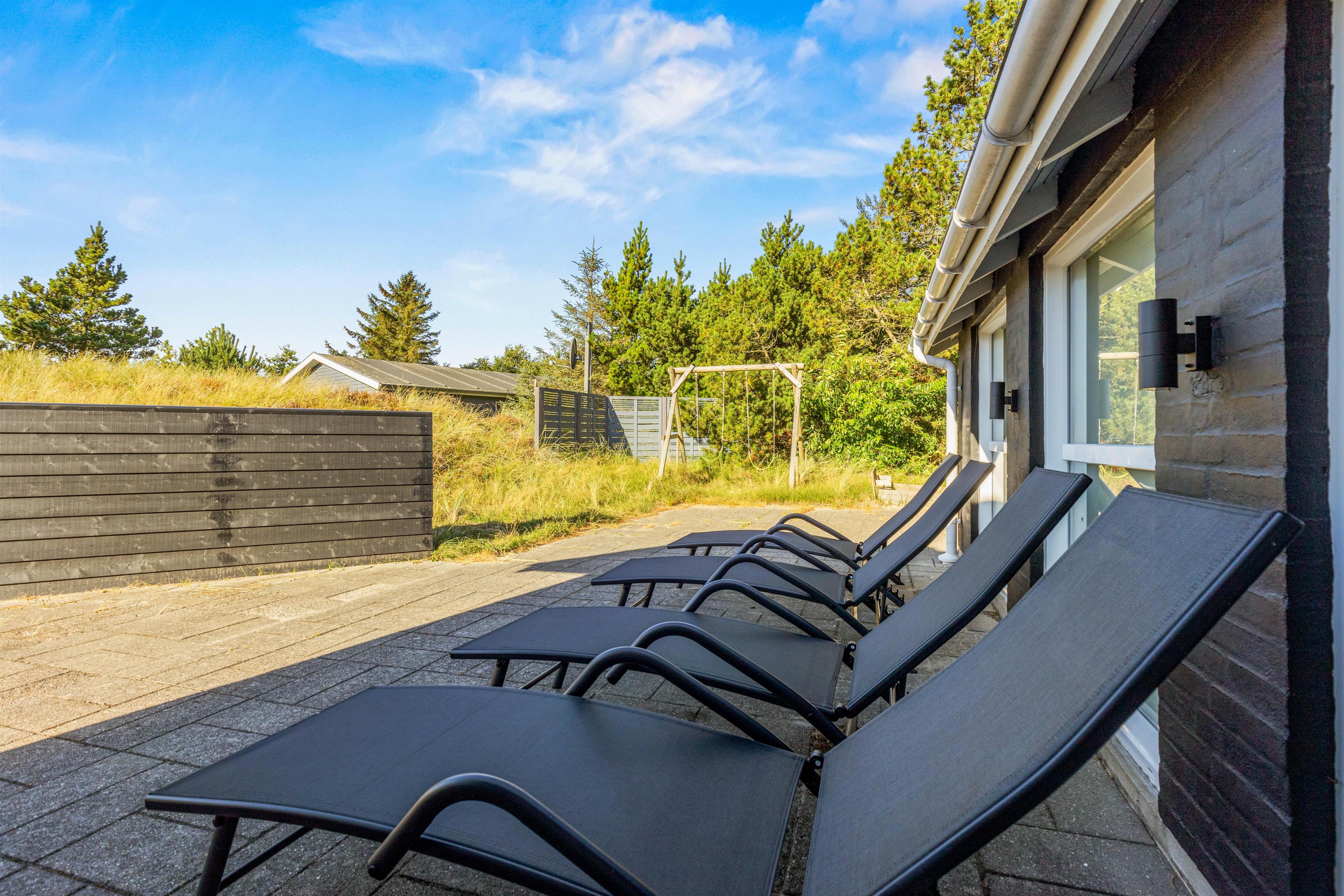 De varme feriedage kan I tilbringe på sommerhusets skønne terrasse, hvor I har både havemøbler, liggestole og en grill til rådighed, så I kan nyde dagene på terrassen fuldt ud.