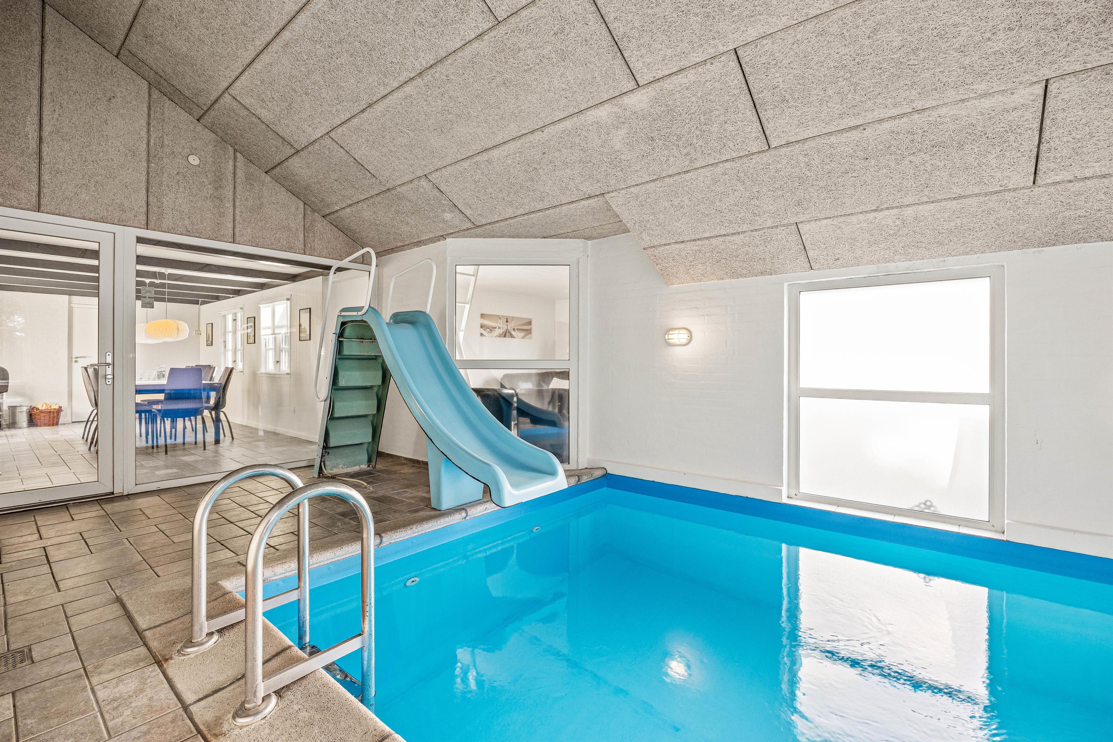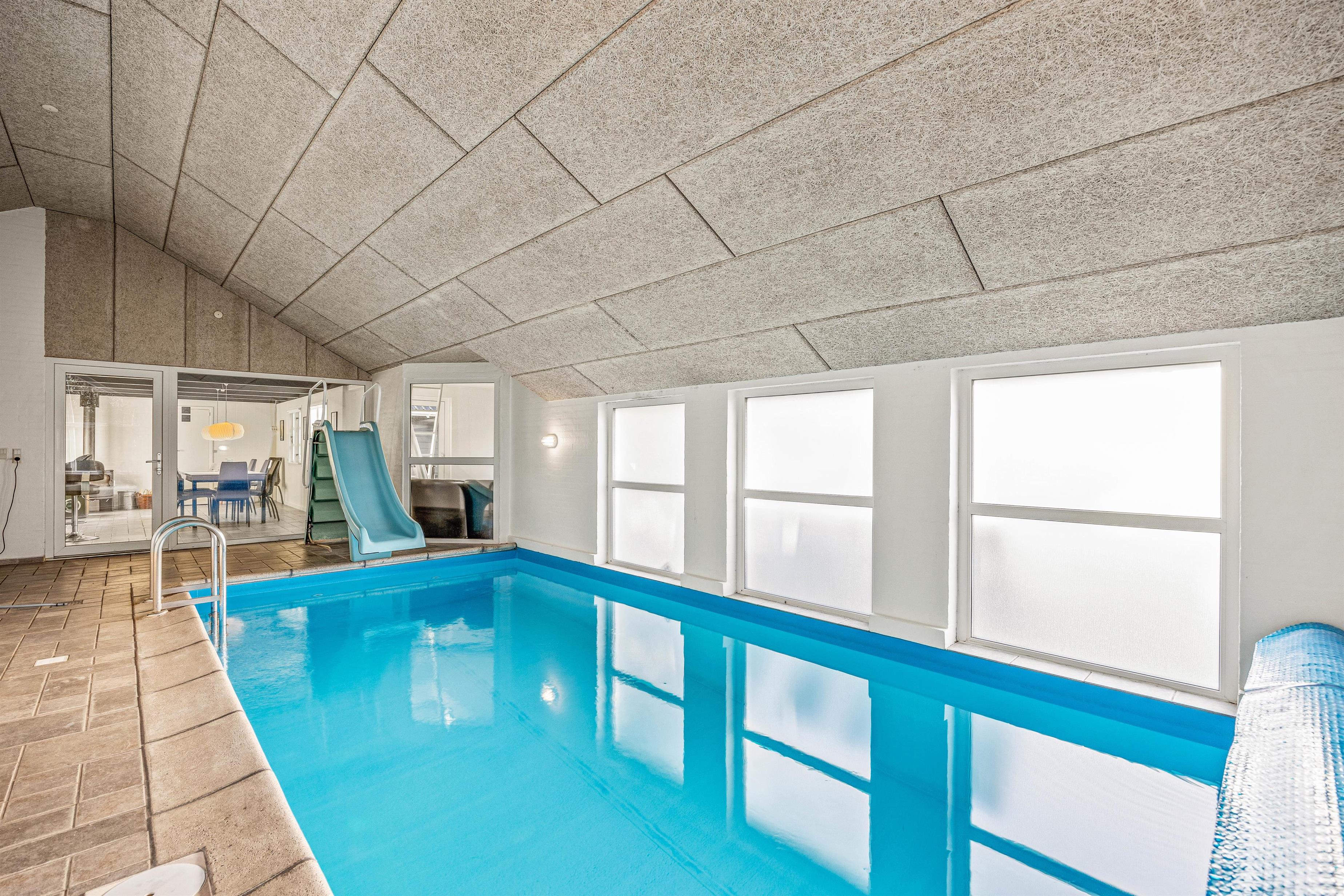 I sommerhuset på Søren Gades Mark 3 i Blåvand er der masser af aktiviteter og underholdning. Et af højdepunkterne i feriehuset er poolrummet, hvor I har en 19 kvadratmeter stor swimmingpool med vandrutsjebane, hvor I kan svømme og bade i timevis. Bemærk, at solcellerne hjælper med opvarmning af pool, så energiomkostninger holdes nede.