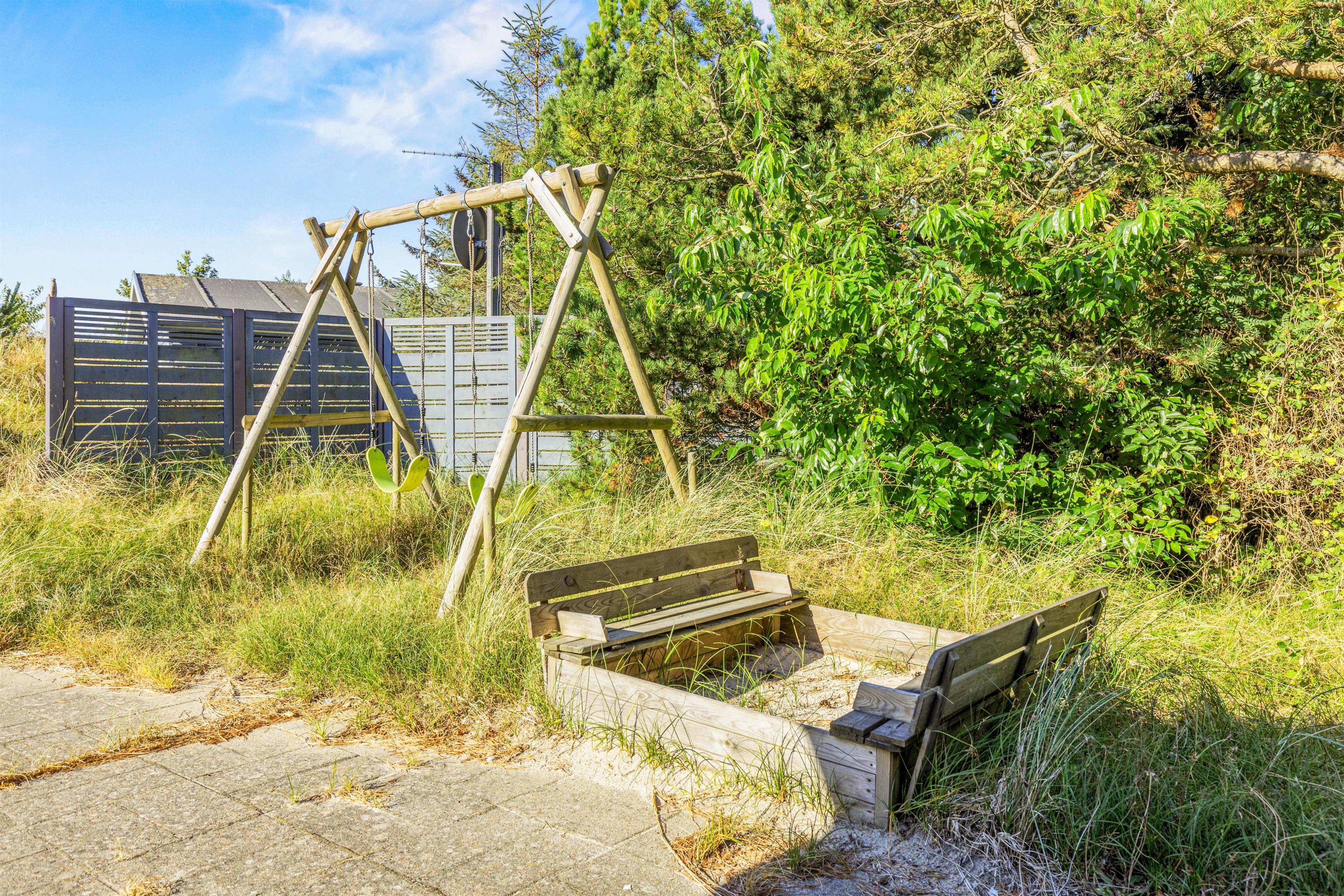 Sommerhuset ligger på en 2.800 kvadratmeter stor grund, der er omgivet af masser af træer og skøn natur - her vil især jeres hunde elske at løbe rundt. I sommerhusets have er der både en sandkasse og et gyngestativ, hvor børnene kan lege dagen lang.