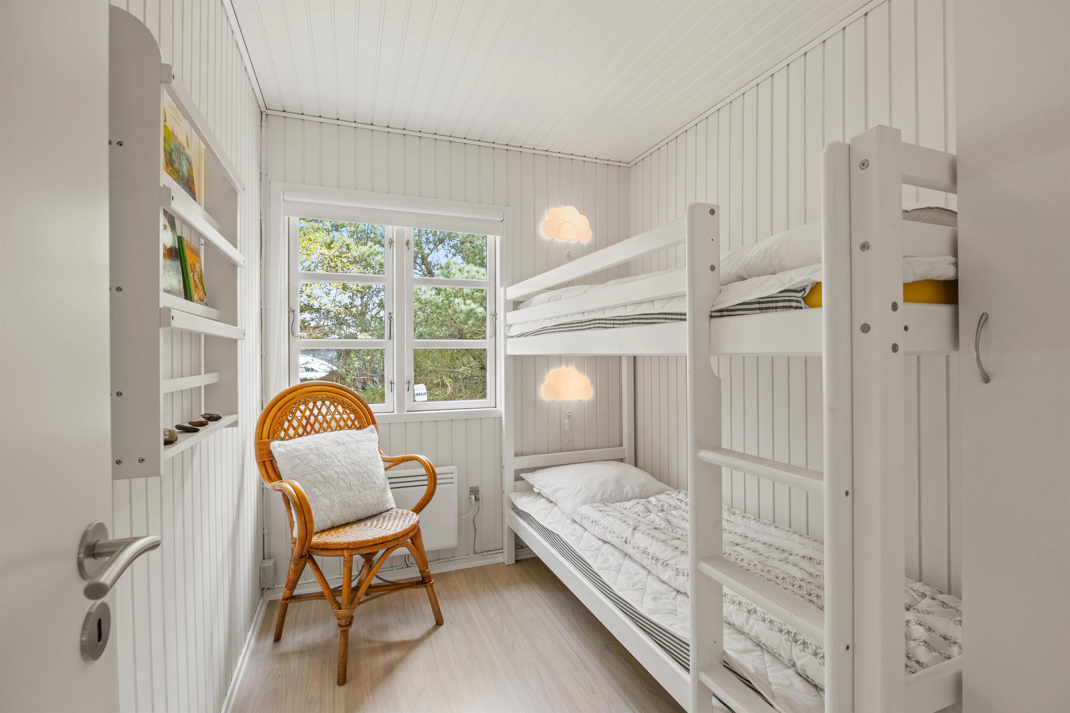 I sommerhuset finder I 4 gode soveværelser – 3 af soveværelserne er indrettet med en dobbeltseng, mens det fjerde er indrettet med en etageseng. Desuden har I hele 2 badeværelser i sommerhuset – begge med gulvvarme – så I slipper for at stå i kø til badet om morgenen.