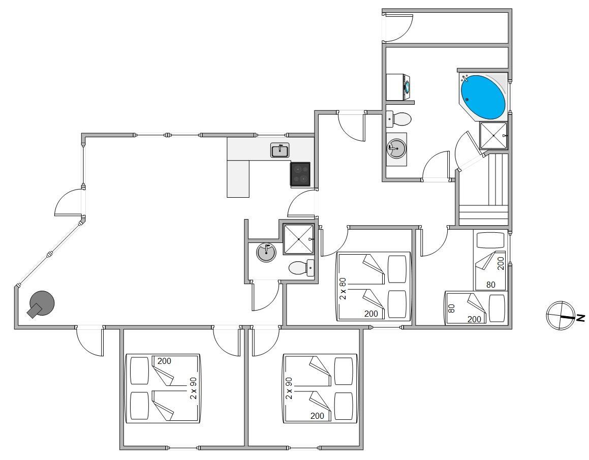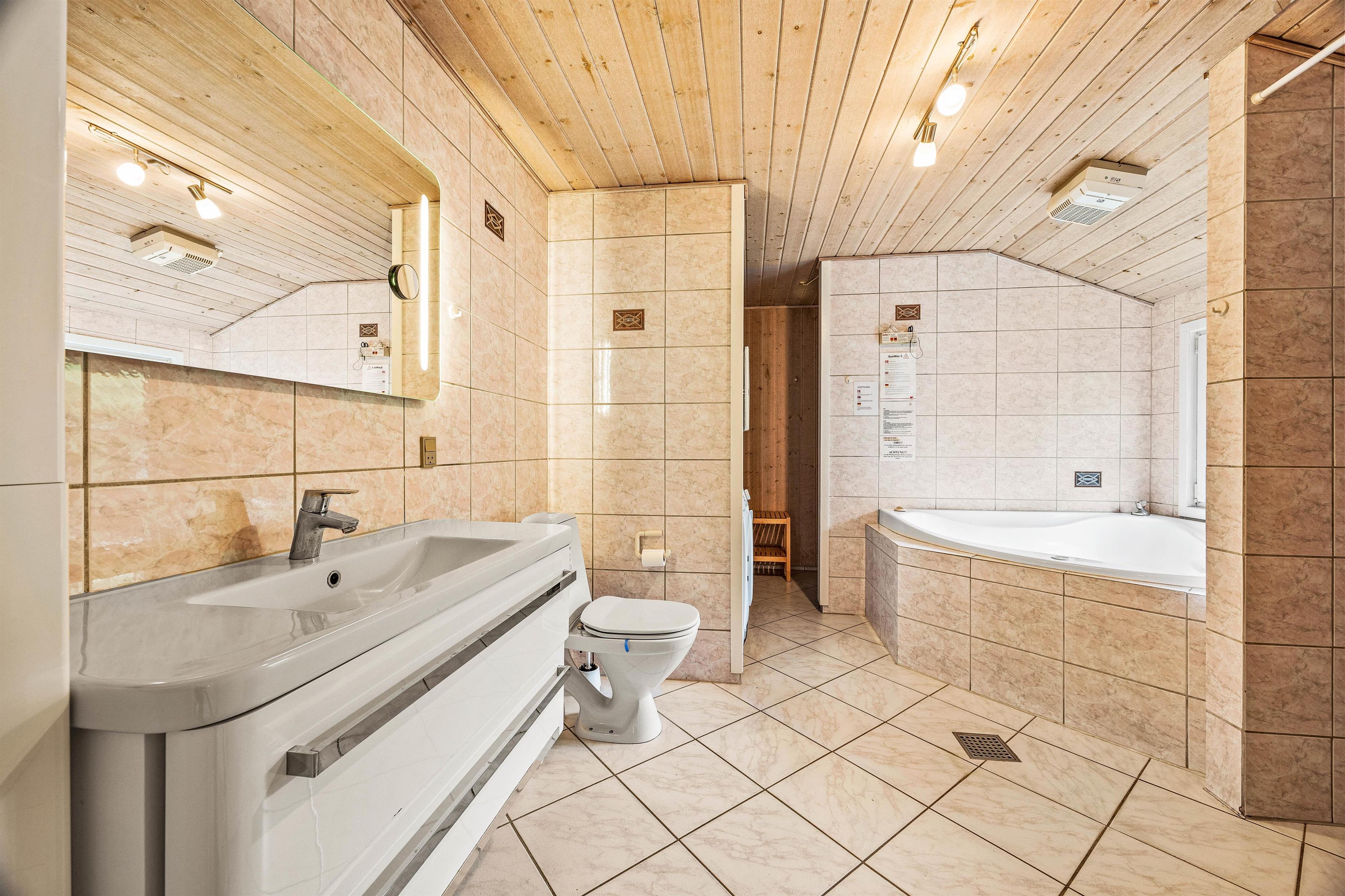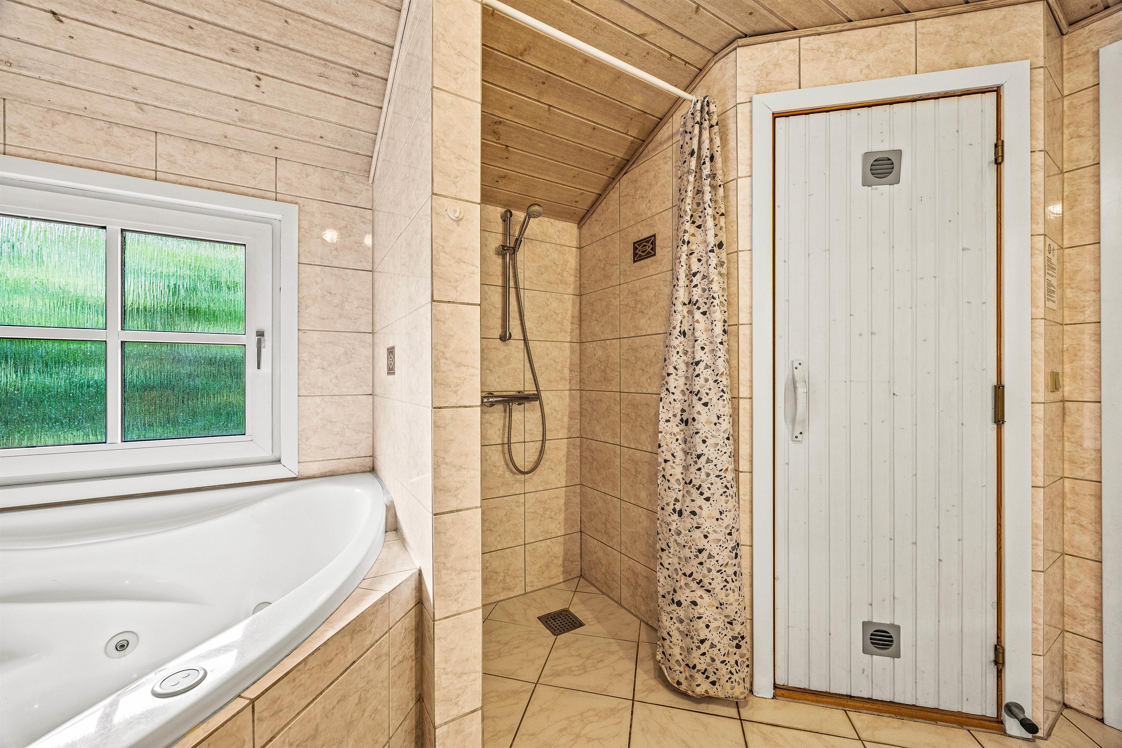Feriehuset har 4 soveværelser; tre med dobbeltseng og et med enkeltsenge. Her kan alle hvile ud til lyden af havet og være klar til næste dags oplevelser. Der er to badeværelser med brus – det ene er nærmest en stor wellness afdeling med lækker 2 personers spa og sauna. Der er desuden både vaskemaskine og tørretumbler til jeres rådighed.