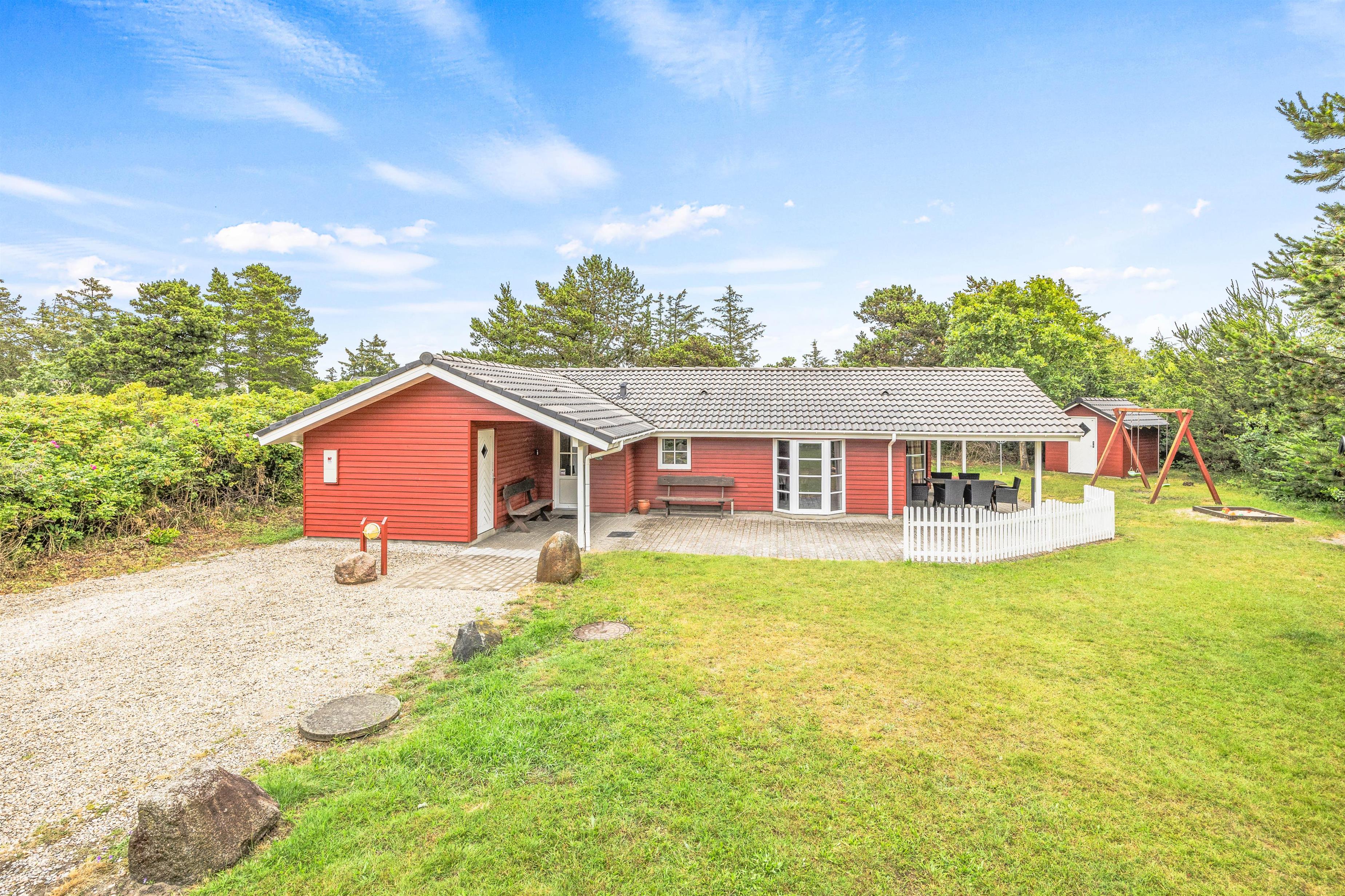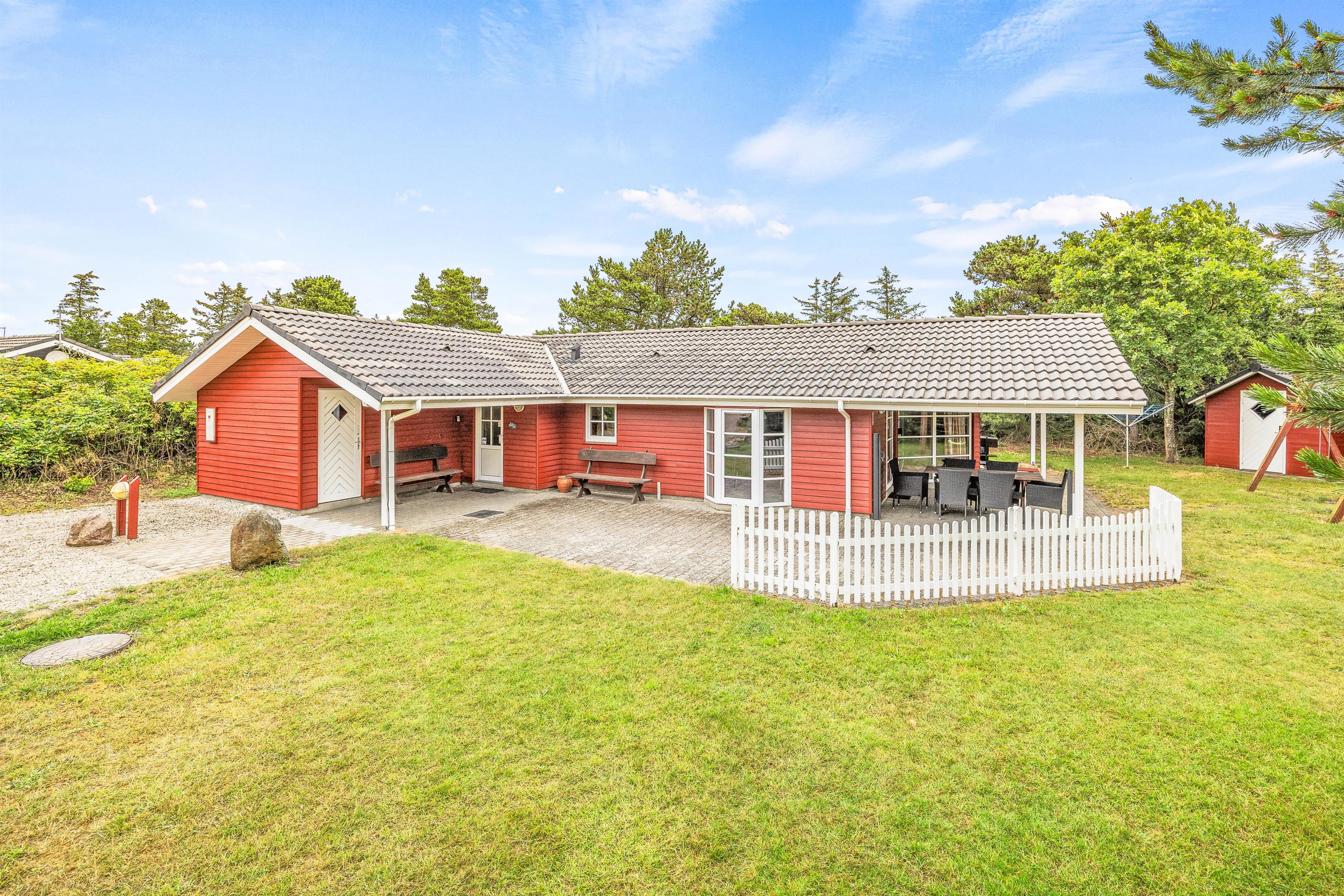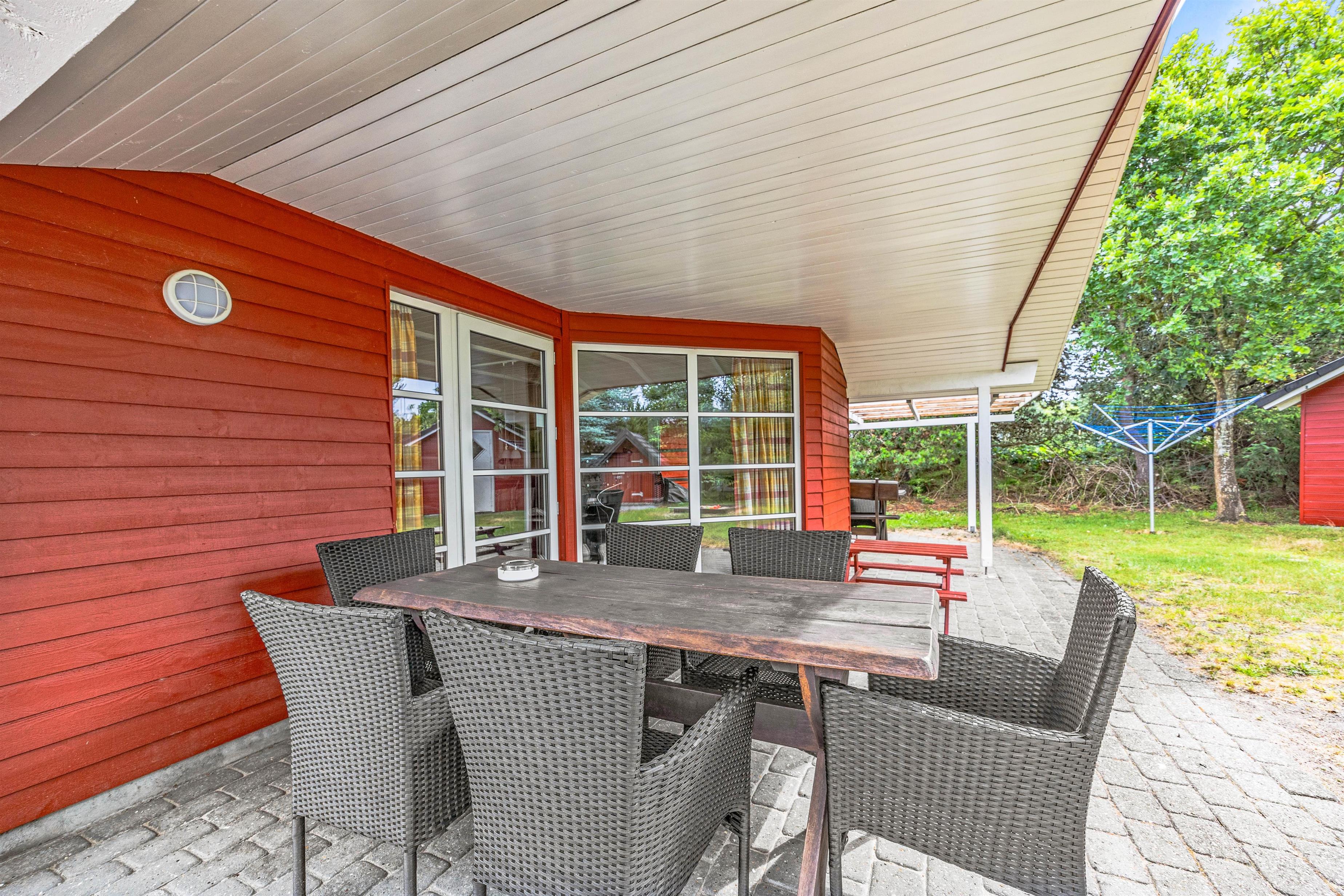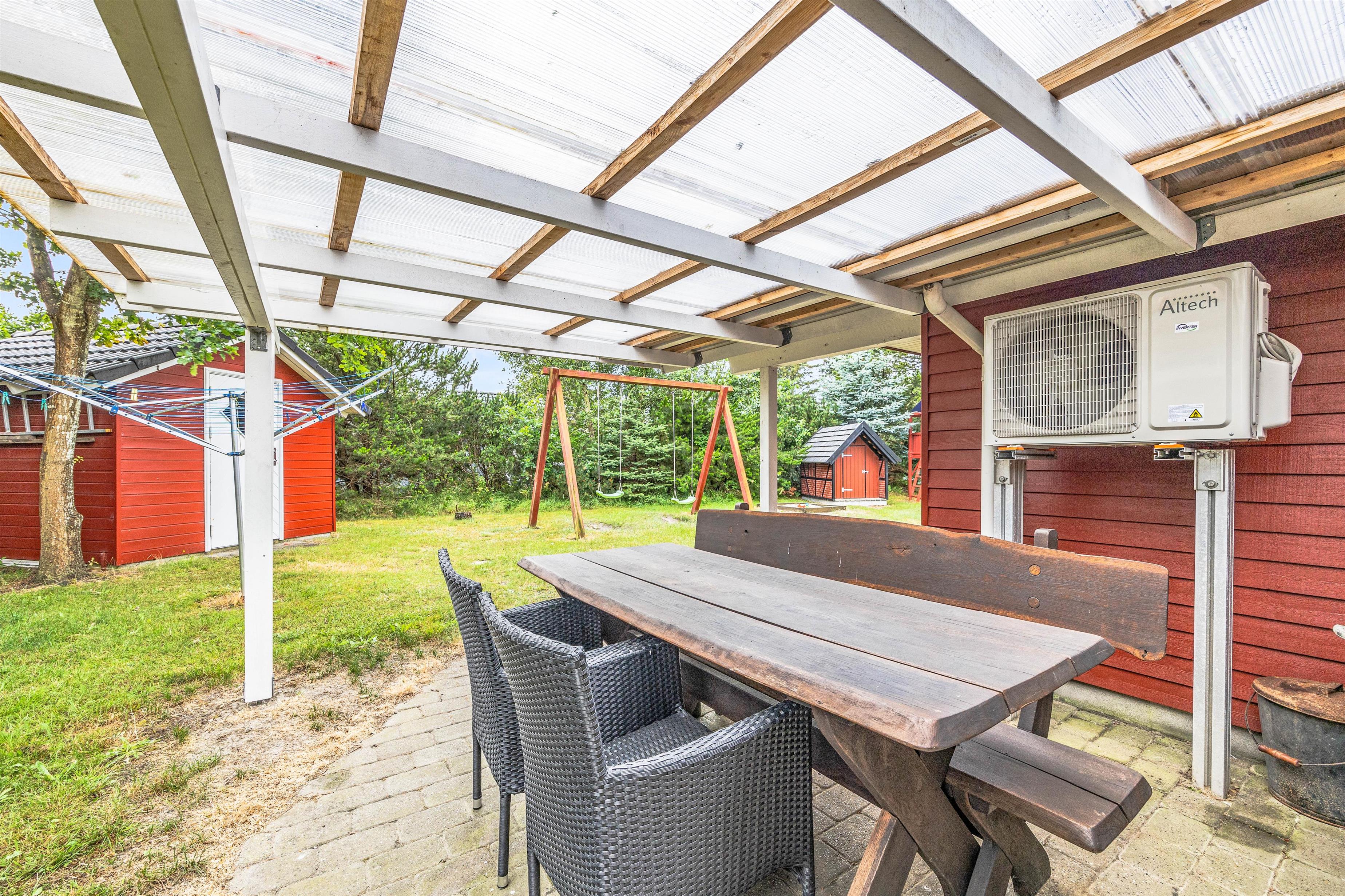 På flere af husets sider er der terrasser i hyggelige kroge, så I altid kan finde læ for blæst og regn eller skygge på den varme sommerdag. Skulle feriens kok ønske en fridag fra køkkenet, kan der laves lækker feriemad på husets grill ved den ene overdækkede terrasse.