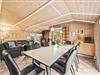 Den store sorte læderhjørnesofa ved brændeovnen lokker til fælles hygge efter dagens aktiviteter eller en hyggelig regnvejrseftermiddag med kakao og boller. Husk også at benytte feriehusets energivenlige varmepumpe, så I altid har et behageligt indeklima.