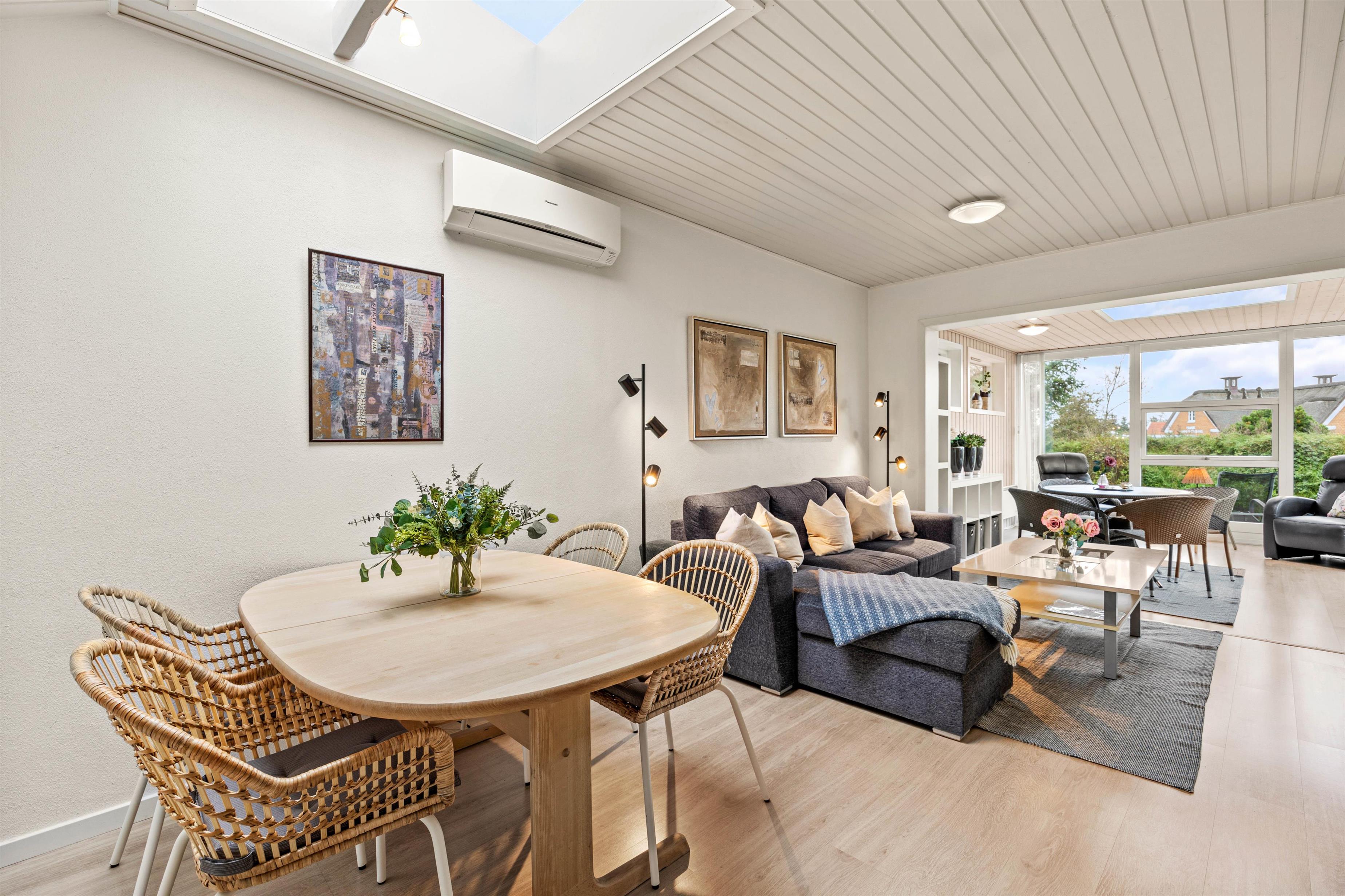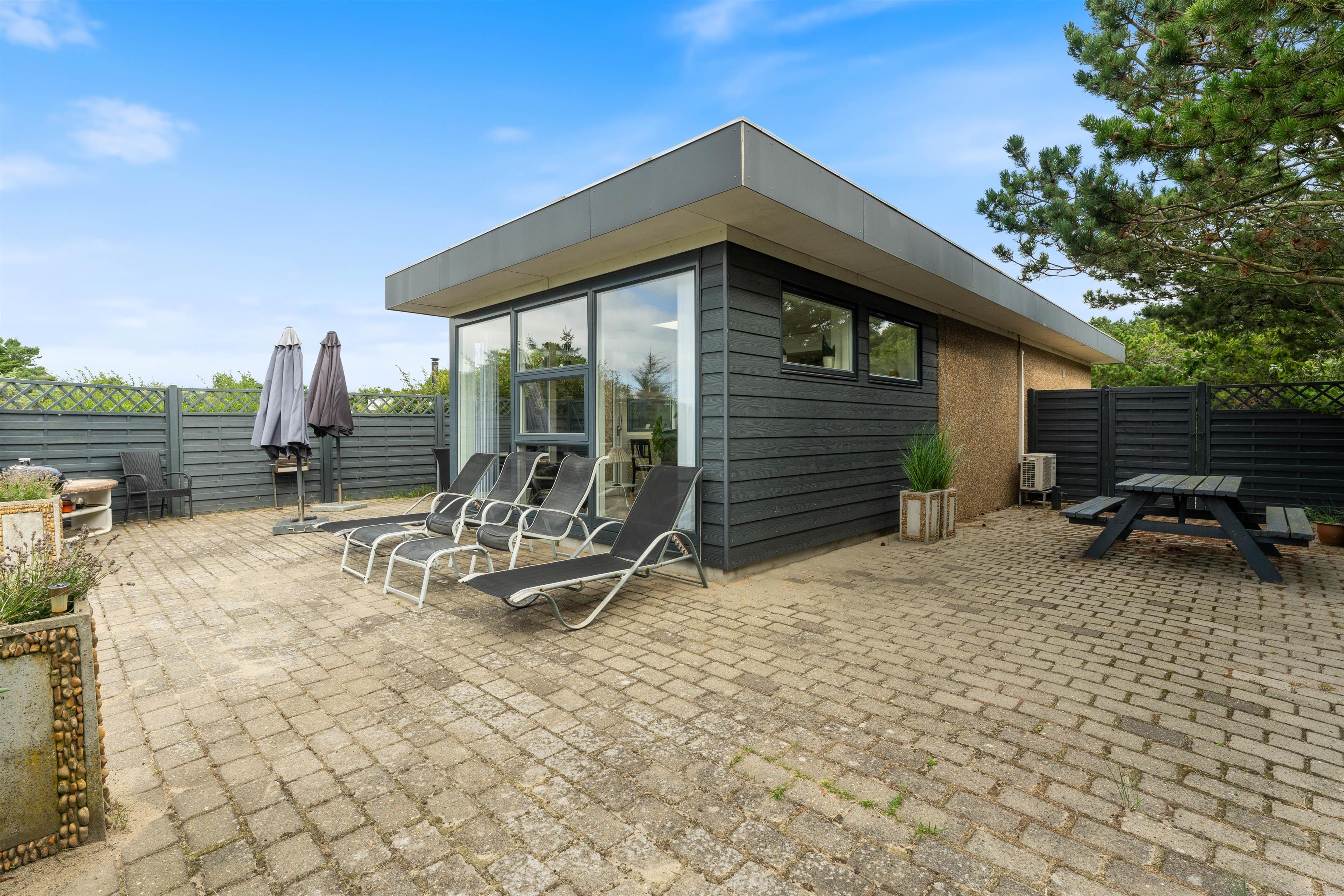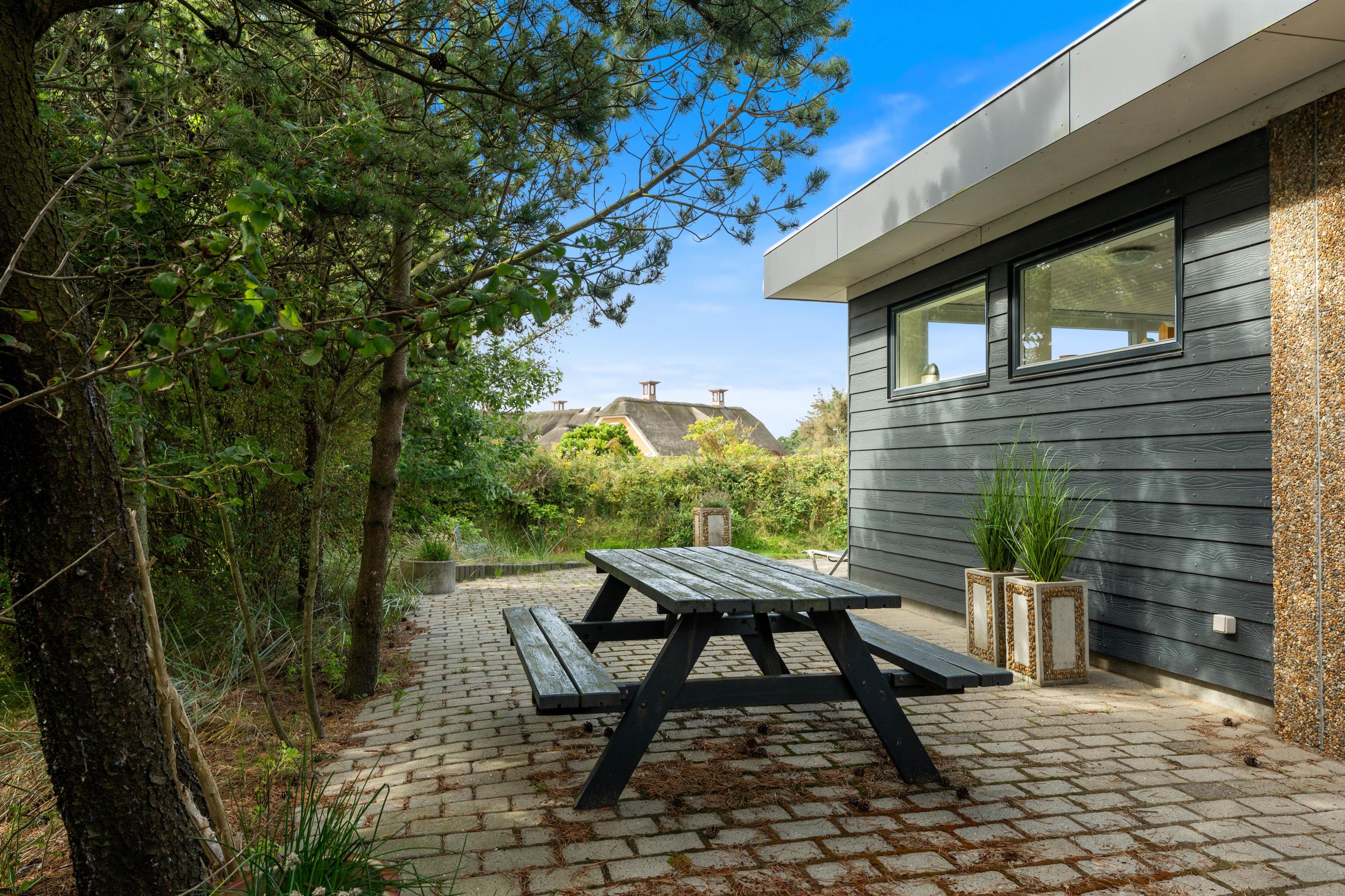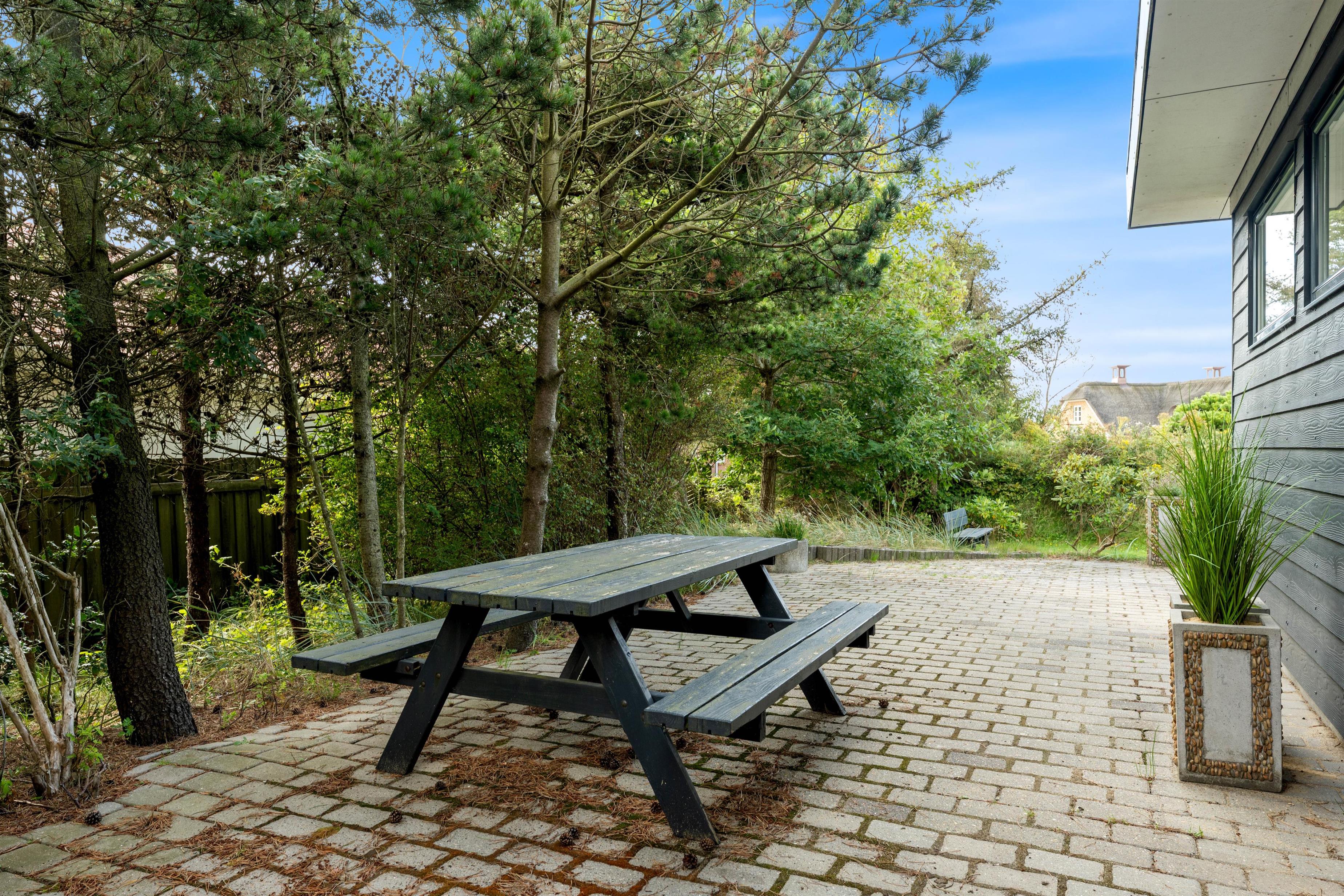 Den dejlige terrasse indbyder straks til dovnedage i det varme solskinsvejr, og havemøblerne sørger for, at I kan slappe godt af og nyde feriefreden med en god bog.